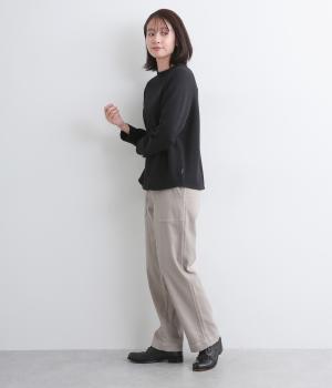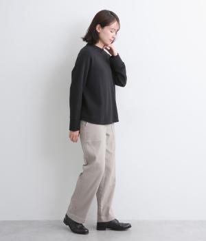 合わせる服を選ばないシンプルなつくりのトップス。ほどよい丈感で、裾からインナーを見せてレイヤードスタイルを楽しむこともできます。アクセサリーとコーディネートするのも◎。カジュアルにも、ややフォーマルにも着まわせる便利な一枚です。