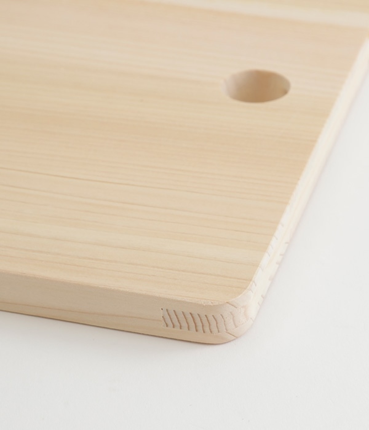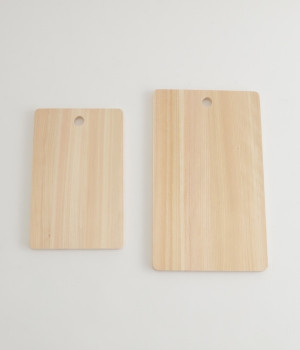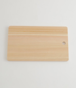 木の香りや滑らかな手触りなど、ナチュラルな佇まいが魅力のヒノキ製まな板です。家庭で使用するのに丁度いいサイズで、長ネギや肉の塊など大きな食材を切る際にも便利です。薄手で軽く持ち歩きしやすいことからキャンプなどアウトドアシーンでも活躍します。木のまな板は包丁を使用したときのアタリが柔らかく、刃への負担も少ないと言われています。また食材の余分な水分を気が吸収するため、まな板上で食材が滑りにくくなるという利点もあります。