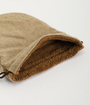 毛織物を織り上げ、生地を仕上げる際に縮絨して表面を毛羽で完全に覆って織り組織がわからないようフェルト風に仕上げたメルトン生地を使用した湯たんぽカバーです。水を弾く撥水性と反発性を持ち、丈夫で保湿性に富んでいます。裏側に使用したフリース素材は、繊維と繊維の間に空気の層ができるため湯たんぽからの熱を逃しません。肌触りは柔らかく、重厚感があるのも魅力的です。