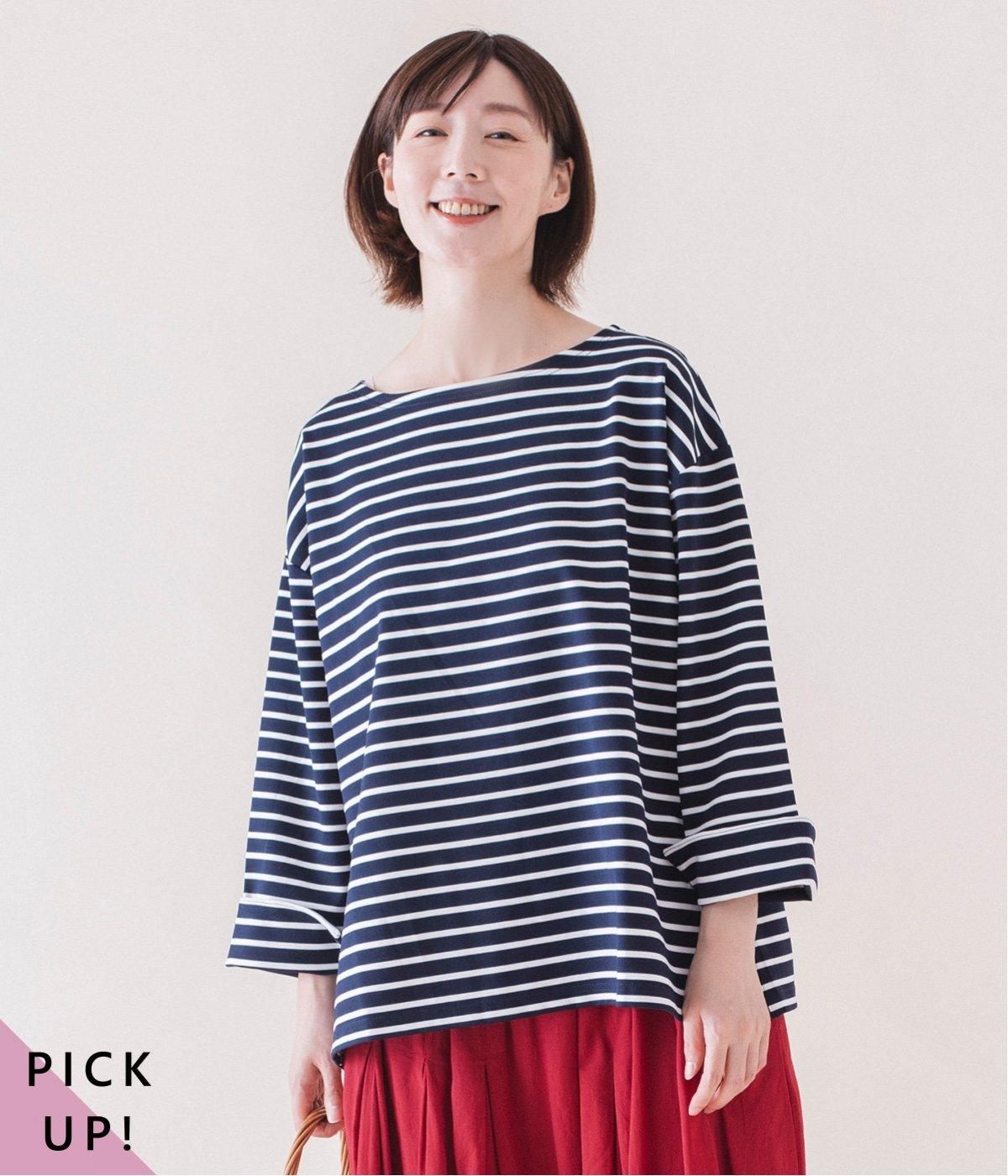 どのカラーもお手持ちの洋服ともおしゃれが楽しめる、着回し力の高いボーダーカットソー。