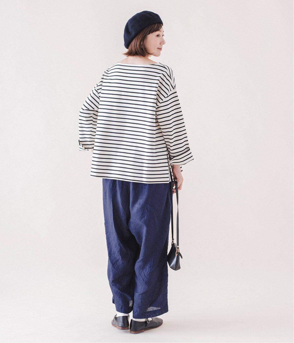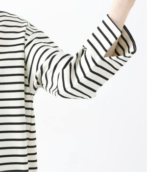 パキッとした柄の印象ではなく、同系色のホワイトのラインで、普段ボーダーを着ない方でも気軽に取り入れていただけます。