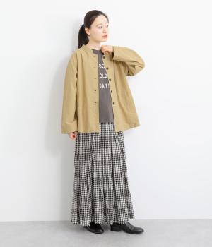 控えめに立ち上げたマオカラーがファッションムードを高めるジャケット。身幅は適度にゆとりを持たせ、重ね着が多くなる寒い時期にも羽織りやすくしています。フロントボタンはあえて裾を省き、視線をアップさせてすっきり見えを実現。さまざまなボトムスにバランスよくなじみます。