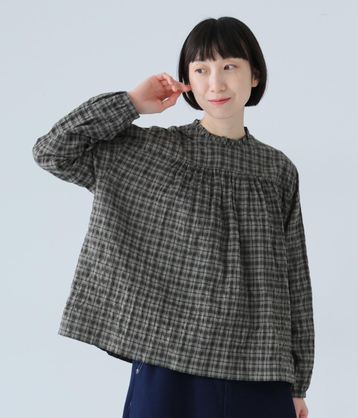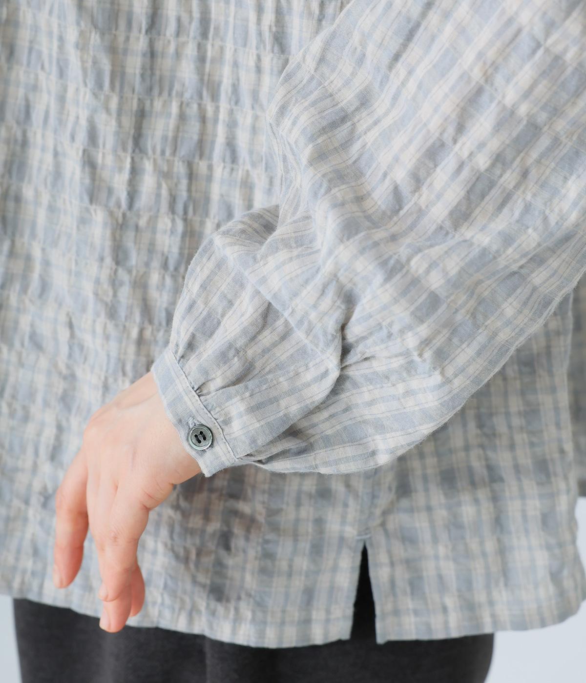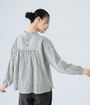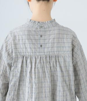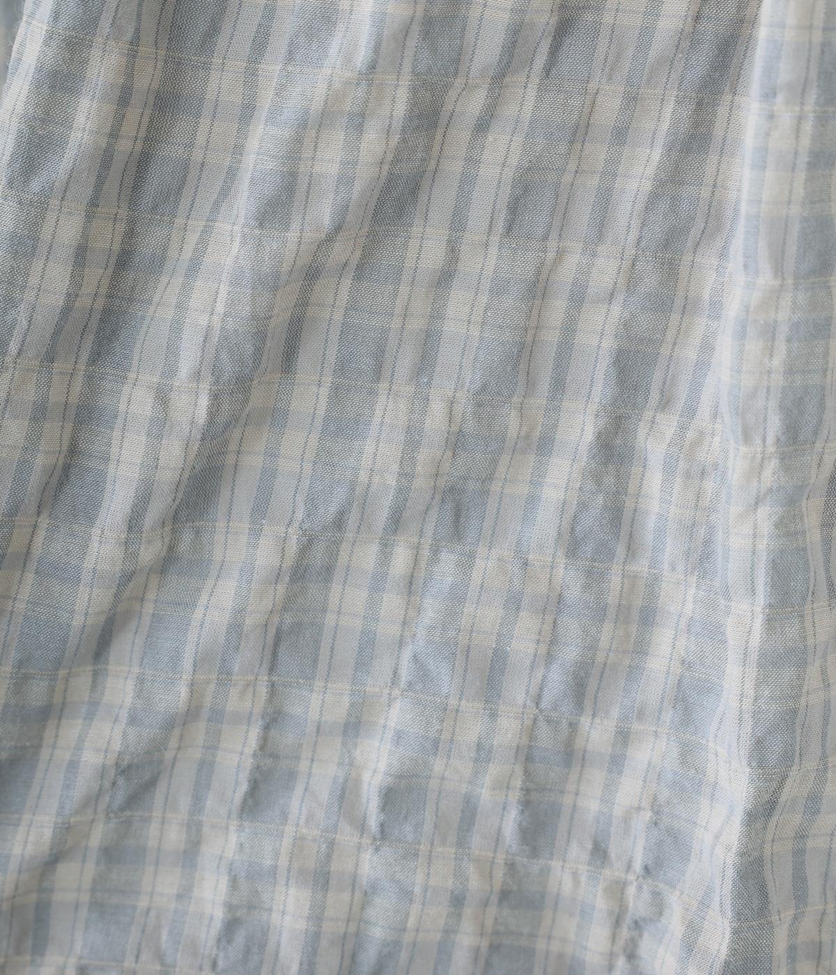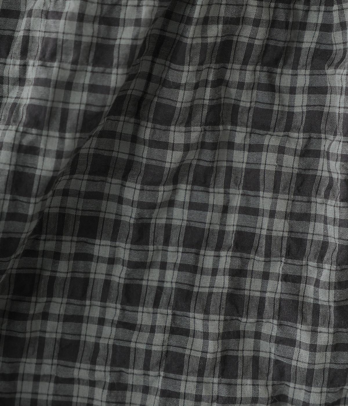 クシュっとした薄手のシャーリング生地にチェック柄をあしらいました。コットンならではの軽やかさと通気性の高さを存分に味わえる生地感です。