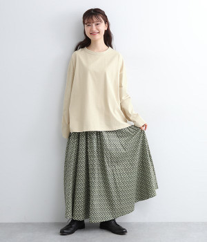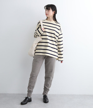 ドロップショルダーのワイドな身幅がポイントのプルオーバー。長めの袖丈がリラックスした雰囲気です。着丈にはさりげない前後差があり、後ろはやや長めでヒップラインをさりげなくカバー。ブランドのアイコンであるスワンモチーフが背中の襟元にあしらわれています。