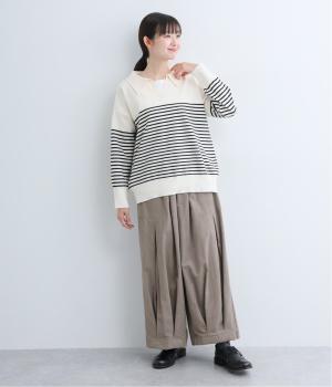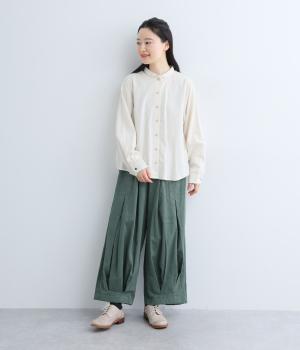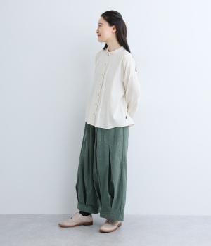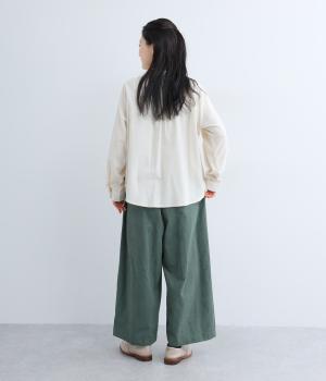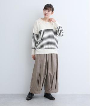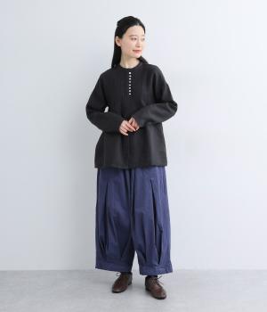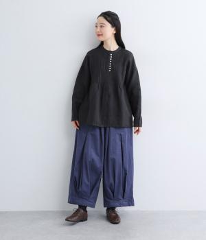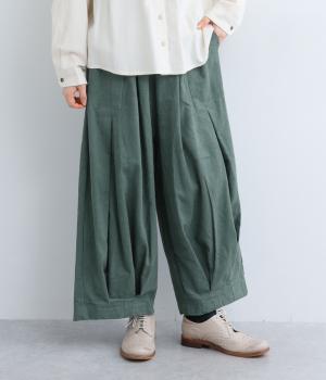 上下にたっぷりとタックを入れたボリューミーなベイカーパンツ。装いに個性とお洒落なムードを与えつつ、気になる体のラインをしっかりとカバーしてくれます。ウエストはイージーなはき心地を叶える総ゴム仕様。フィット感を高める内紐つきです。