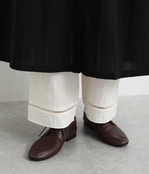 裾には同色に染めたはしごレースを使用しており、ワンピースなどの裾からのぞかせると素敵です。透け防止や、汗の吸収、冷え取りにも◎。裾からちらっと見えるだけでスタイリングのアクセントになります。