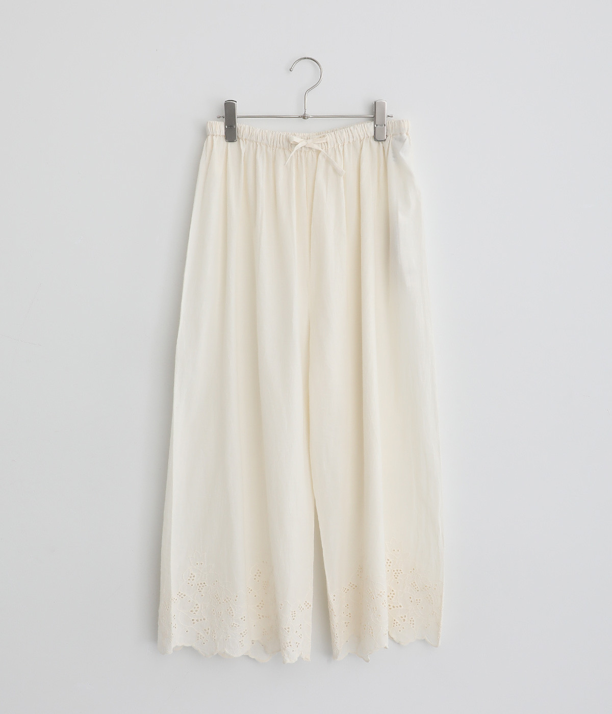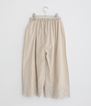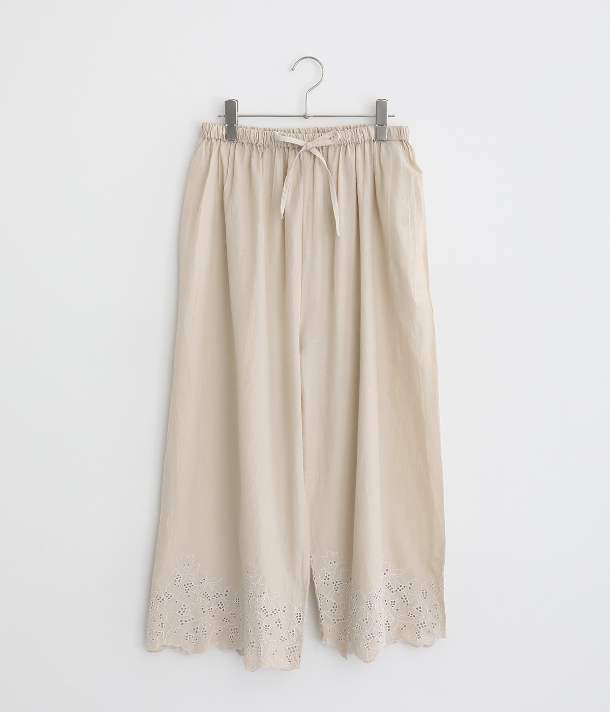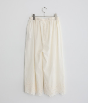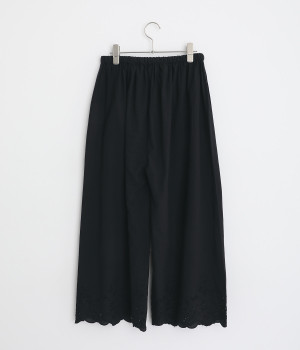 裾に刺しゅうをあしらった、ほんのり華やかなペチパンツ。裾から刺しゅうをのぞかせたレイヤードのアレンジも楽しめます。ウエストはヒモつきの総ゴムタイプで、リラックスして着用できます。