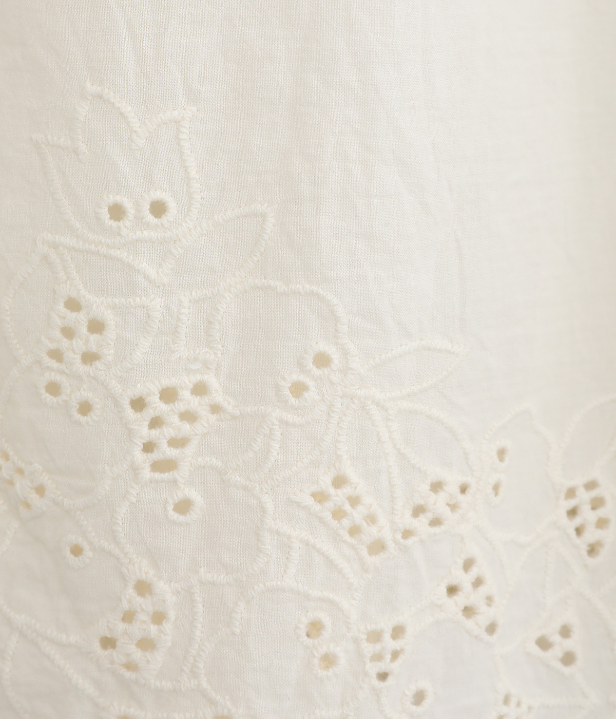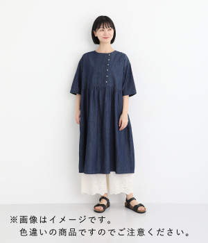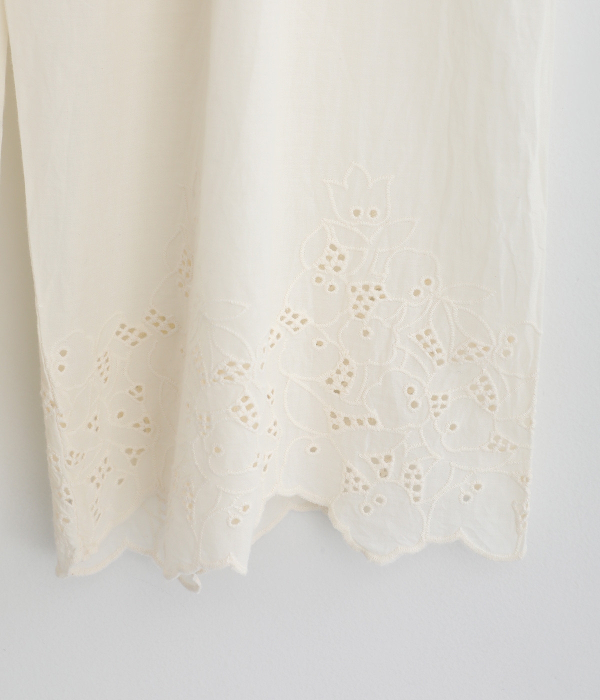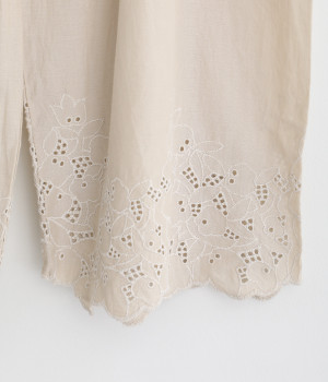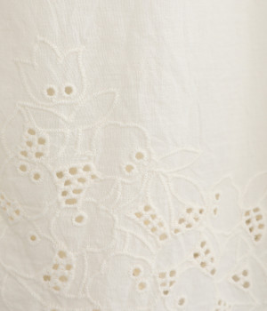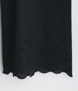 さらりとした肌触りが気持ちいいコットン素材です。裾にはコットン糸で仕上げたカットワーク刺しゅうをあしらいポイントに。肌にまとわりつかず、ロングシーズン快適です。