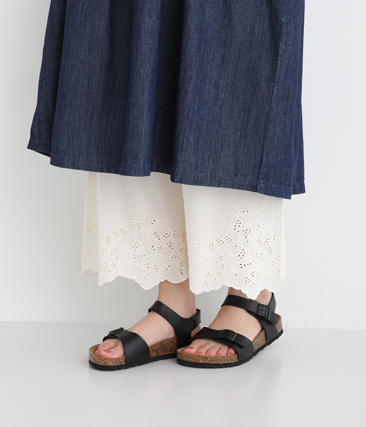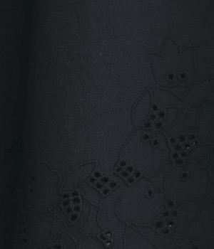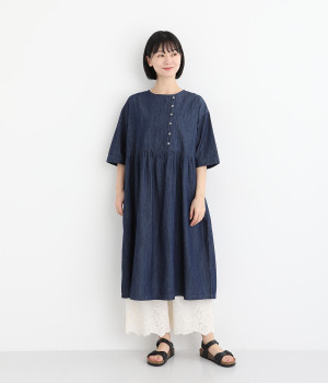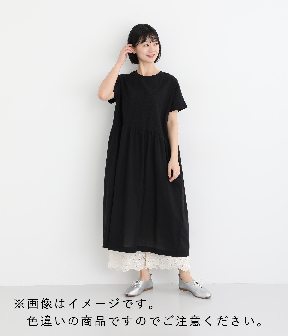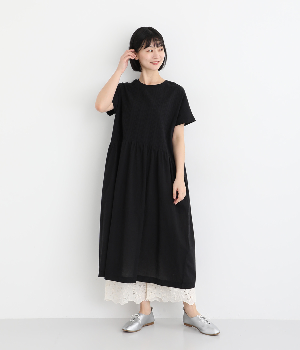 さらりとした肌触りが気持ちいいコットン素材です。裾にはコットン糸で仕上げたカットワーク刺しゅうをあしらいポイントに。肌にまとわりつかず、ロングシーズン快適です。