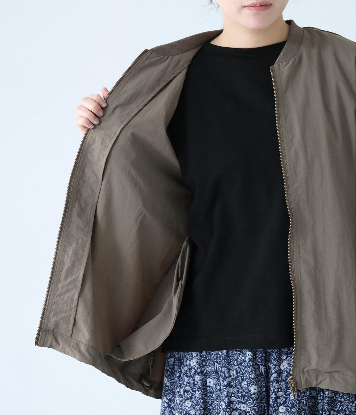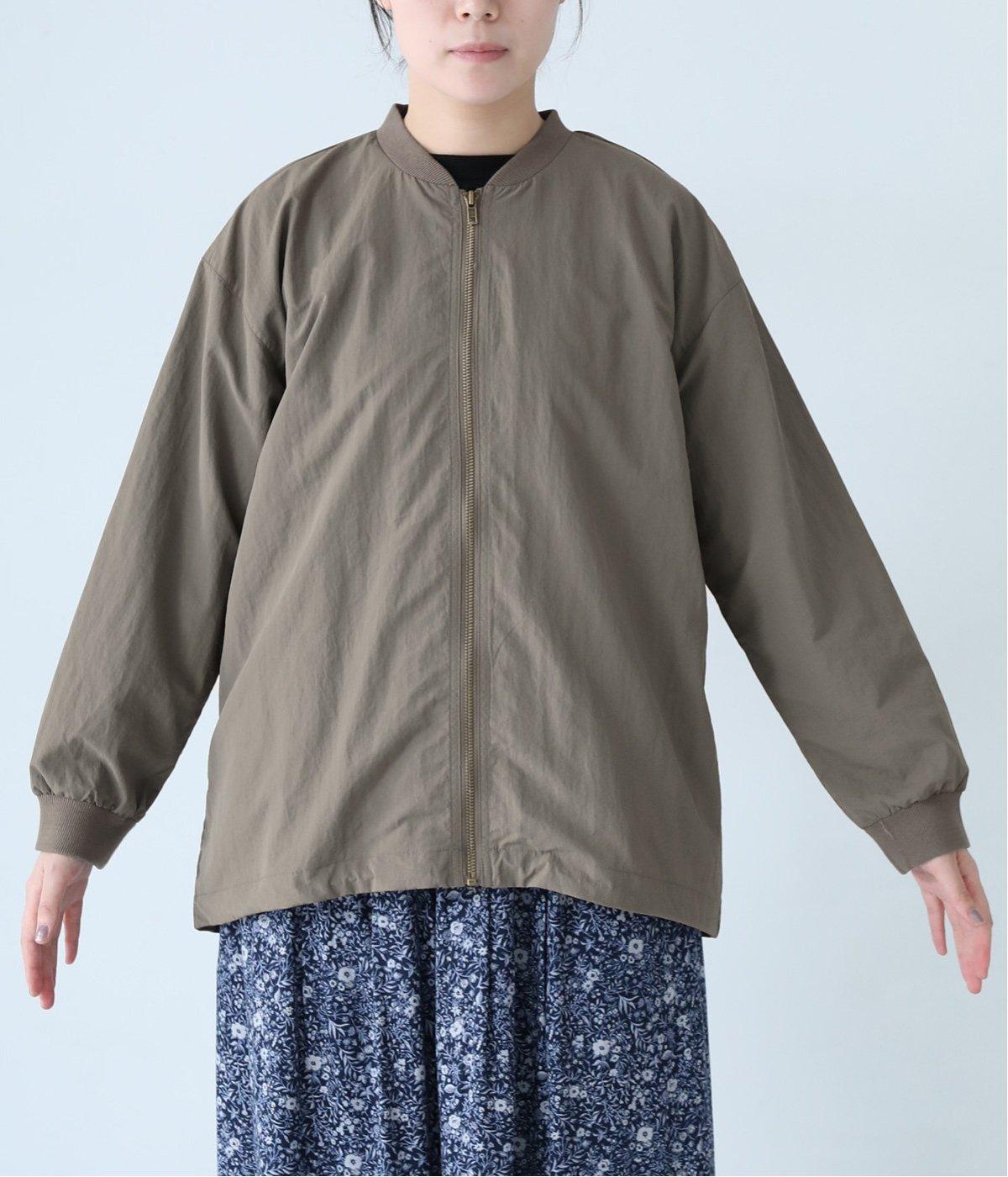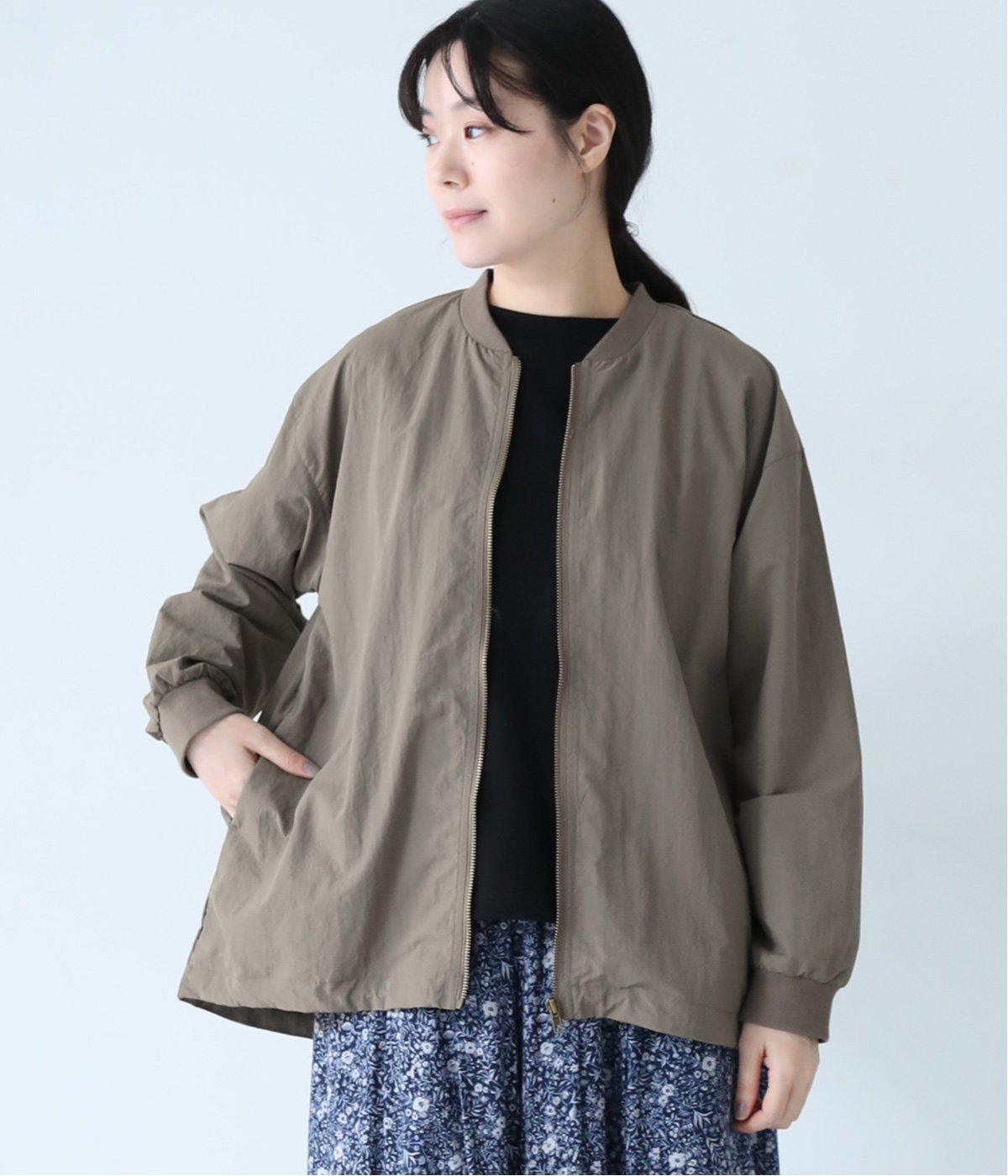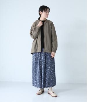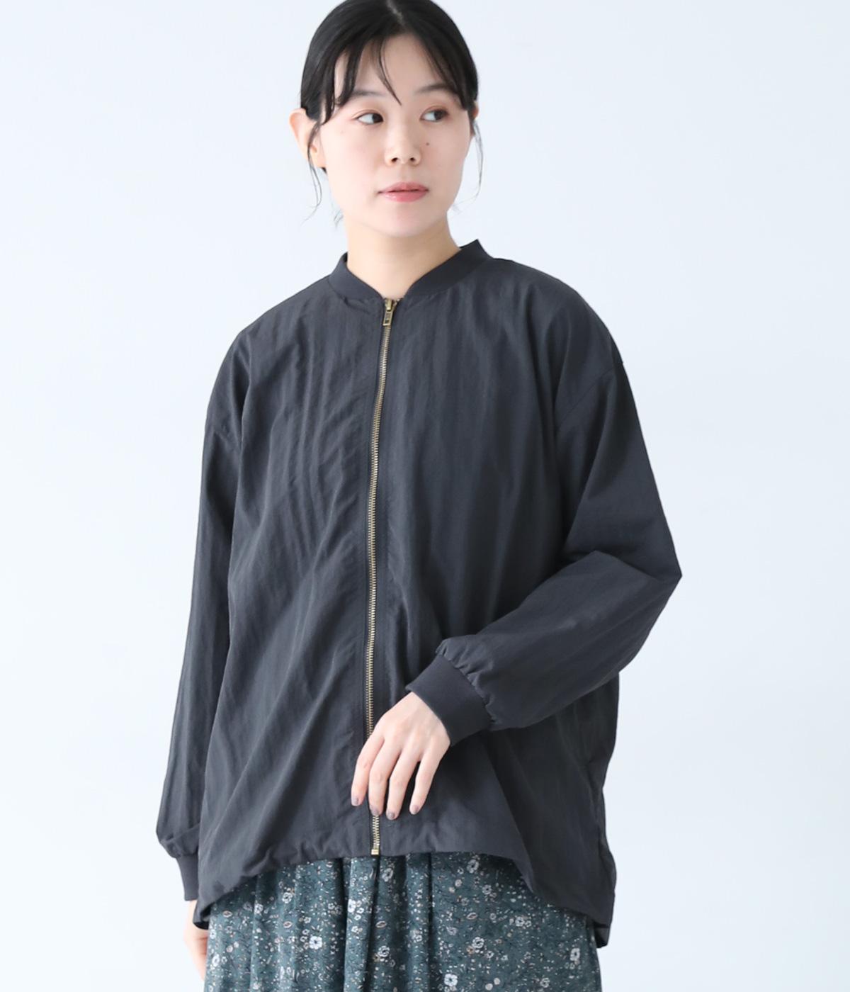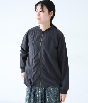 カジュアルさと品のよさを持ちあわせたジップアップブルゾン。後ろネックにギャザーを入れ、ふんわりとさせたバックスタイルが女性らしさを運びます。フロントはゴールドのアンティーク調ファスナーを用いて味わい深さをプラス。裾のドローコードを絞ればシルエットのアレンジが可能です。
