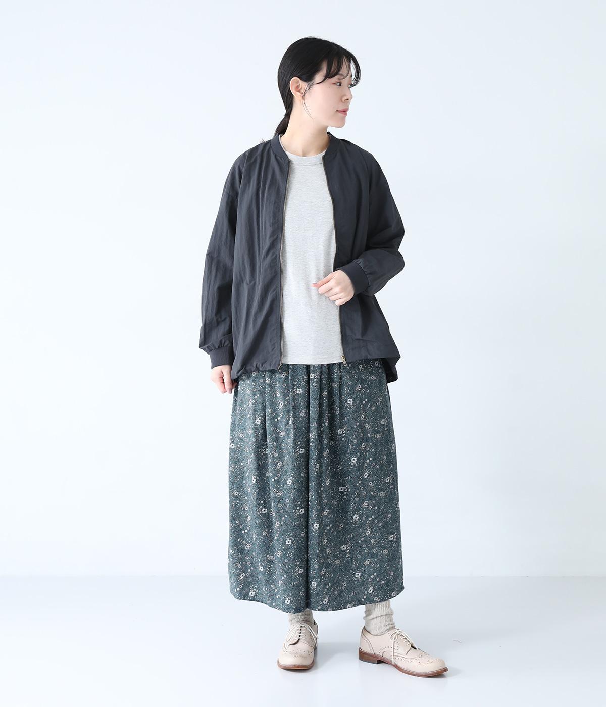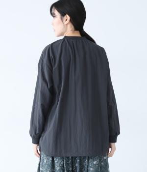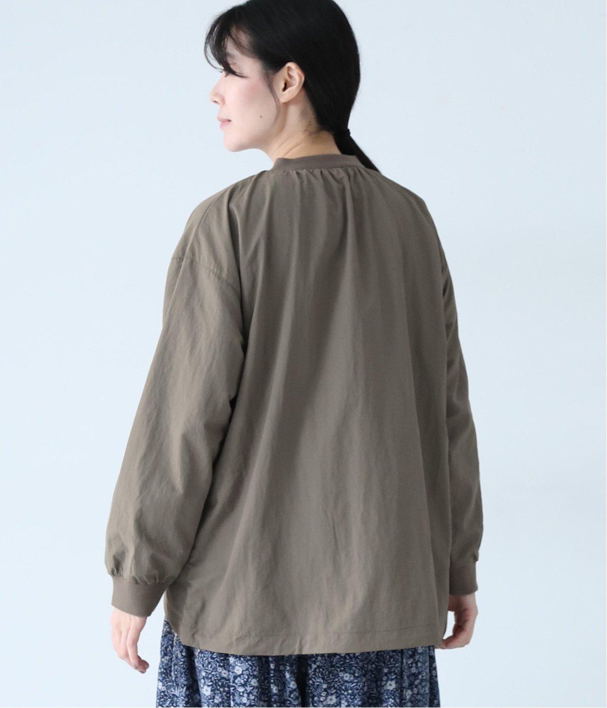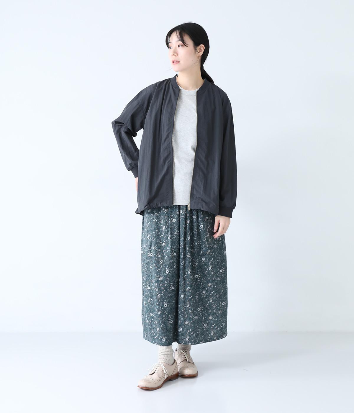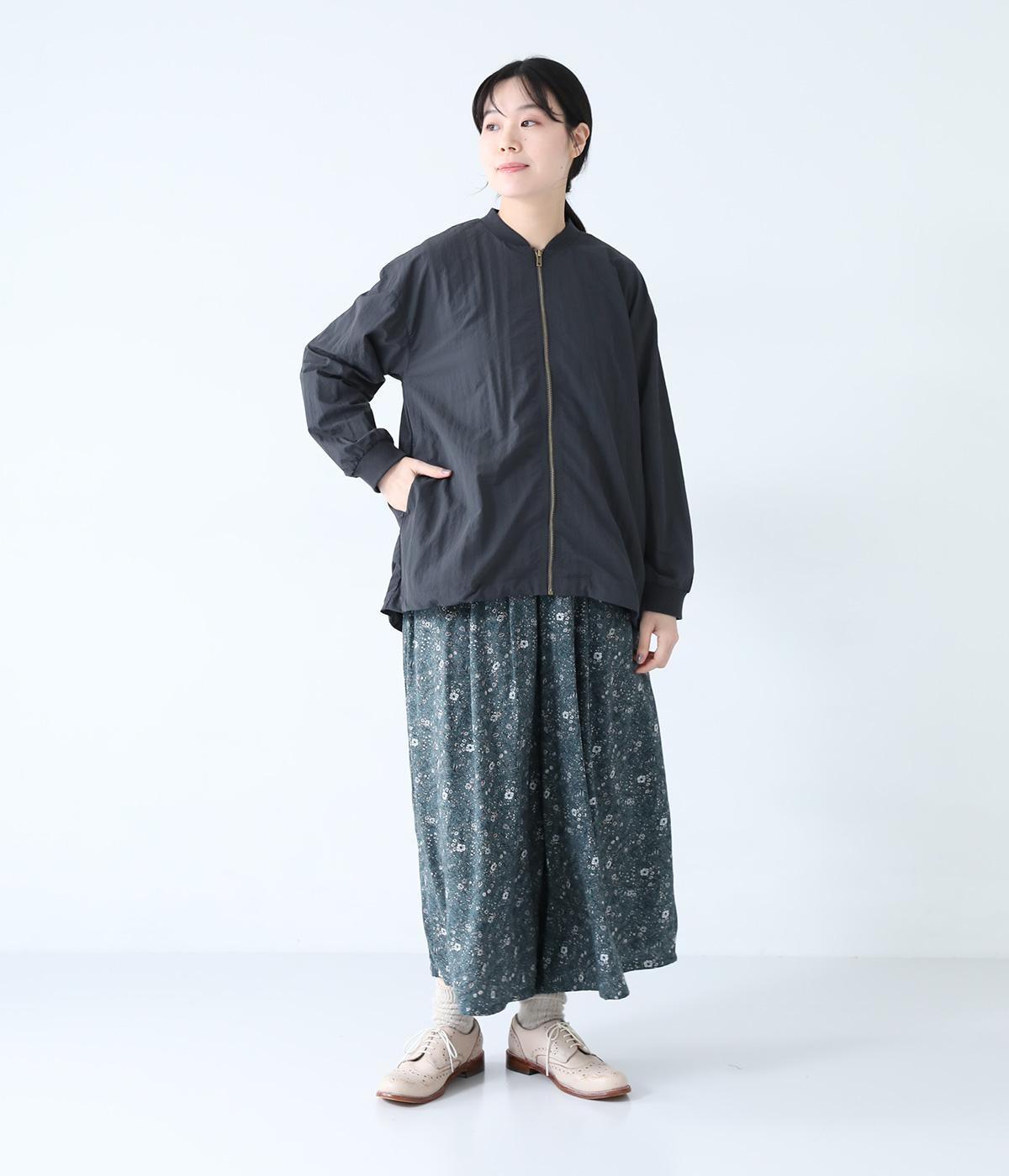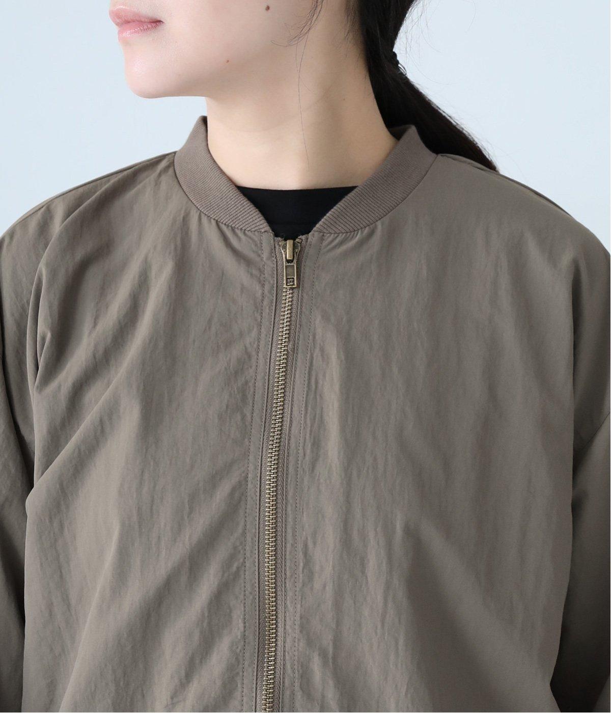 カジュアルさと品のよさを持ちあわせたジップアップブルゾン。後ろネックにギャザーを入れ、ふんわりとさせたバックスタイルが女性らしさを運びます。フロントはゴールドのアンティーク調ファスナーを用いて味わい深さをプラス。裾のドローコードを絞ればシルエットのアレンジが可能です。
