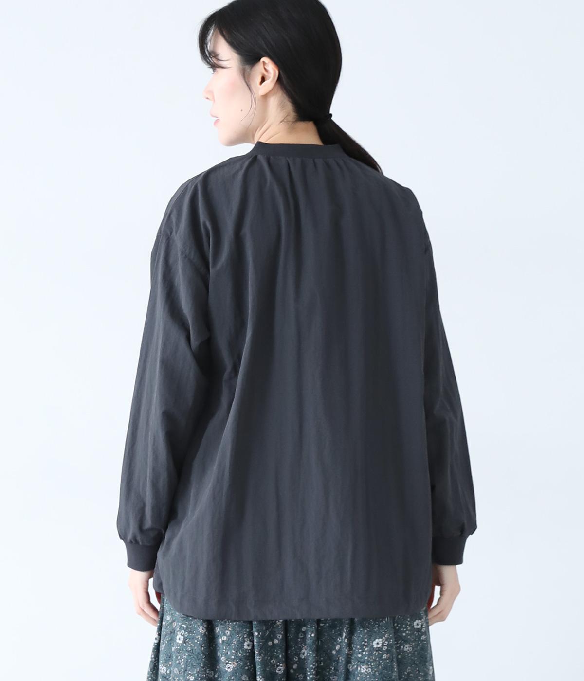 さらりとしたとても軽やかなナイロン生地で、ストレスフリーに羽織れるのが魅力。自然なシワ感とほんのりとした光沢が着こなしに高級感のある表情を与えてくれます。