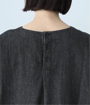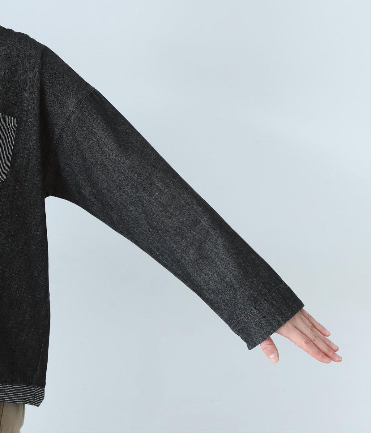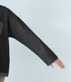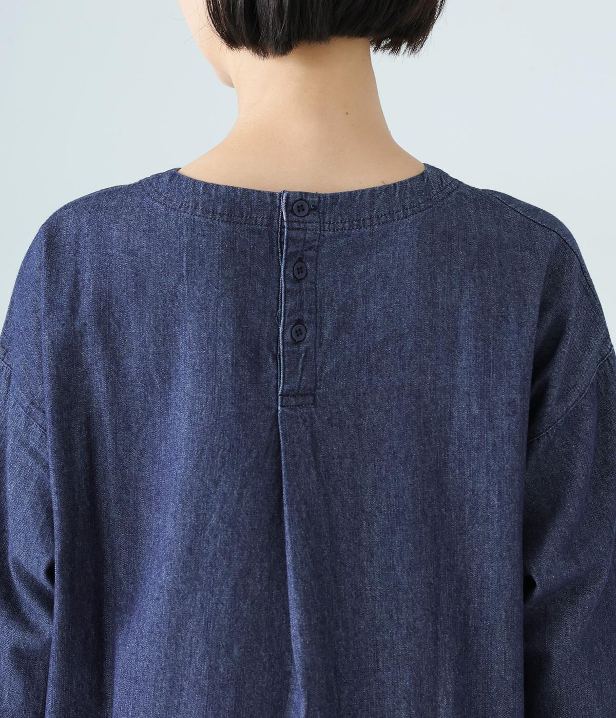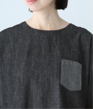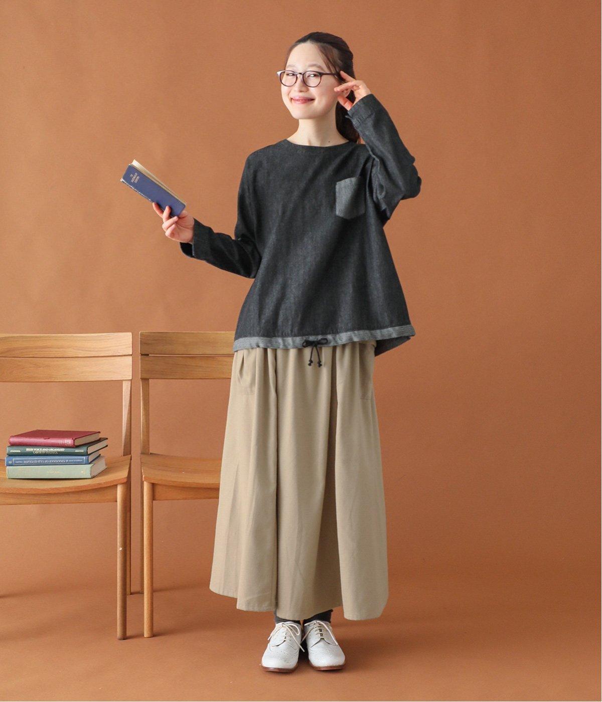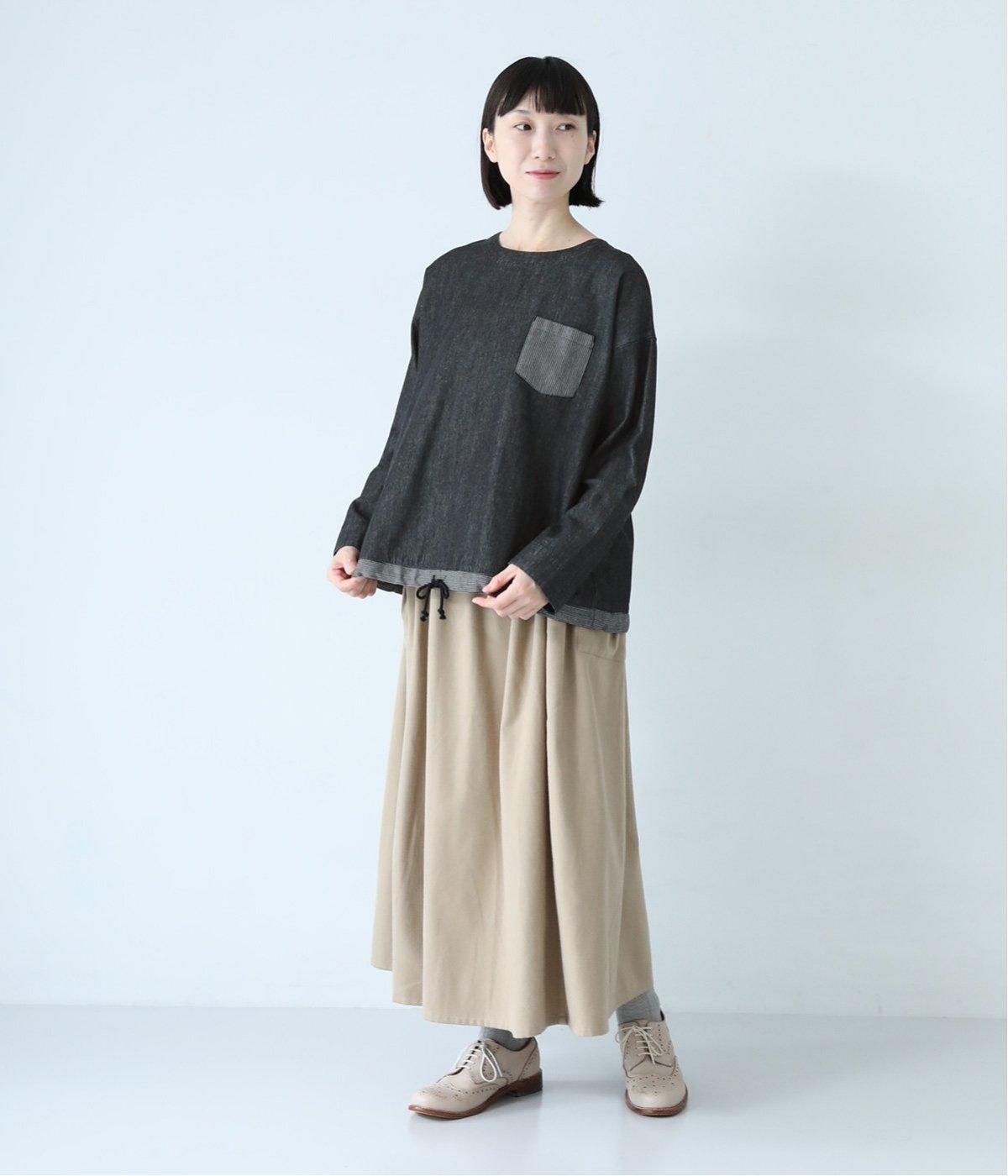 胸ポケットと裾にストライプ生地をドッキングしたデザインブラウス。後ろにタックを入れたゆとりのあるシルエットでラフに着用できます。裾の紐を絞れば丸みのあるフォルムにアレンジ可能。バックネックのボタンは着脱をアシストしつつ、後ろ姿のアクセントにもなります。