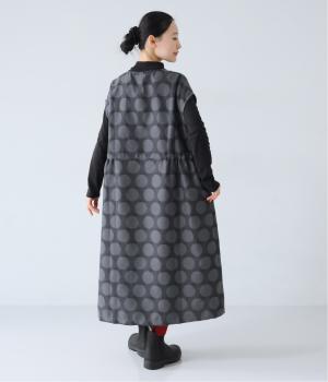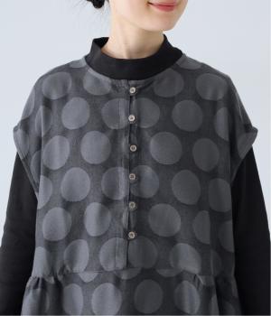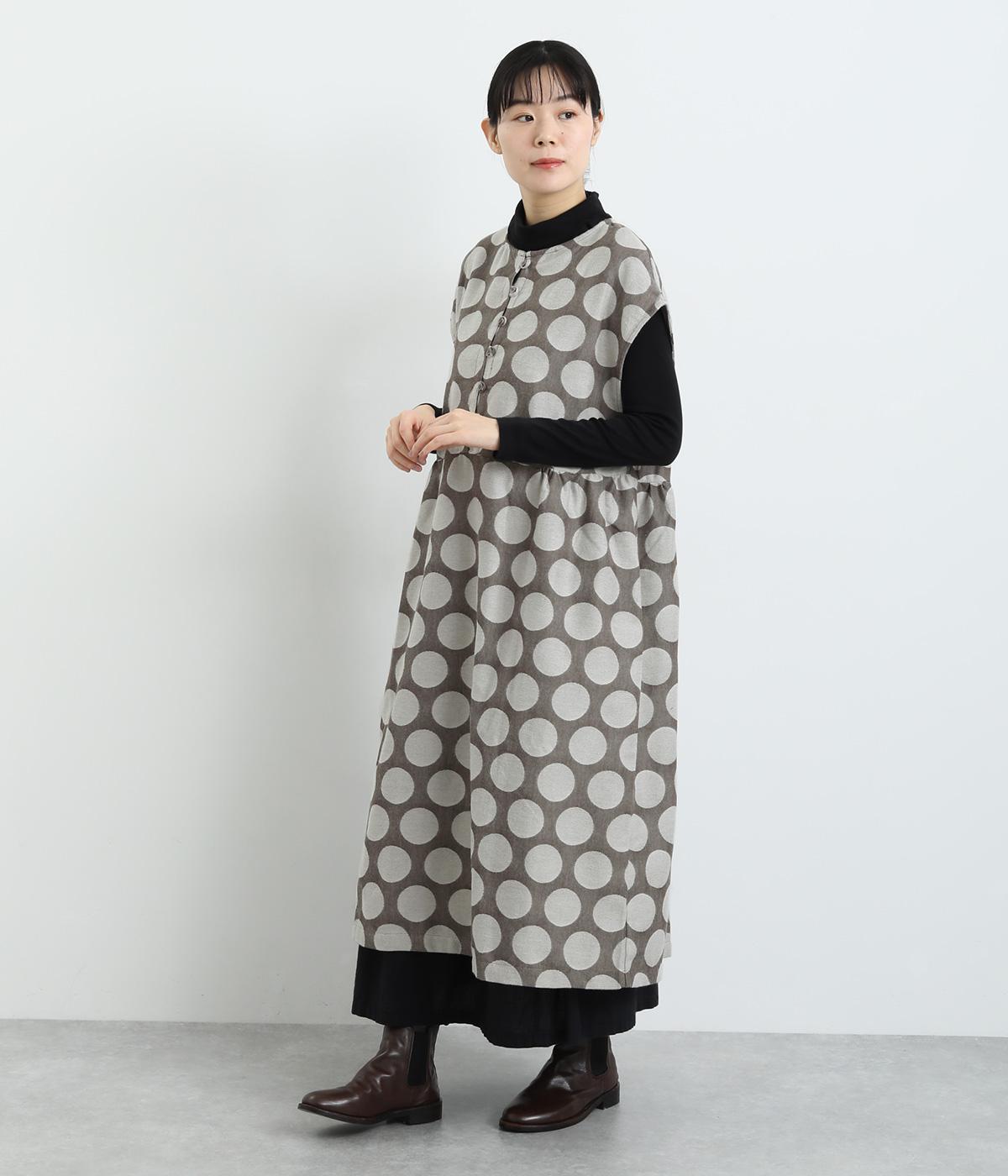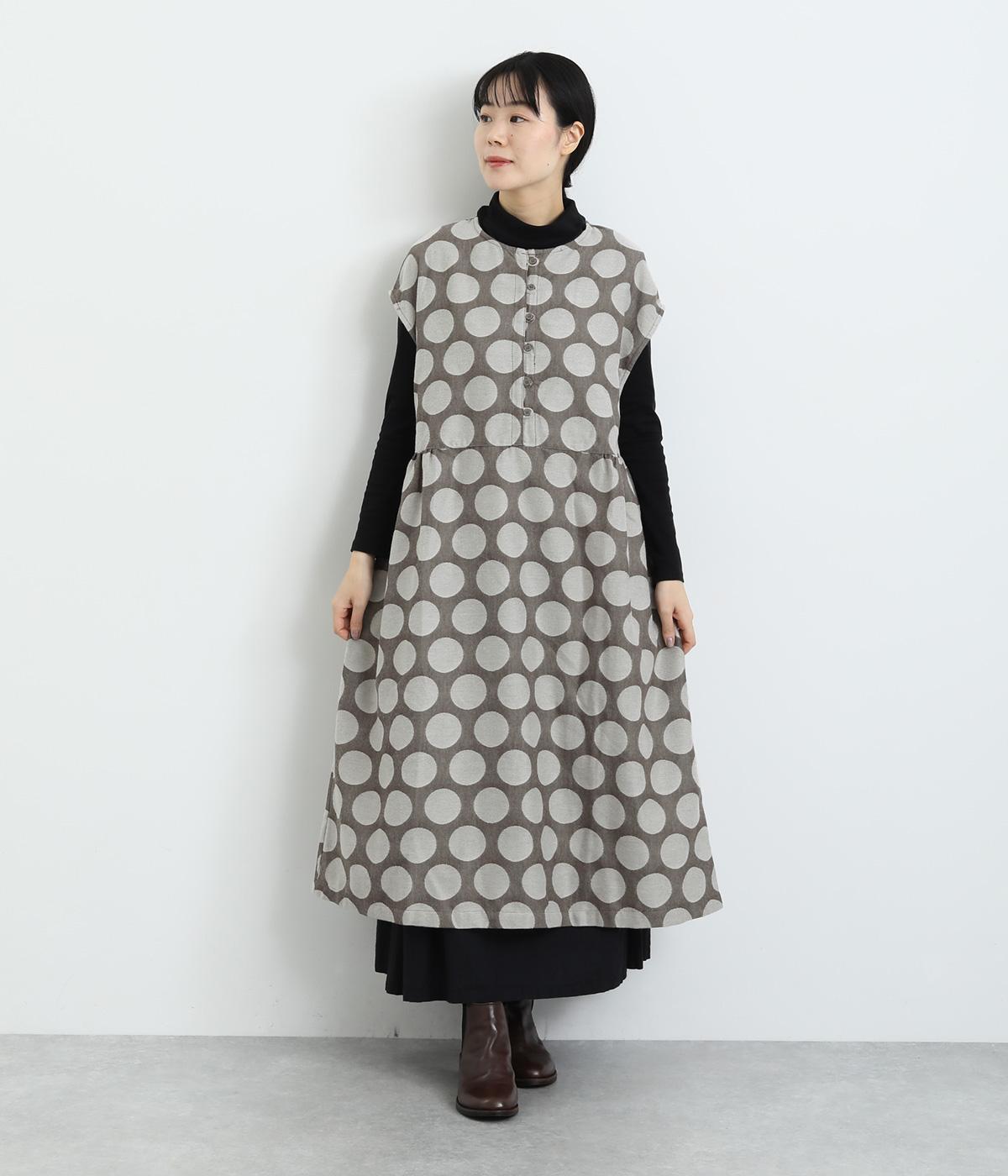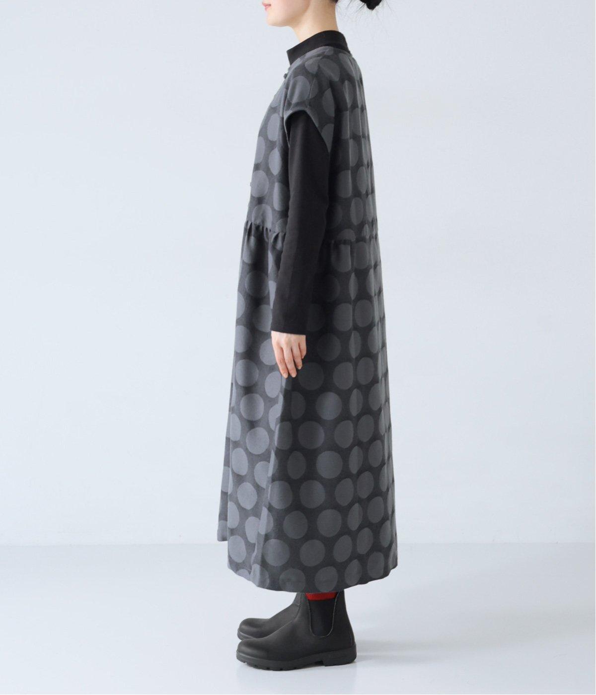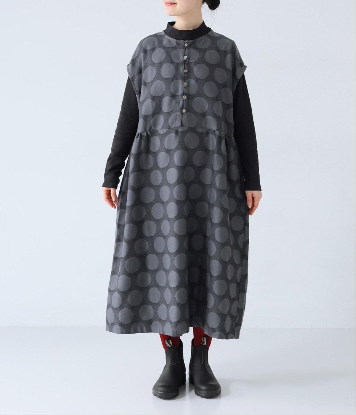 ドット柄を敷き詰めた、ガーリーさとモード感のバランスが絶妙なワンピース。フレンチスリーブでトップス合わせがたのしめ、ループボタンのハーフあきで脱ぎ着もスムーズ。足元を軽くした丈感で、ボトムとのレイヤードもおすすめ。