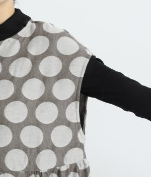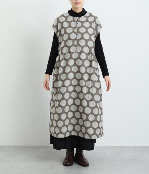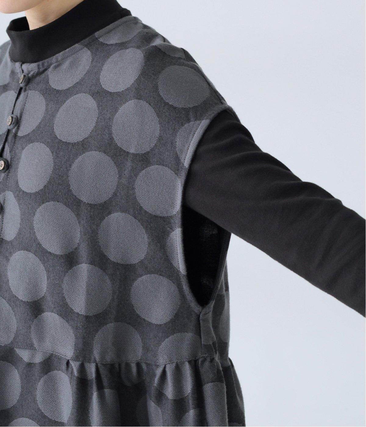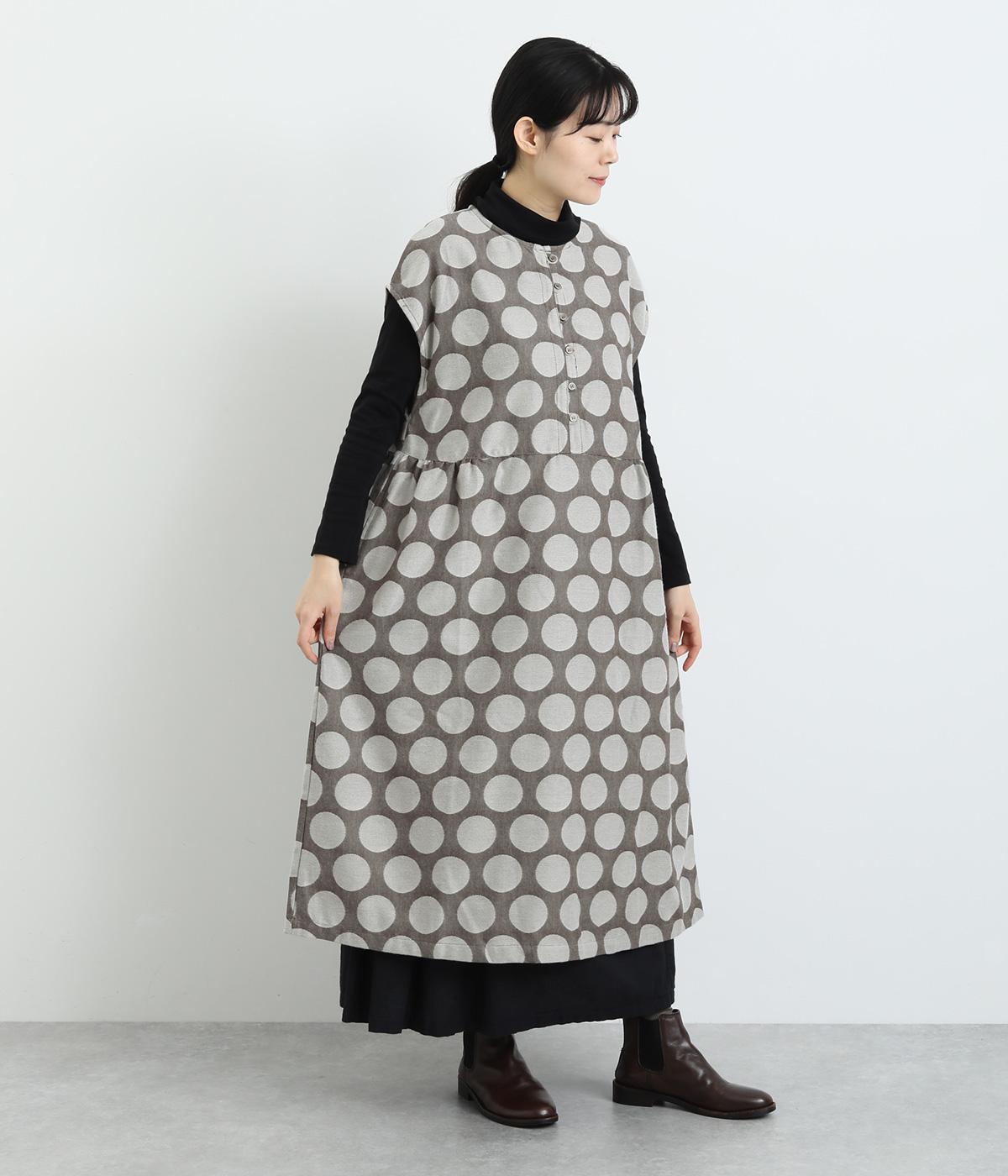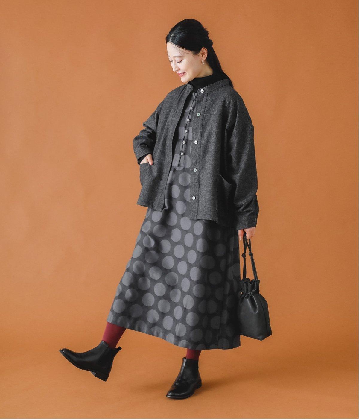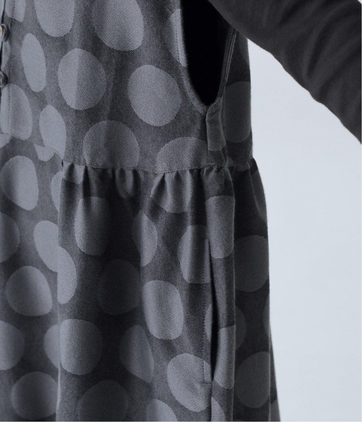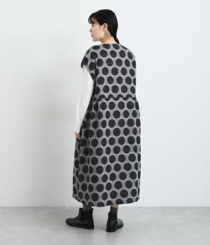 ドット柄を敷き詰めた、ガーリーさとモード感のバランスが絶妙なワンピース。フレンチスリーブでトップス合わせがたのしめ、ループボタンのハーフあきで脱ぎ着もスムーズ。足元を軽くした丈感で、ボトムとのレイヤードもおすすめ。