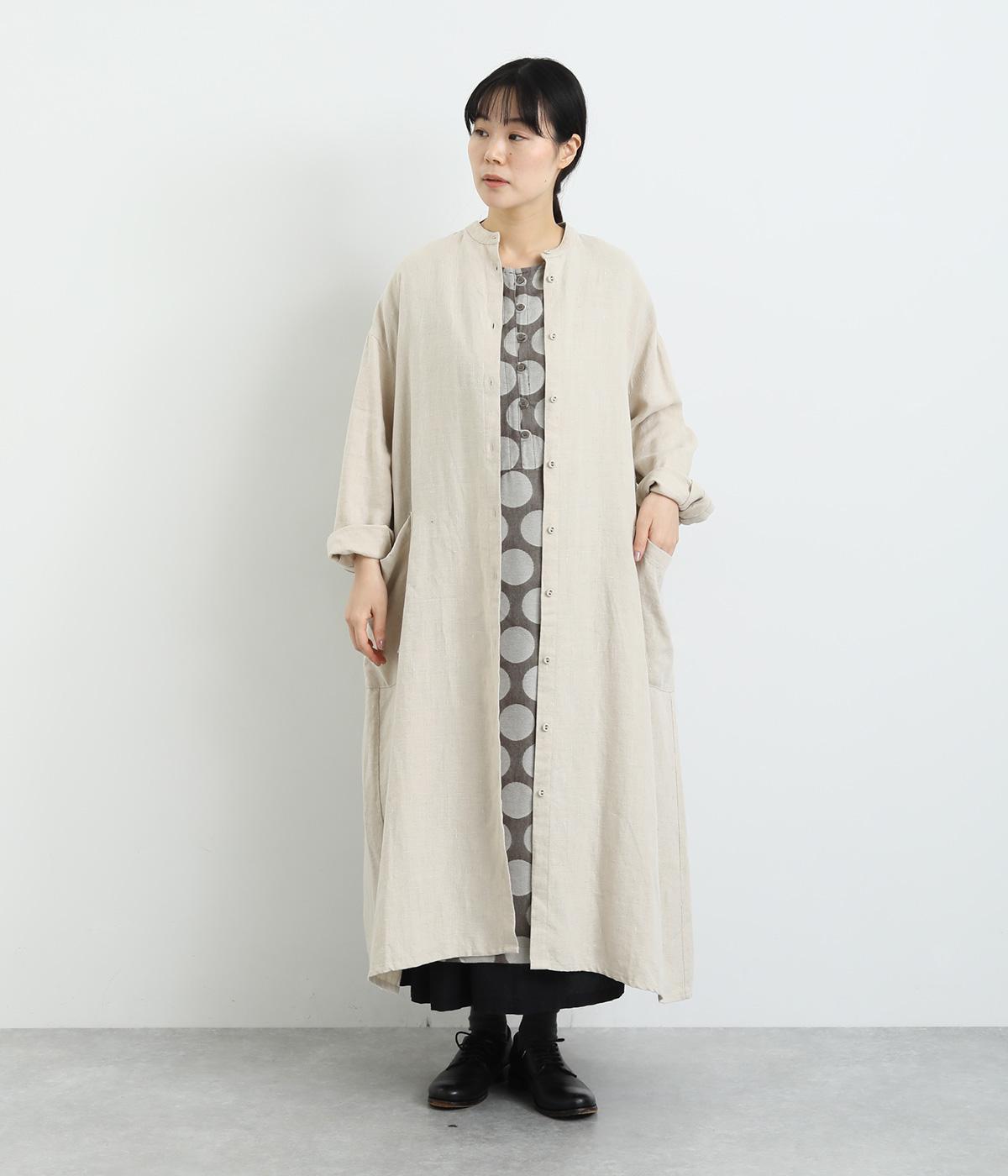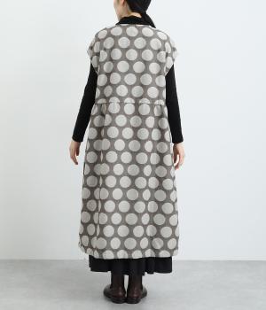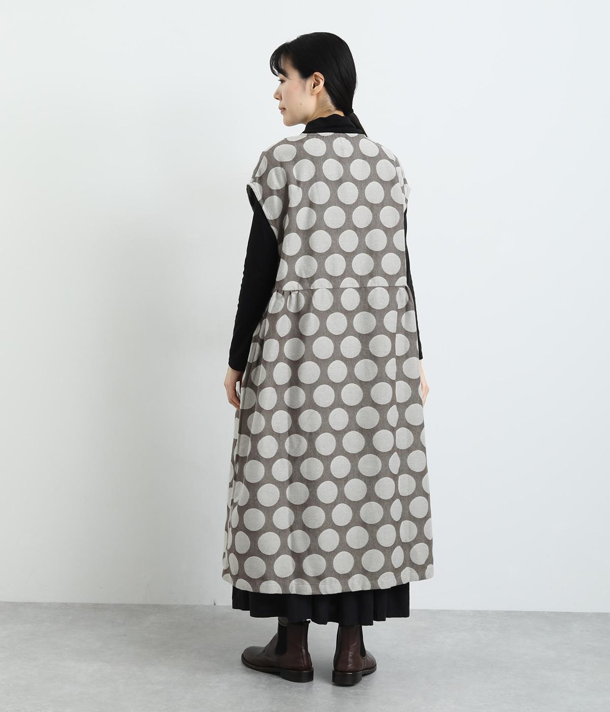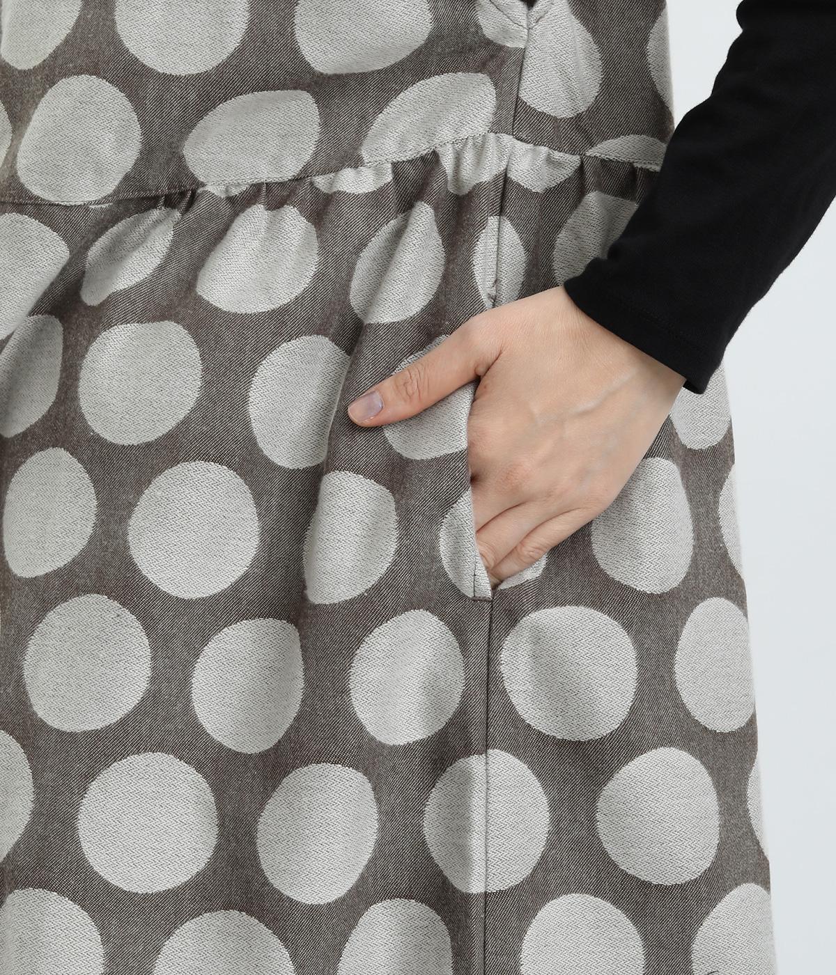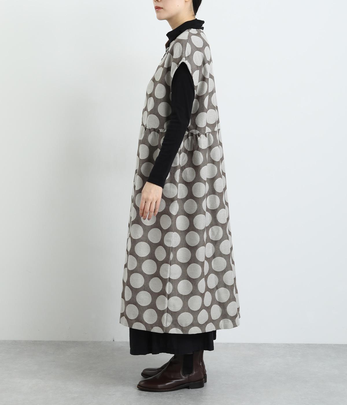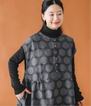 ドット柄を敷き詰めた、ガーリーさとモード感のバランスが絶妙なワンピース。フレンチスリーブでトップス合わせがたのしめ、ループボタンのハーフあきで脱ぎ着もスムーズ。足元を軽くした丈感で、ボトムとのレイヤードもおすすめ。