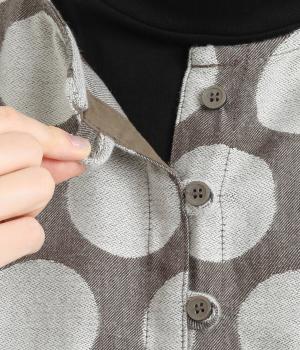 表起毛によるふんわりとしたあたたかみとジャカード織りのドット柄が印象的なコットン混紡生地です。ポリエステルをベースにしているので速乾性も良く、軽さのあるツイル生地に仕上がっています。