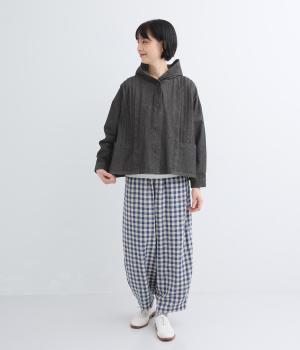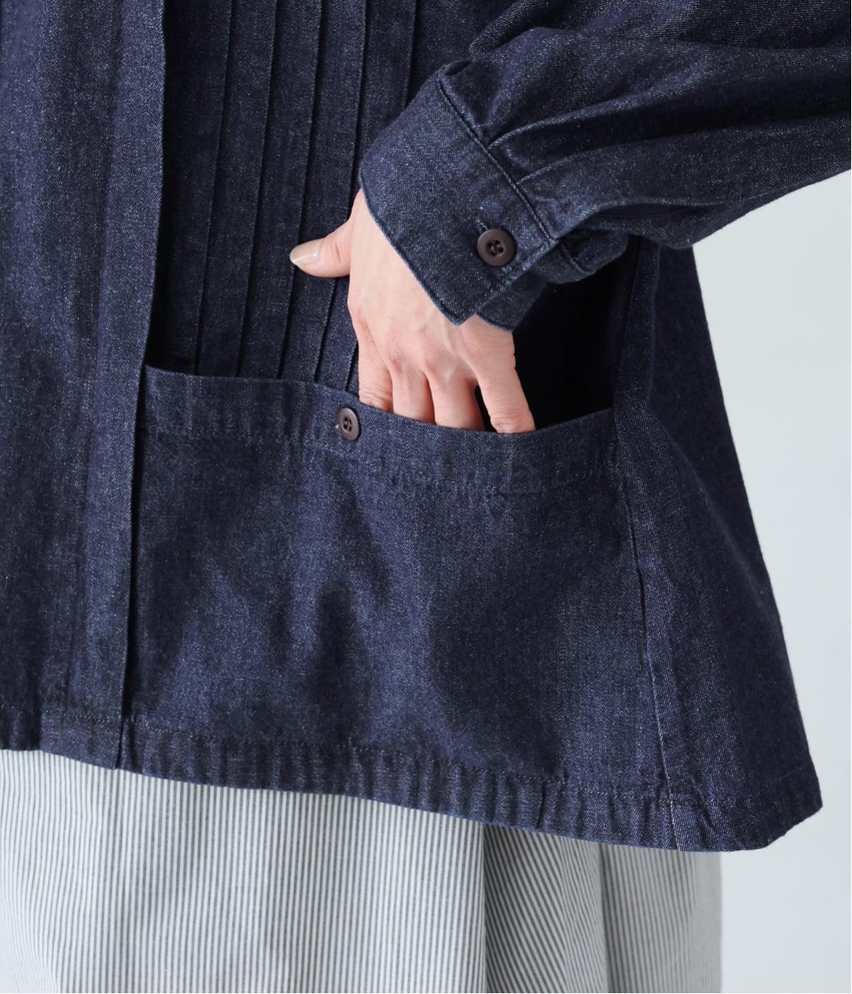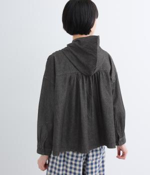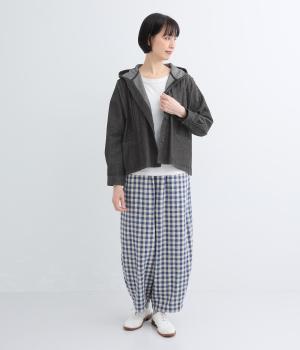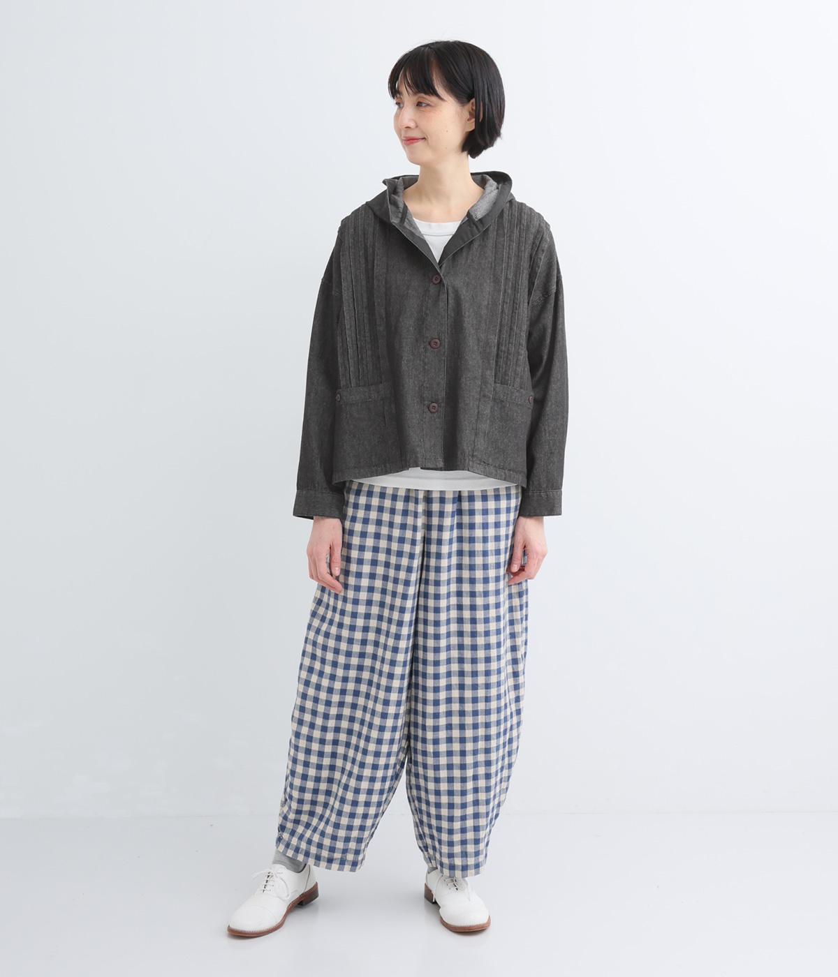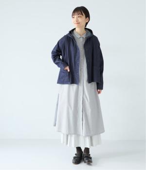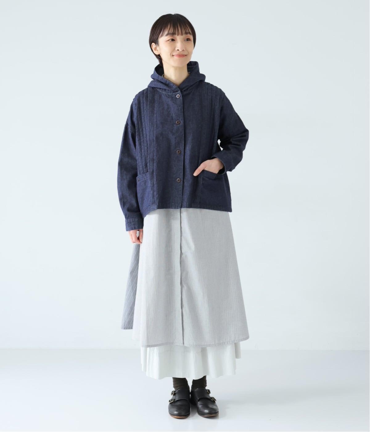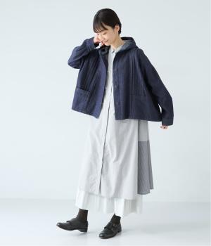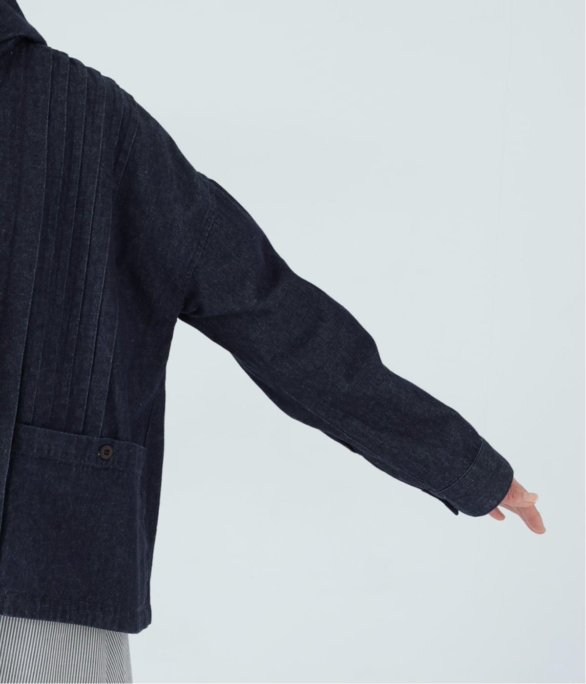気軽に羽織りやすいライトオンスデニムのフードつきジャケット。フロントのピンタックと背中のギャザー使いで、カジュアルな中にもほんのりと甘さをプラスしました。ゆったりとしたシルエットと、やや短めの着丈のバランスもグッドです。