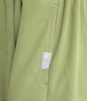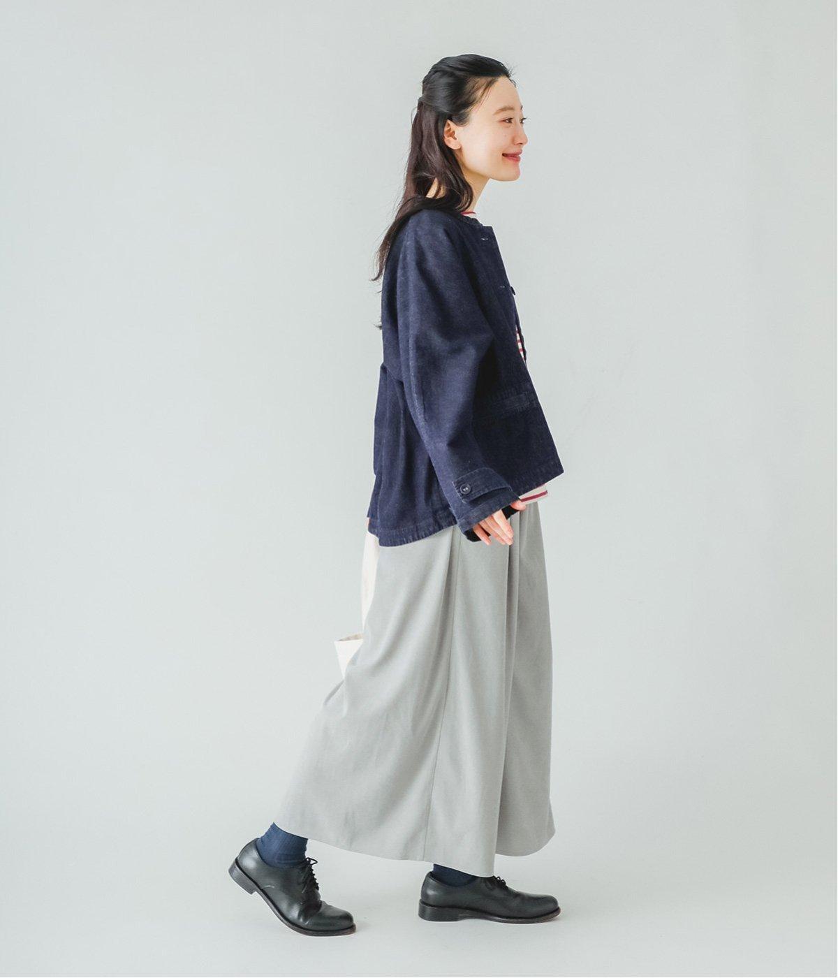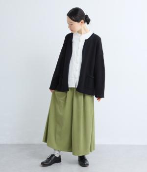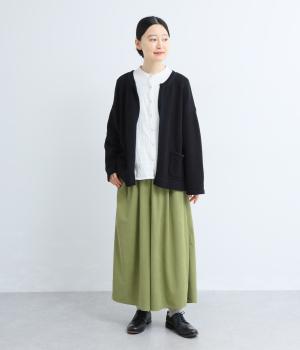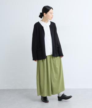 ブラックはしっかりとしたハリ感のあるやや薄手のさらりとした生地。グリーンはほんのりと起毛感のあるとてもやわらかな風合いの生地を使用しています。