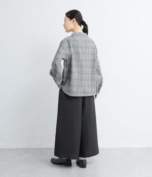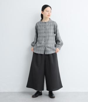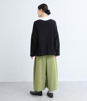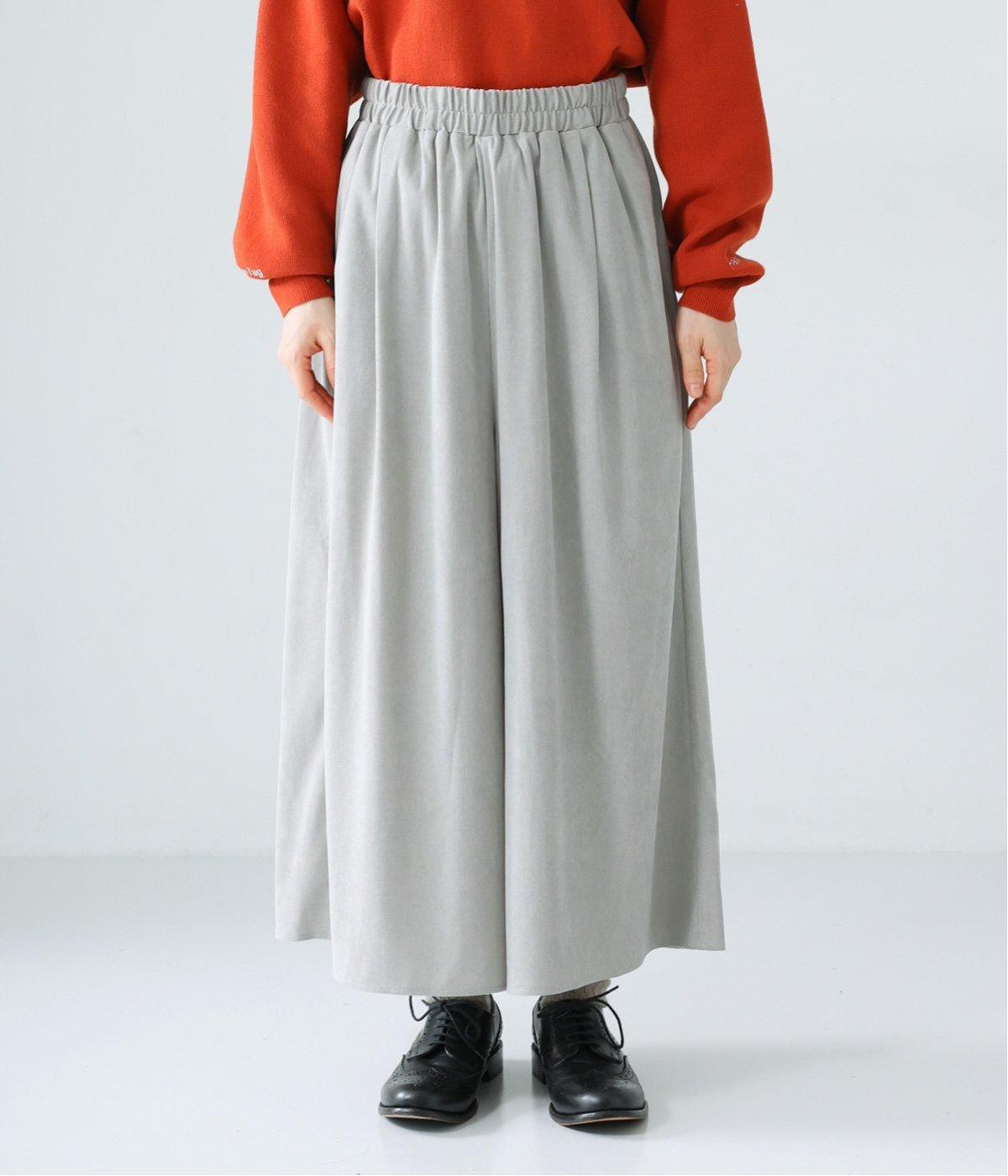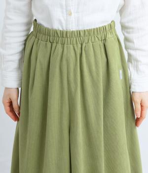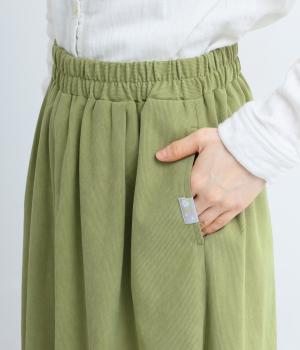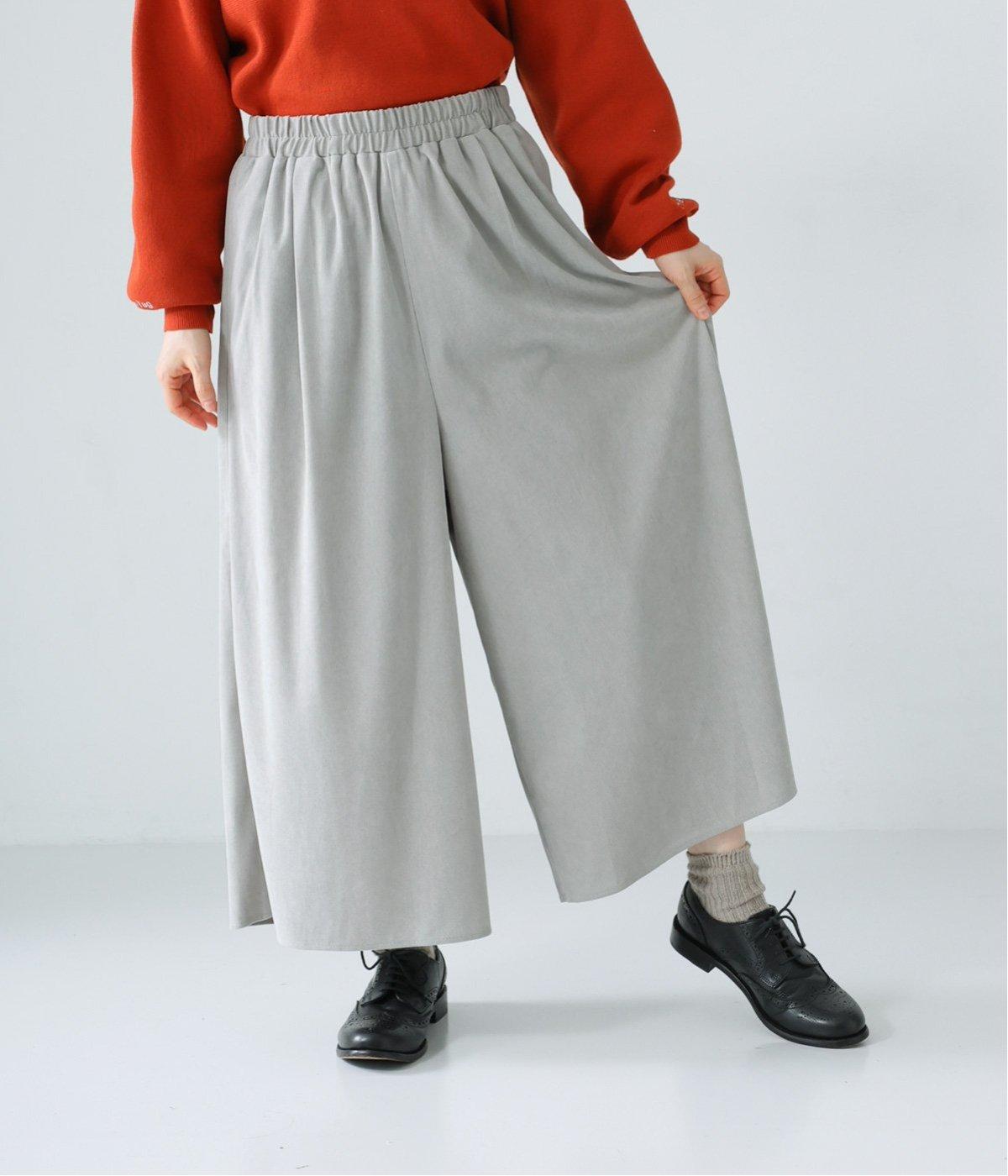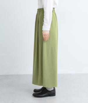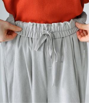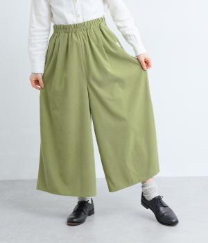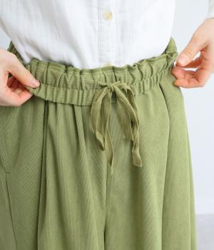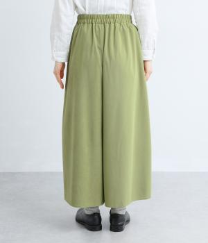 生地の分量をたっぷりと使用したスカート見えするパンツです。動くたびに揺れ感があり、フェミニンで上品な印象に。脚さばきがよく楽なはき心地なので、通勤や旅行にもぴったりです。総ゴム仕様のウエストには内紐をプラスしました。