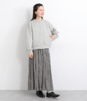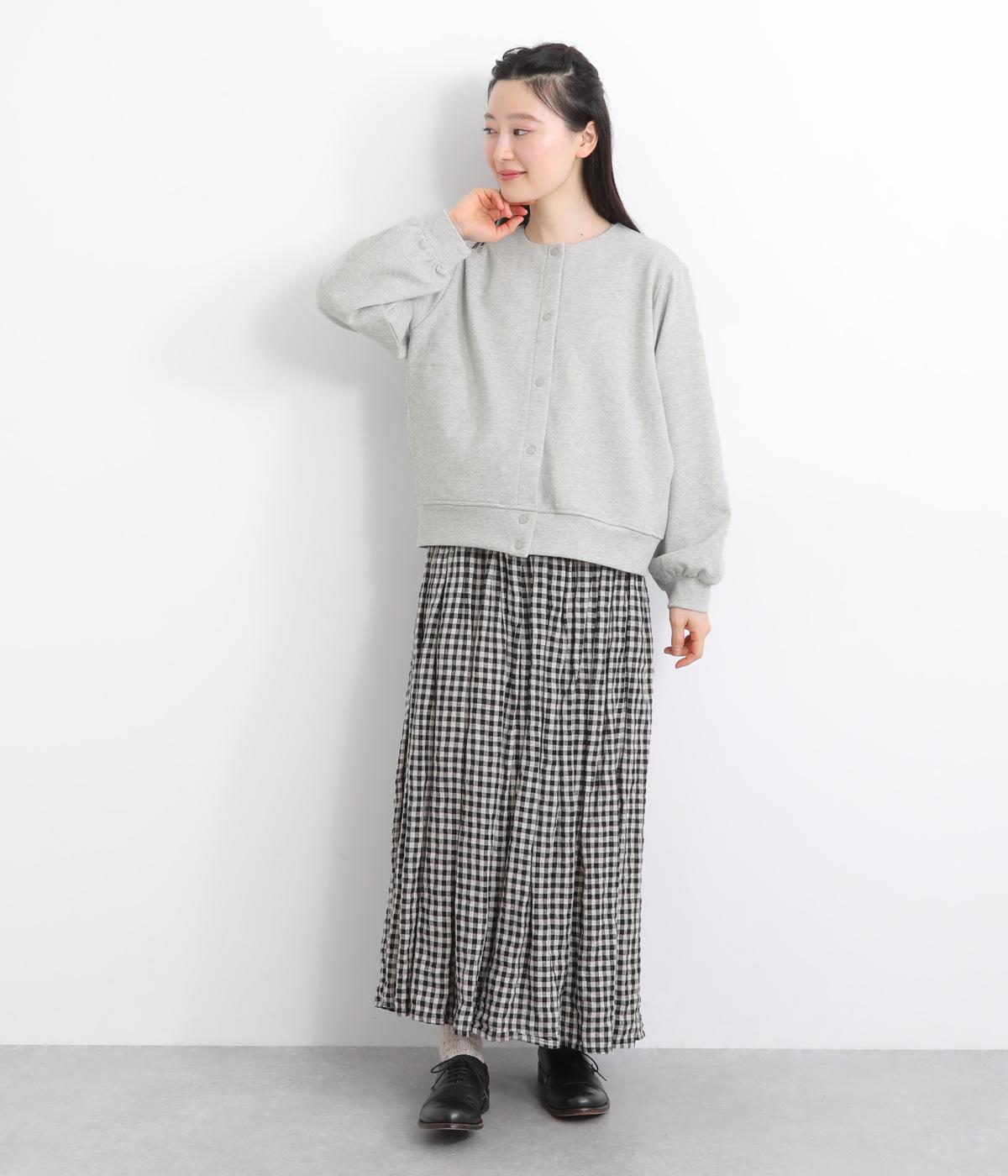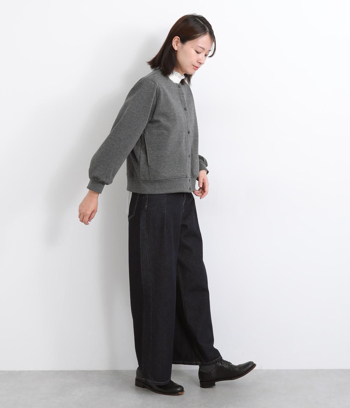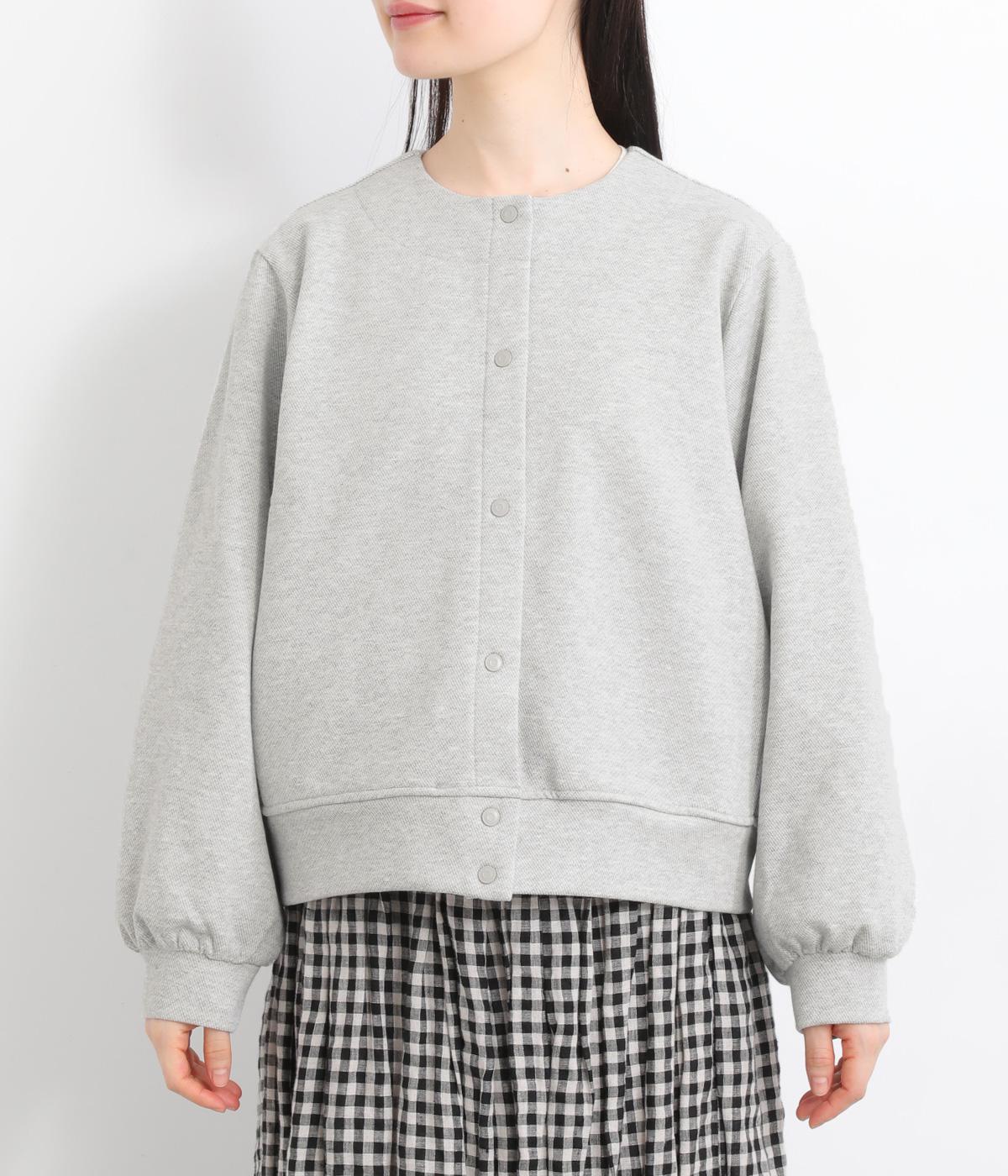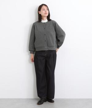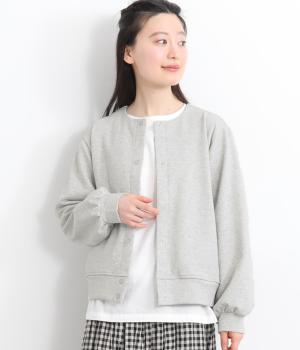 ふっくらとしたボリュームのある袖がワンポイントになったカーディガン。すっきりしたノーカラーにベーシックなサイズ感で、カジュアルスタイルはもちろん、幅広いテイストに合わせやすいのも魅力のひとつ。
