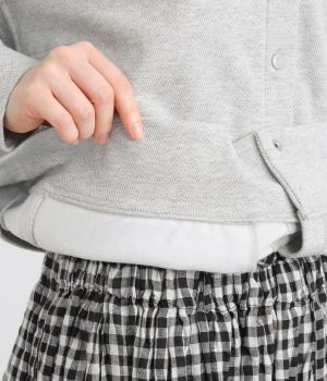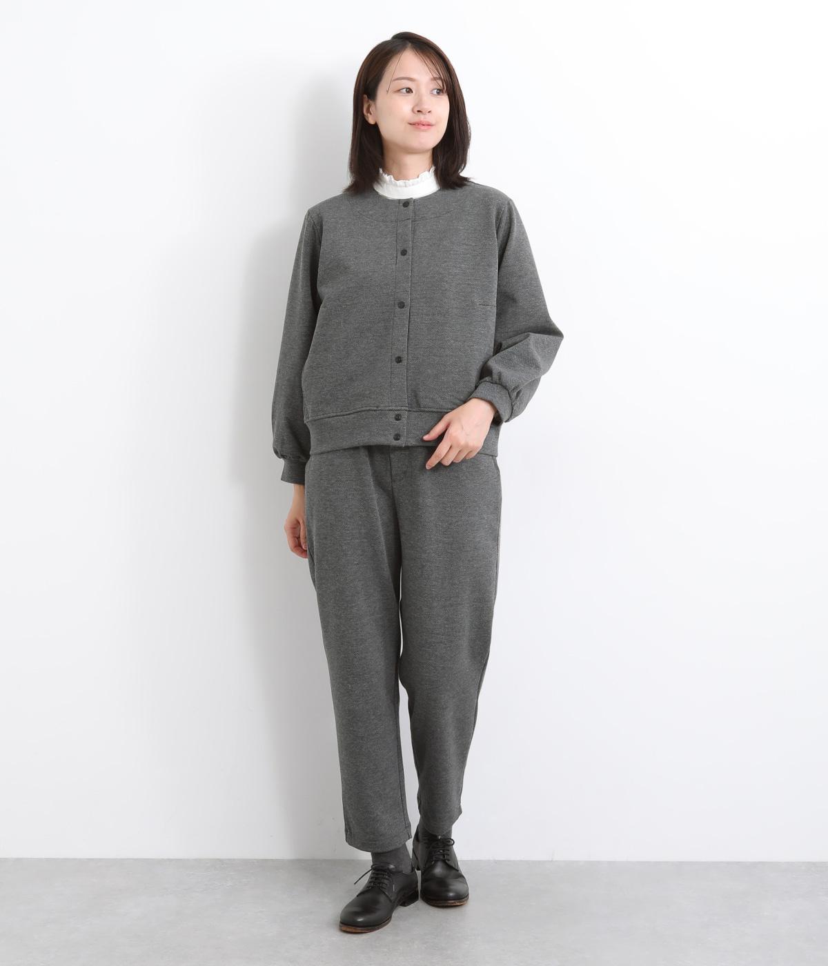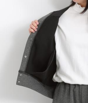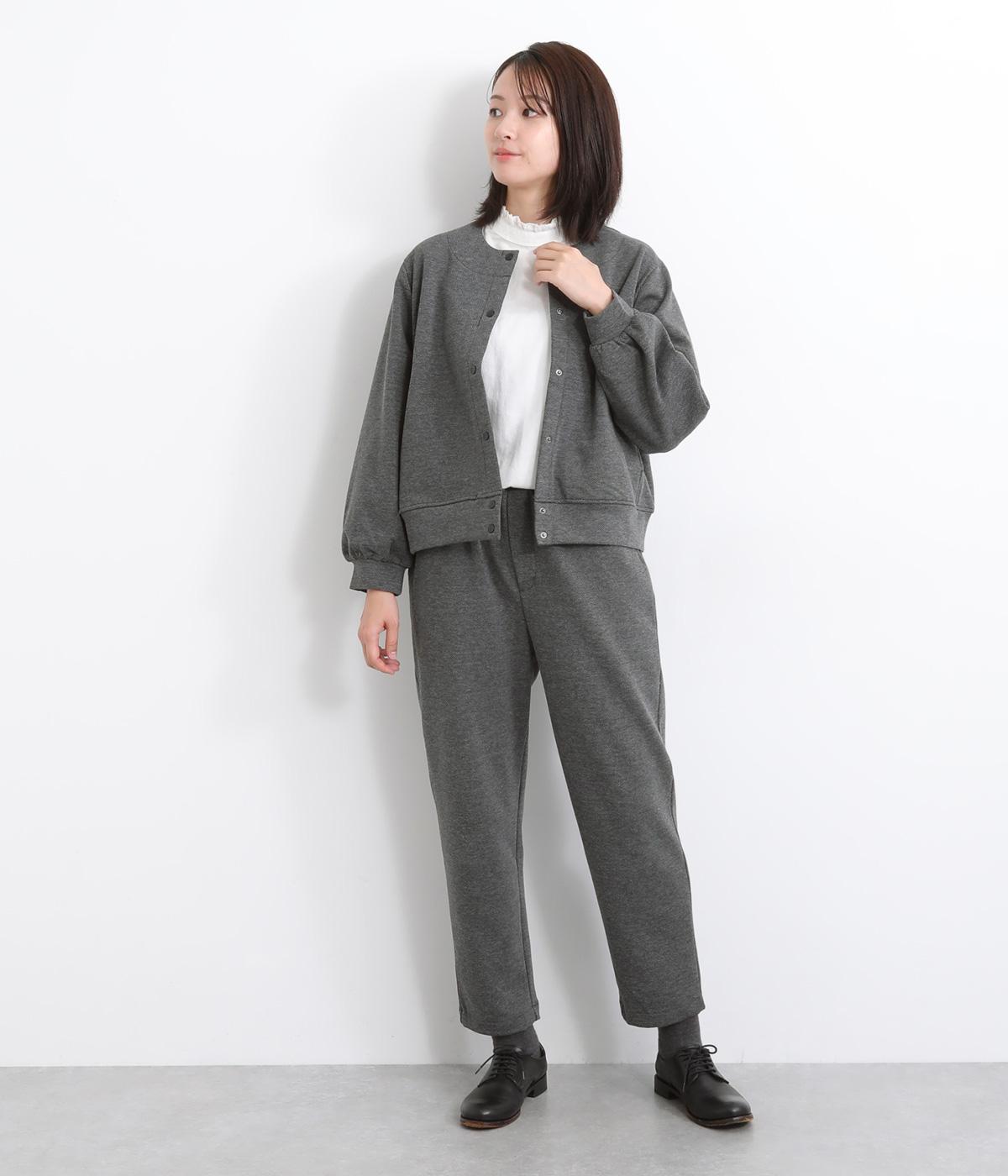 丈夫でシワも気になりにくく伸縮性に優れたツイルジャージで仕立てました。裏起毛で肌あたりも良く、寒い季節のデイリー使いに最適です。