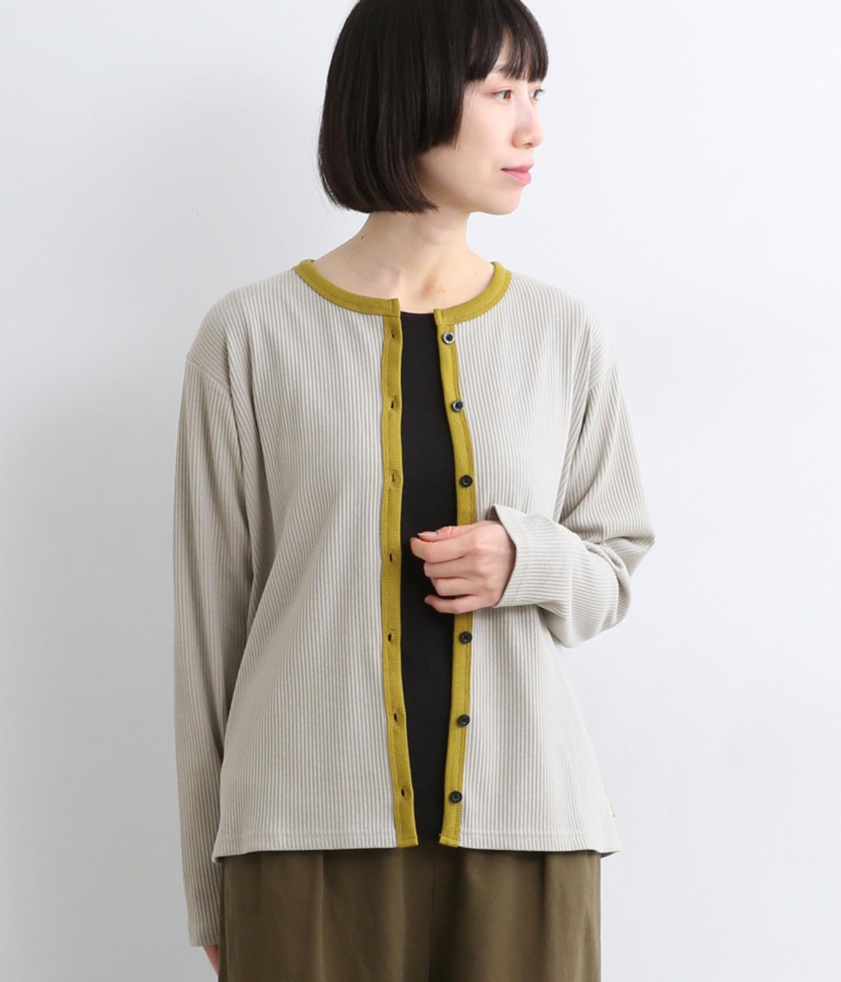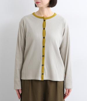 シンプルさのなかに配色デザインが映える、リブ編みで仕立てたカーディガンです。やわらかくフィットするラインで、もたつかずにレイヤードしやすいのもうれしいポイント。インナーとしてもアウターとしても使いやすいので、ワードローブに一枚あると便利なアイテムです。