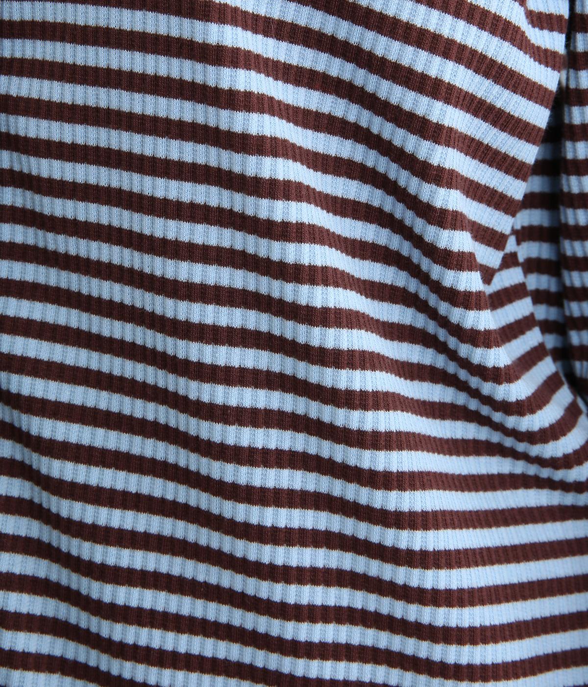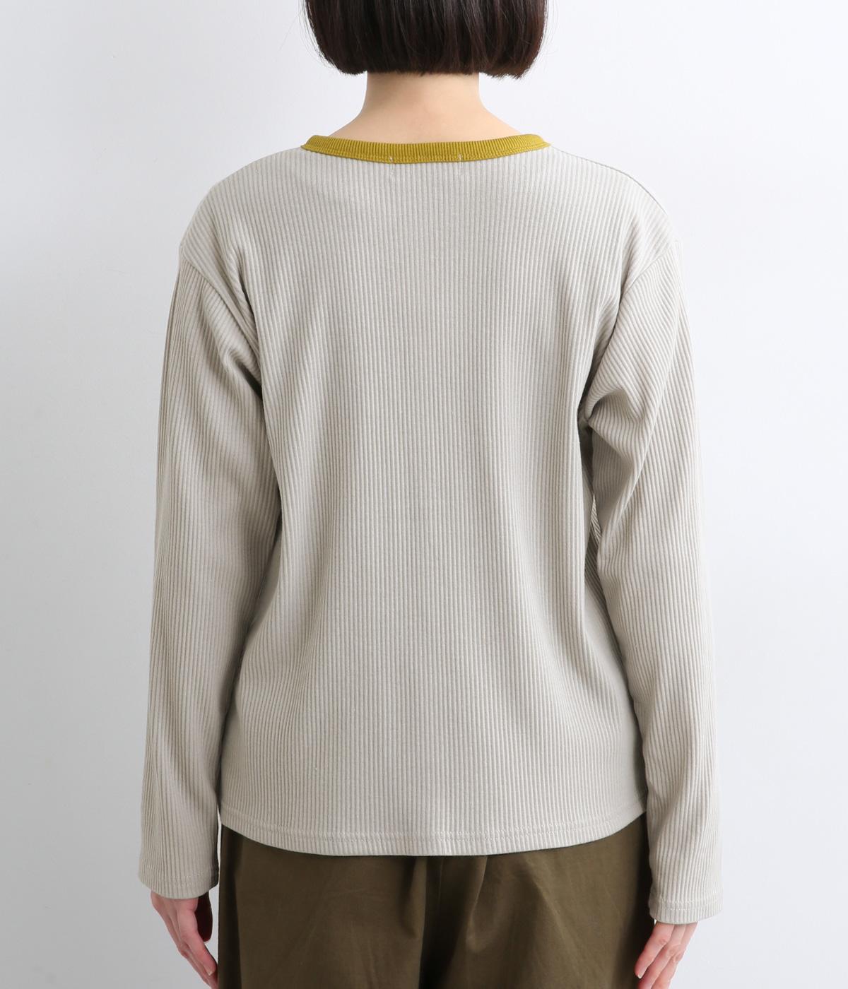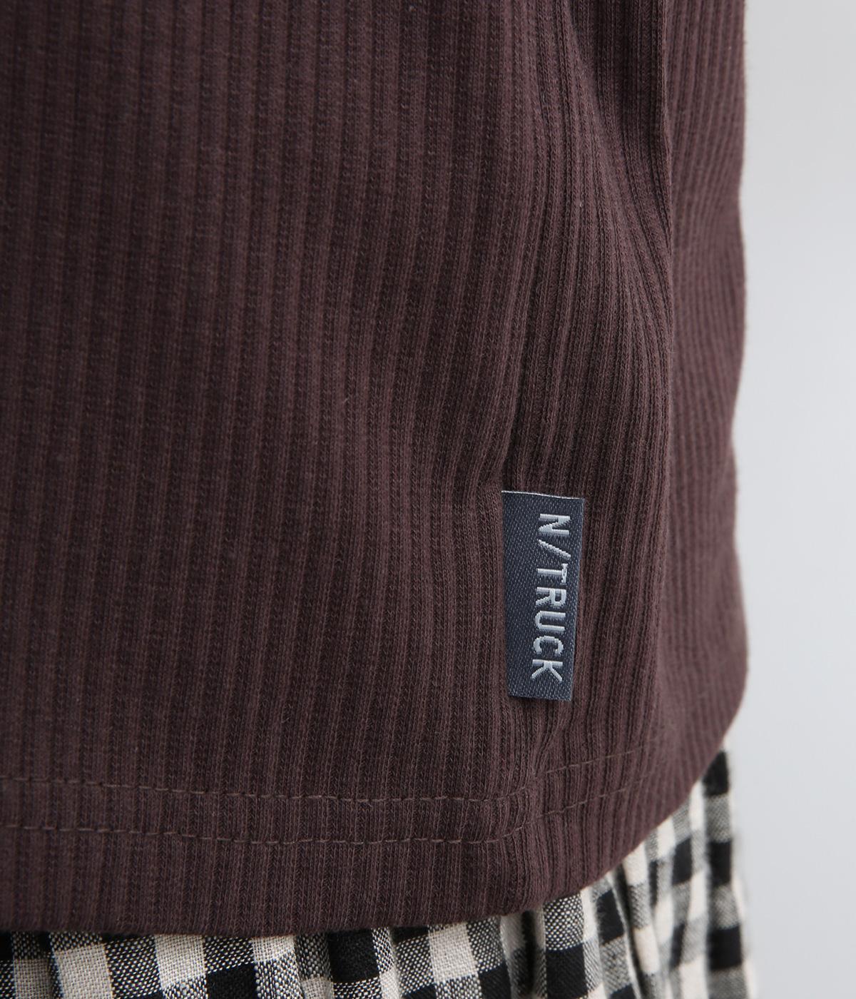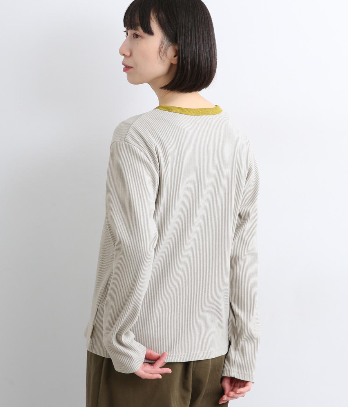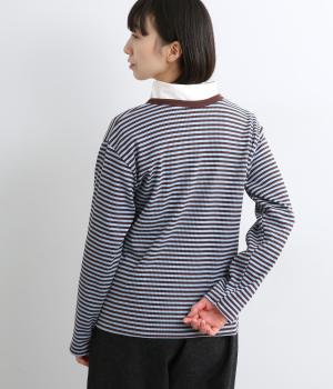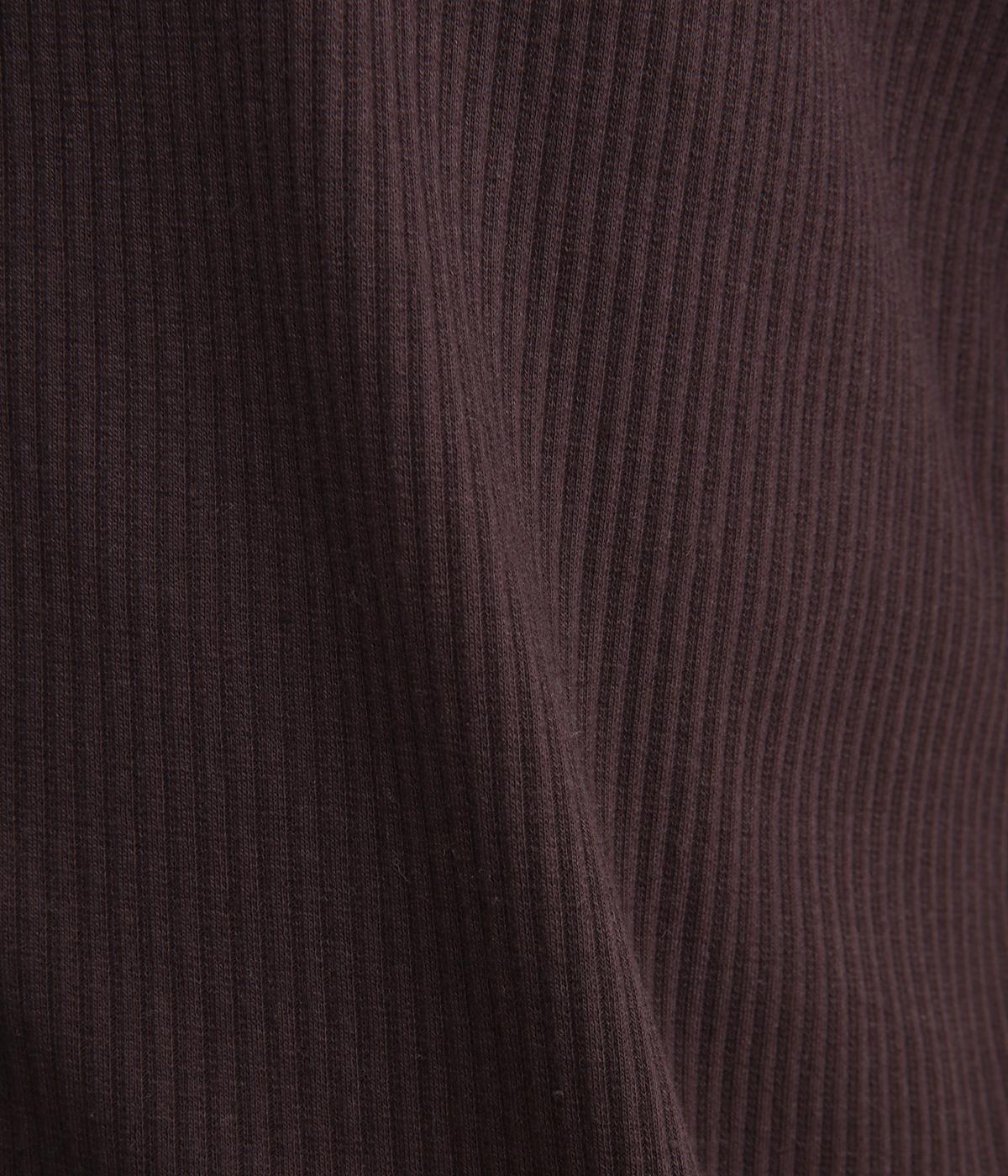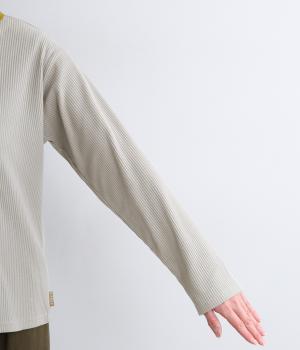 ストレッチの効いたリブ編みカットソー素材を使用しました。肌あたりがやさしく、着るほどに心地よさを実感できます。やわらかなフィット感が魅力で、アウターのなかに着てもごわつきにくい、扱いやすい素材です。