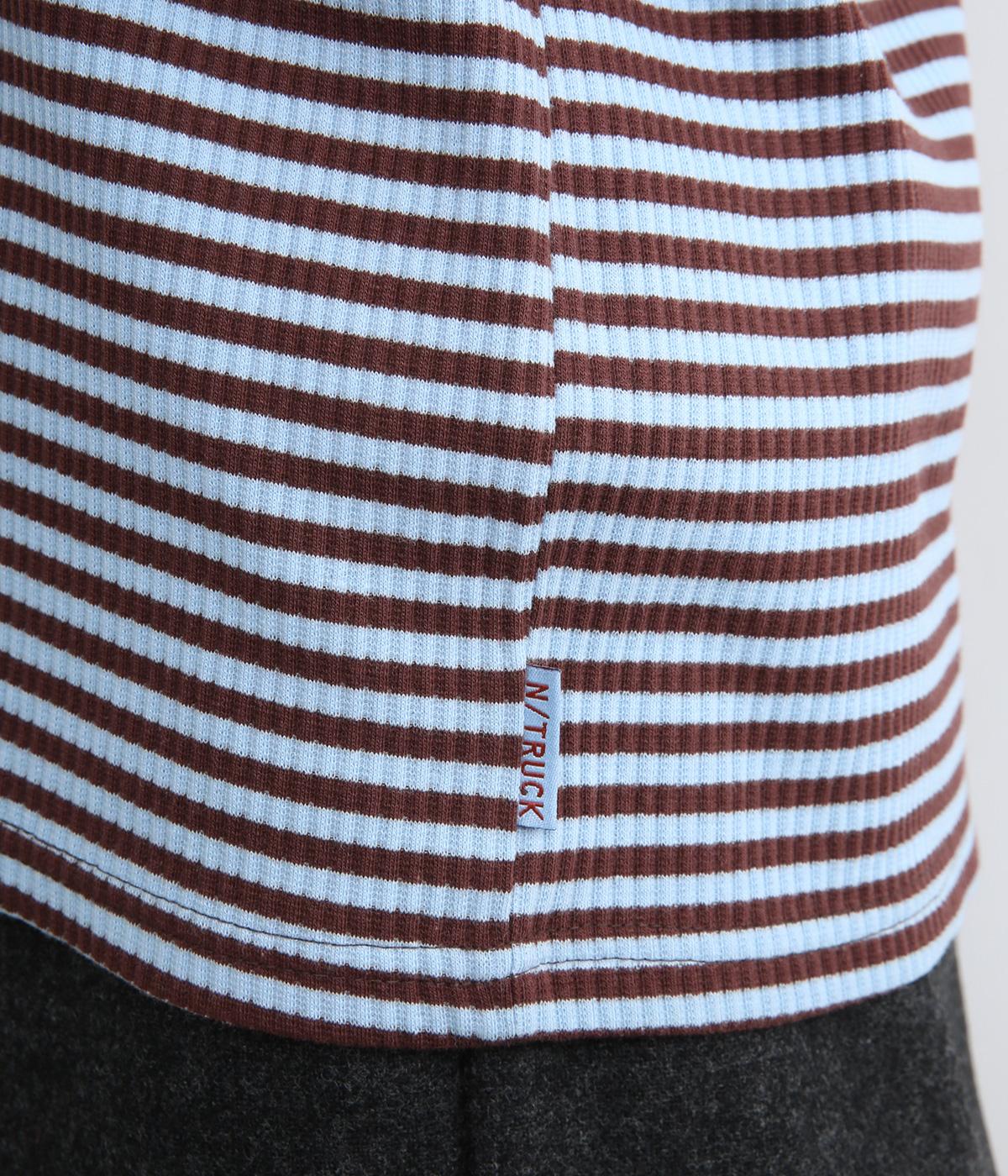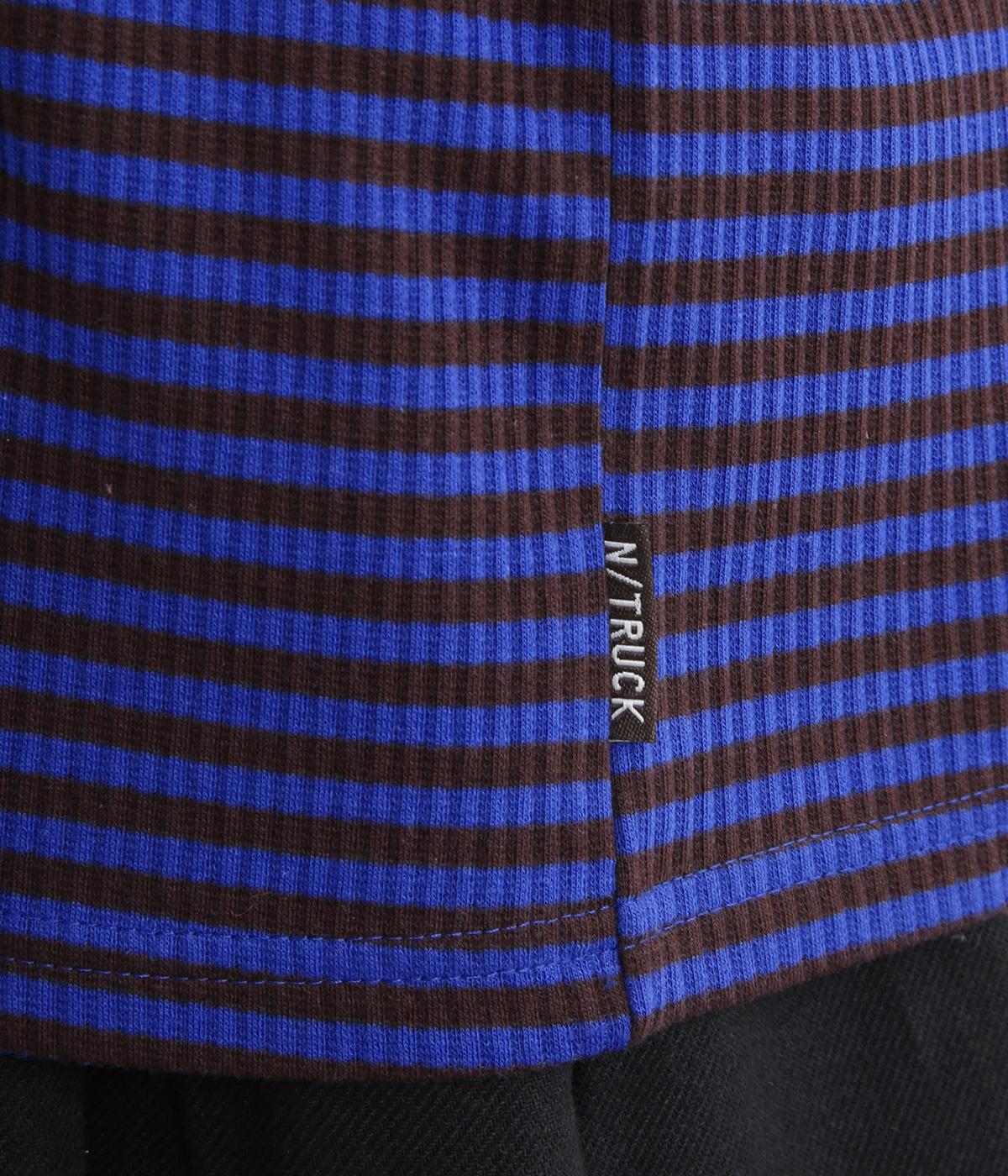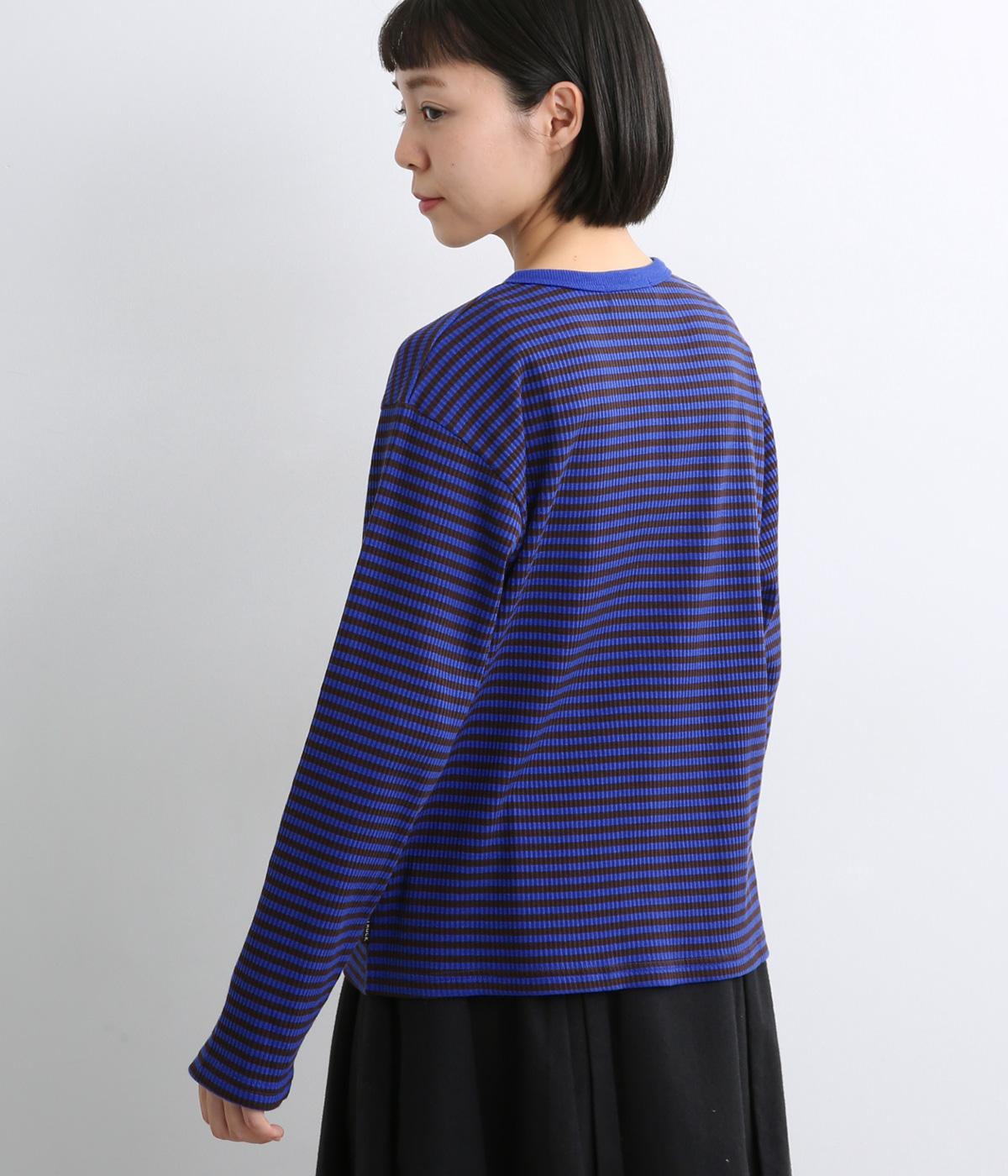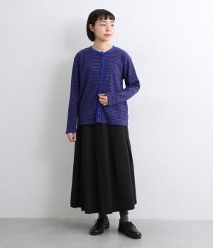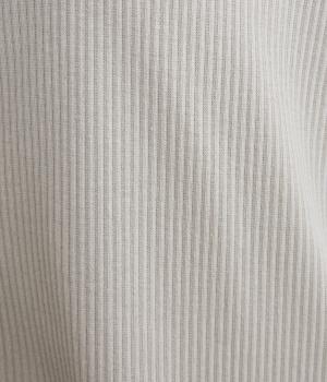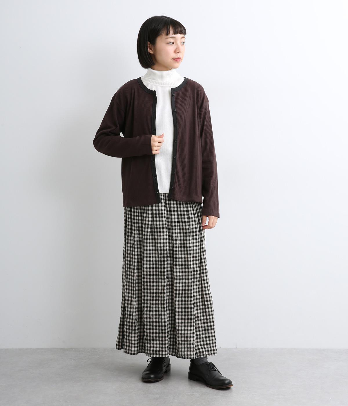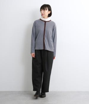 ストレッチの効いたリブ編みカットソー素材を使用しました。肌あたりがやさしく、着るほどに心地よさを実感できます。やわらかなフィット感が魅力で、アウターのなかに着てもごわつきにくい、扱いやすい素材です。