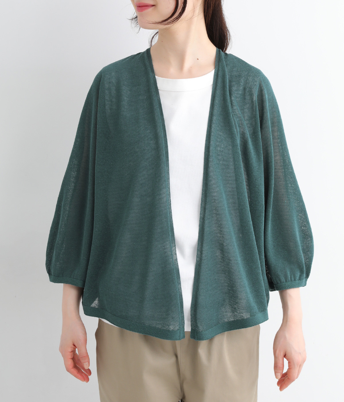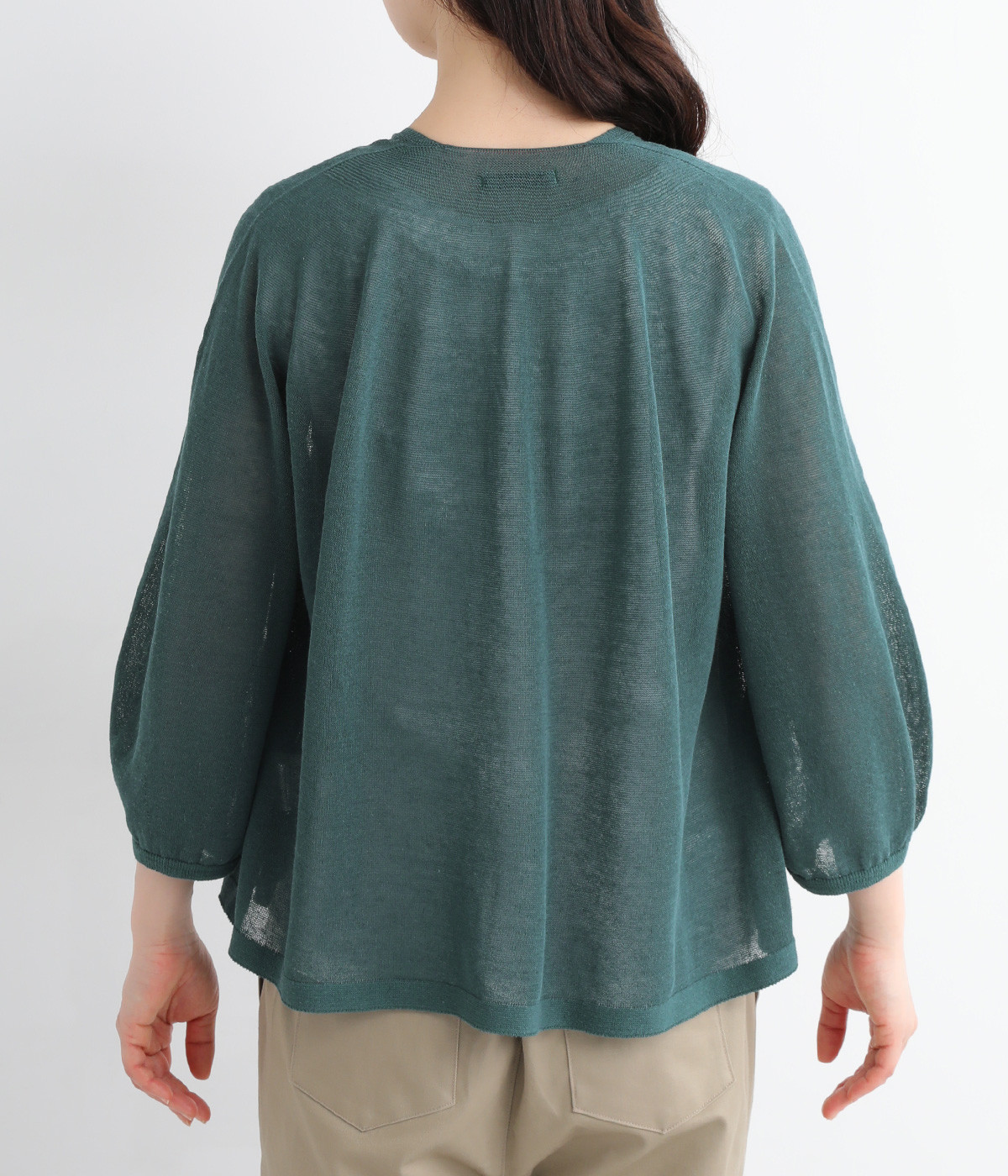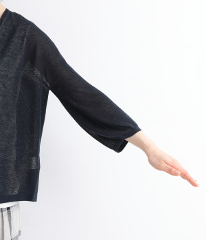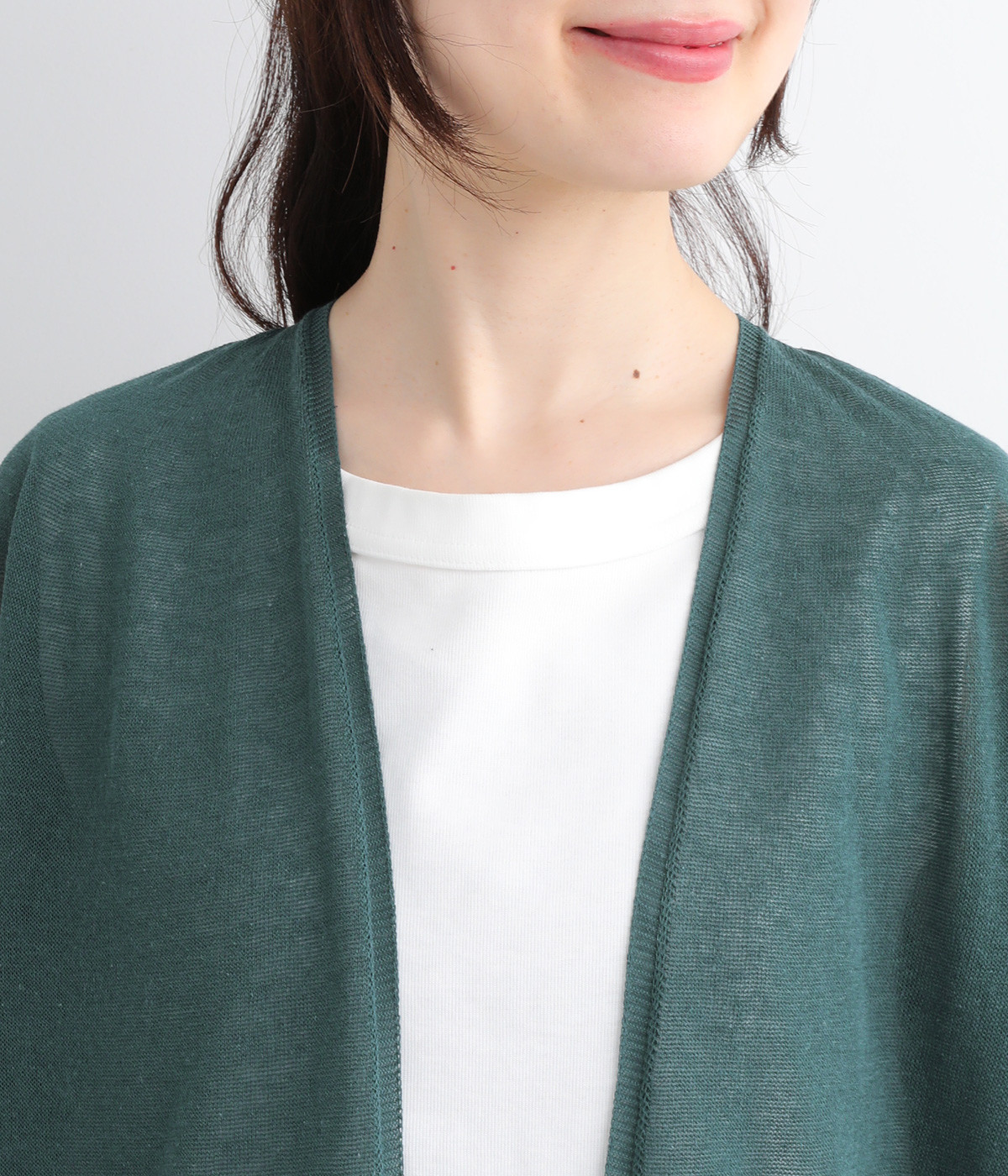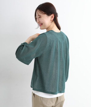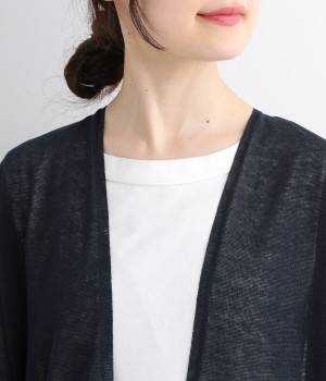 コットン×ポリエステル×リネンの組み合わせで、上品な透け感をもたらすニット素材に。不均一な生地表情がおしゃれをアシスト。いつもの着こなしに軽く羽織れるので、活躍シーンも多くなりそうです。