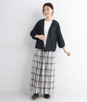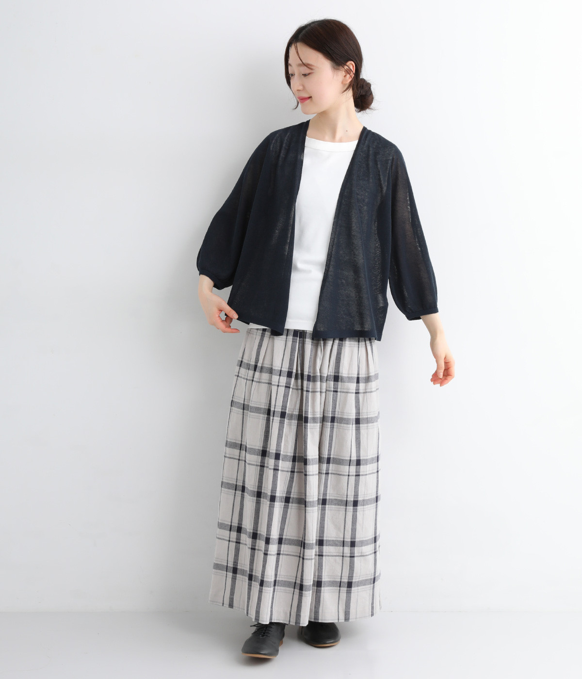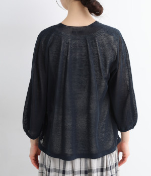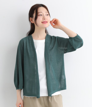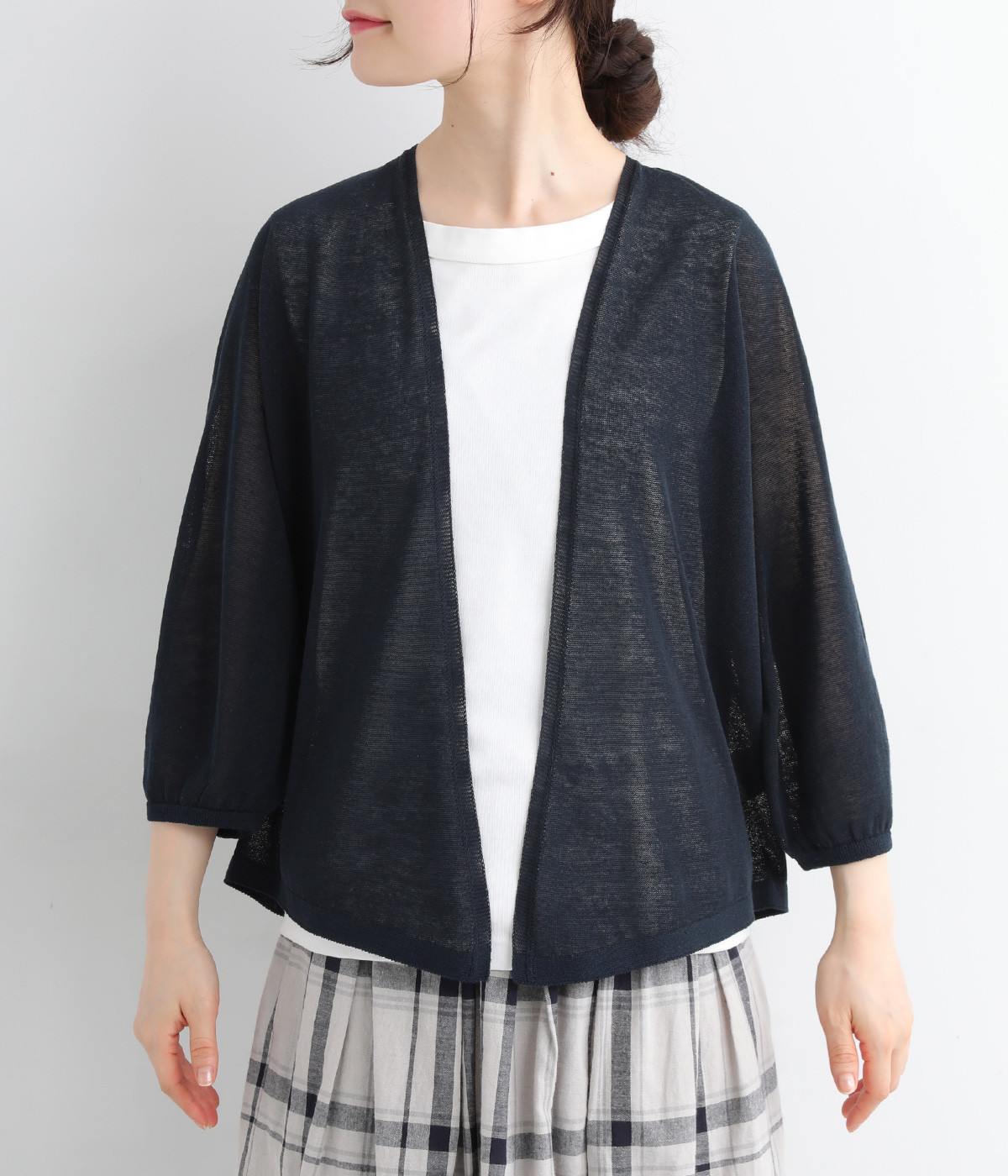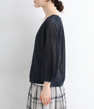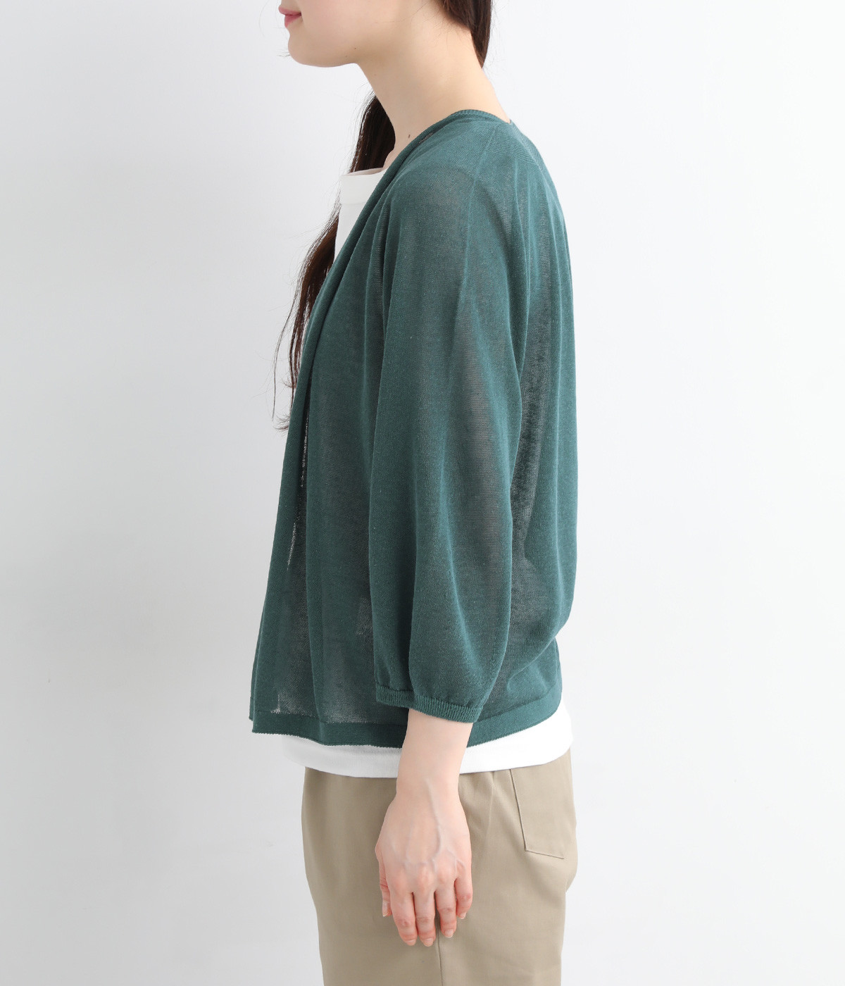 コットン×ポリエステル×リネンの組み合わせで、上品な透け感をもたらすニット素材に。不均一な生地表情がおしゃれをアシスト。いつもの着こなしに軽く羽織れるので、活躍シーンも多くなりそうです。