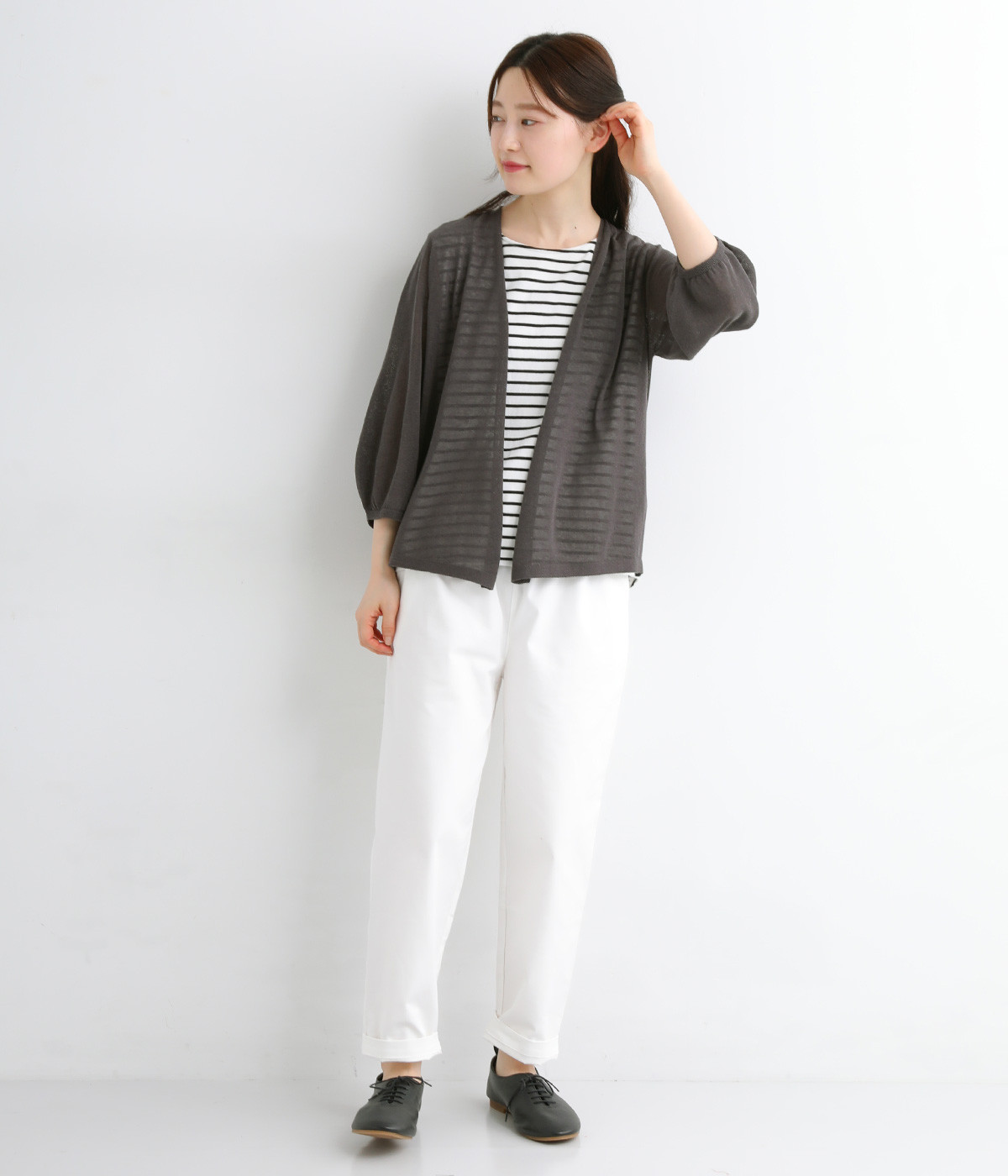ラフに羽織ってこなれ感を演出するトッパータイプになっています。ふっくらとした丸みのある可愛らしい袖がポイント高め。重ね着してもコーディネートが重たくならないのが優秀です。バッグに入れて持ち運ぶのもイージー。