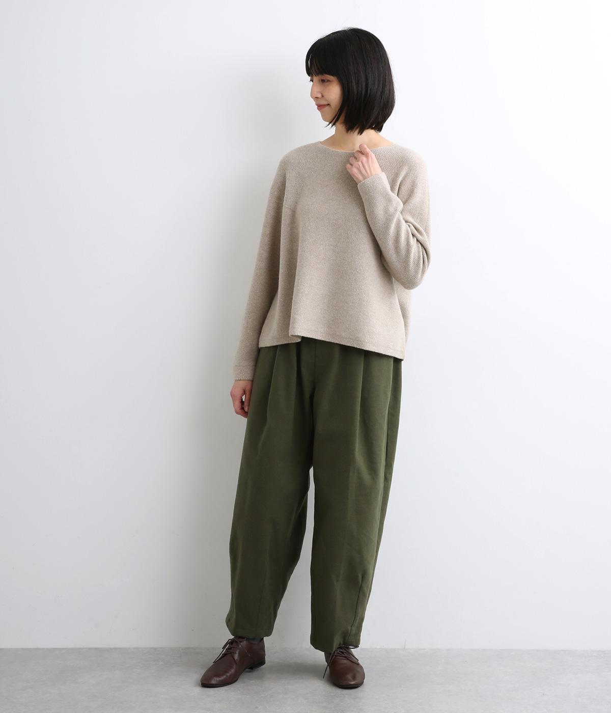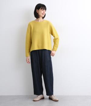 シンプルなプルオーバーで、幅広い着こなしが楽しめます。前後差のある裾のラインがさりげないこなれ感を添え、首元はすっきり仕上げて顔まわりを軽やかに見せてくれます。デイリーに活躍するアイテムです。