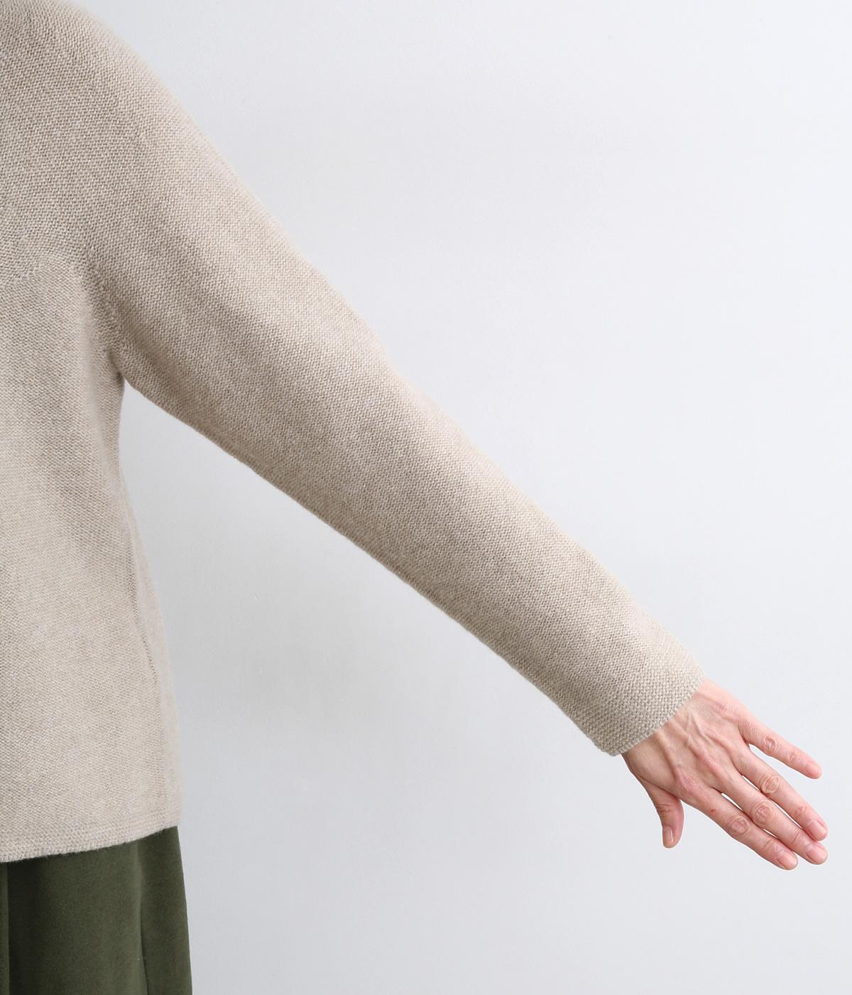 立体的に編み上げて縫い代がなく抜群の着心地を叶えるホールガーメント。やわらかく繊細な毛質のウールがやさしい着心地で、ふんわりと体を包み込みます。