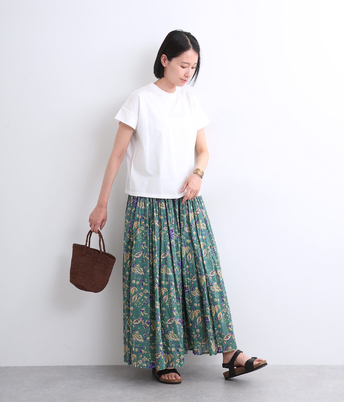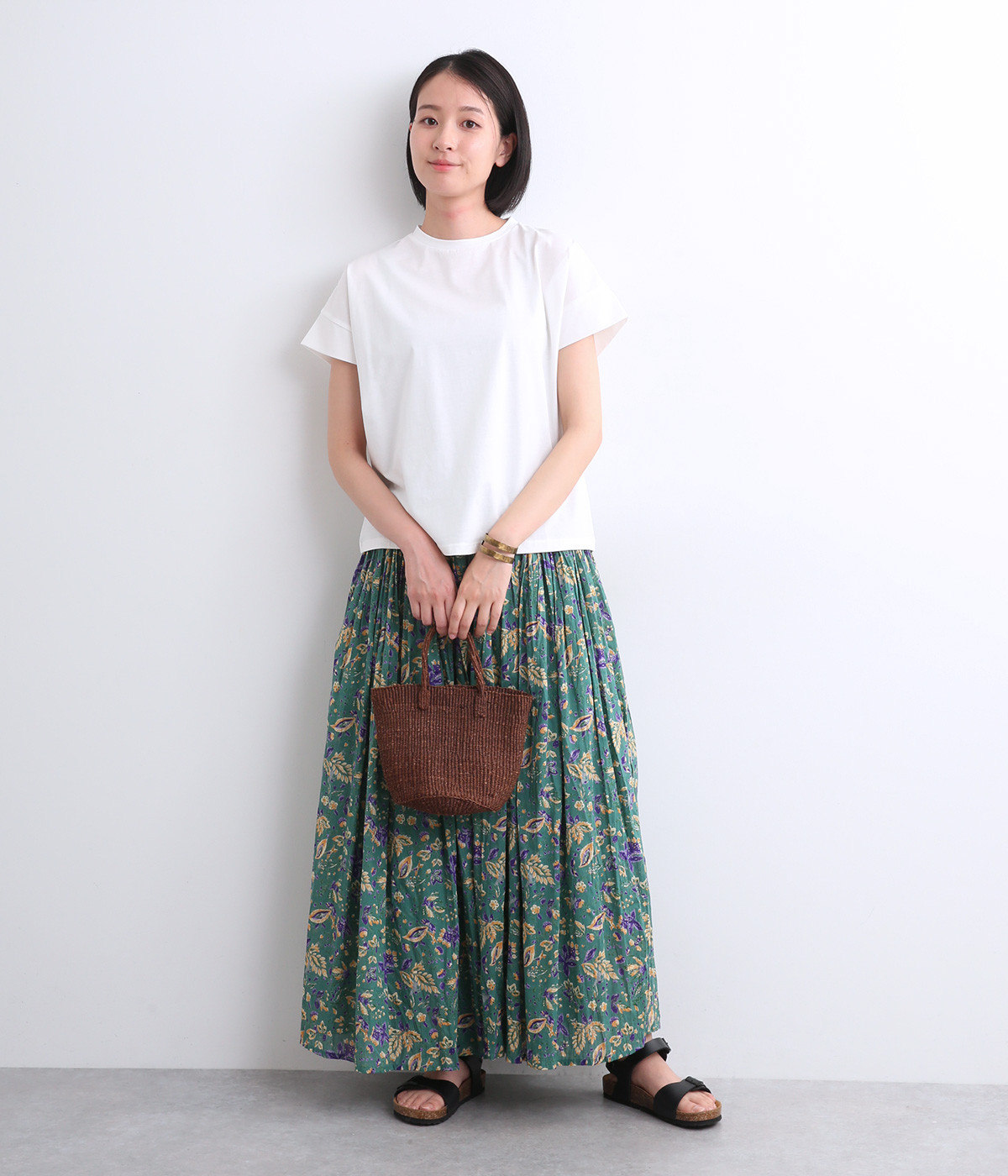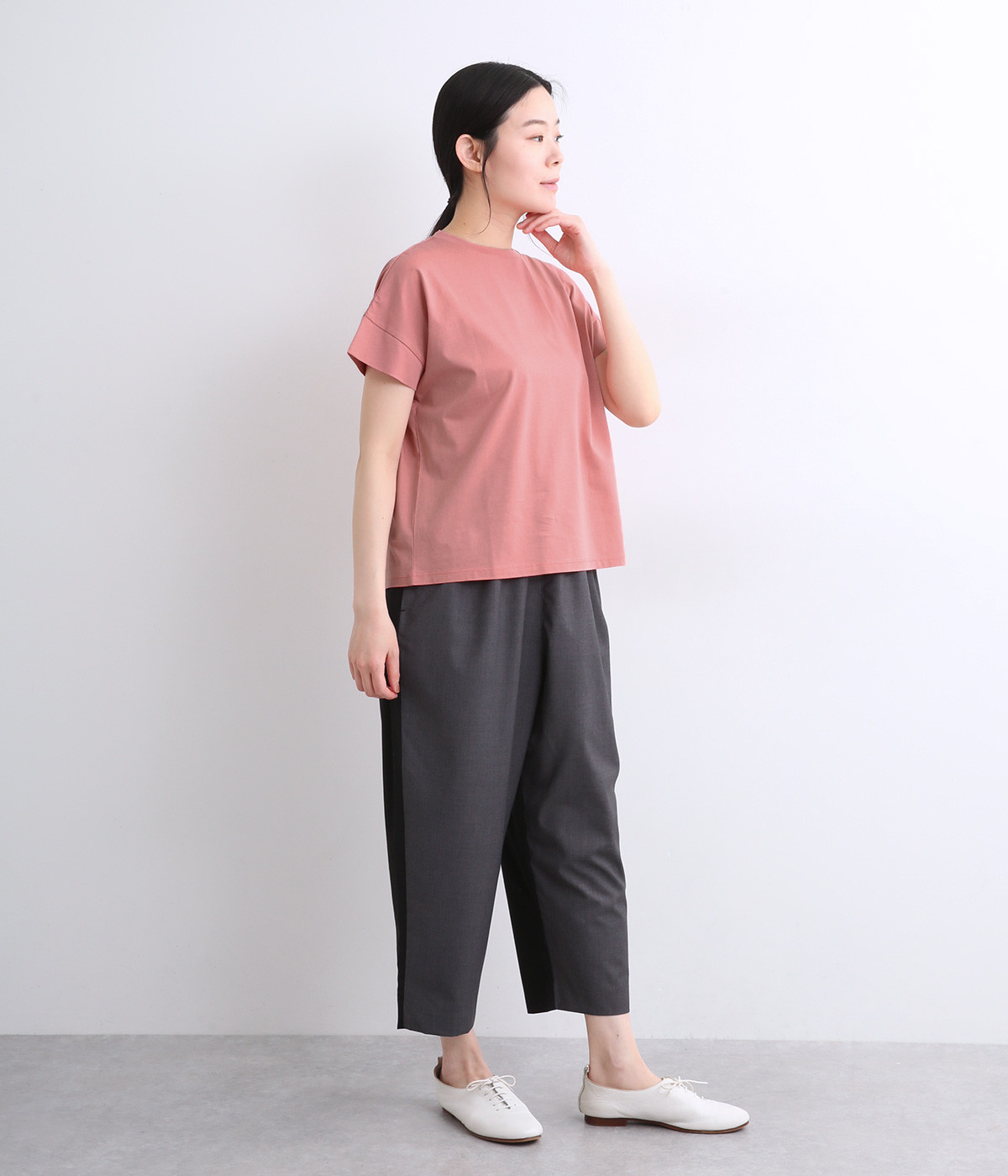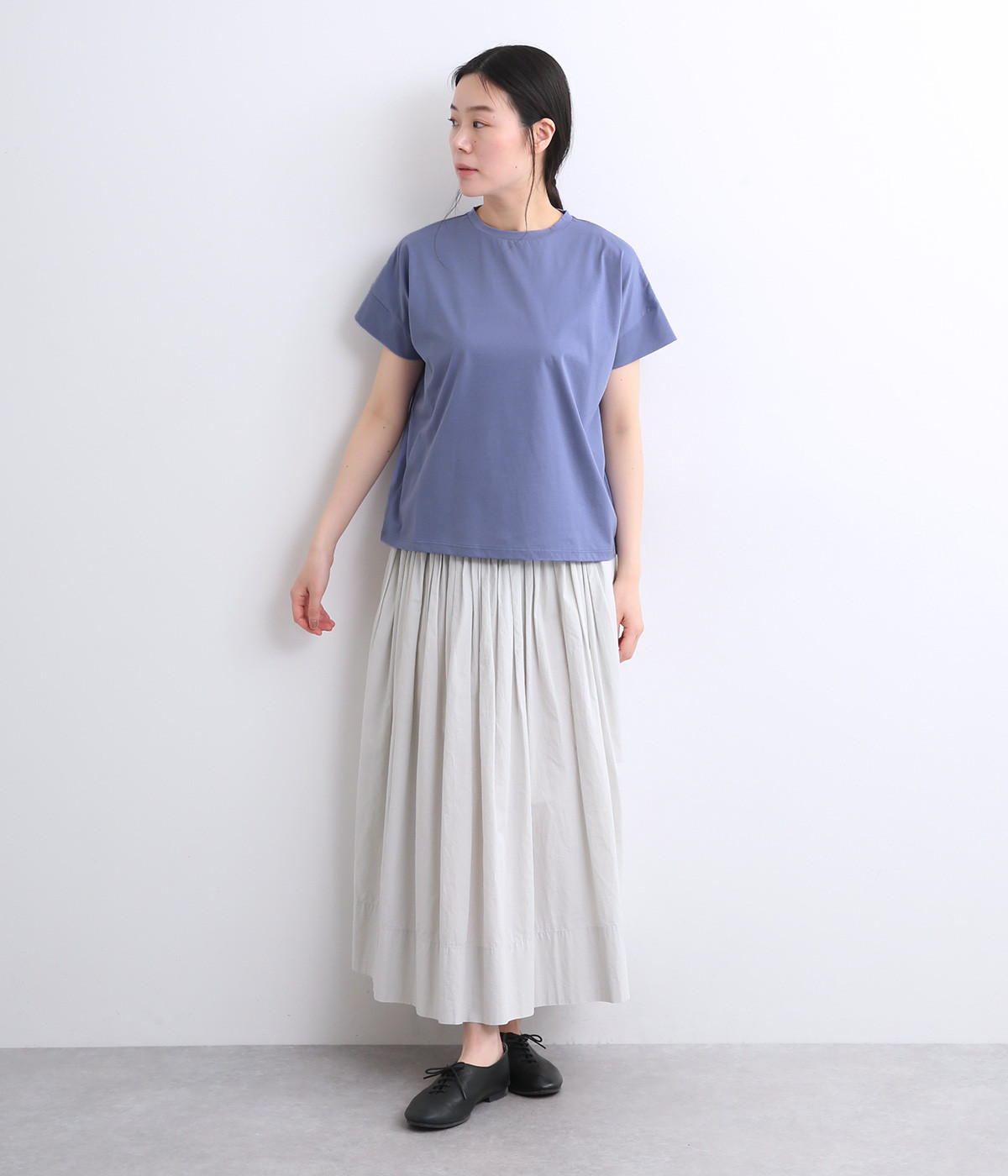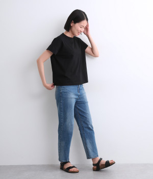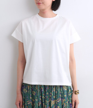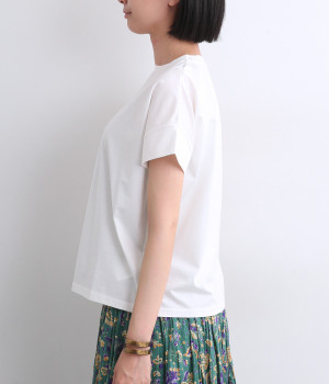 シンプルなデザインでスタイリングしやすい万能なフレンチスリーブのTシャツです。なめらかさのある素材感で、いつものTシャツスタイルもより品よく大人顔に魅せてくれます。着まわし力も高く色違いでそろえたくなる一枚です。