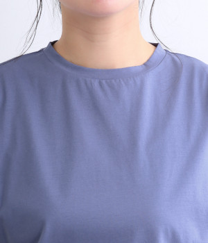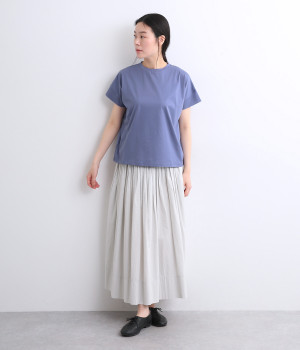 ほどよく光沢のあるコットンハイゲージ素材を使用しています。伸びが良くさらっと軽やかな着心地で、肌に触れると清涼感があり汗ばむ季節でも快適です。