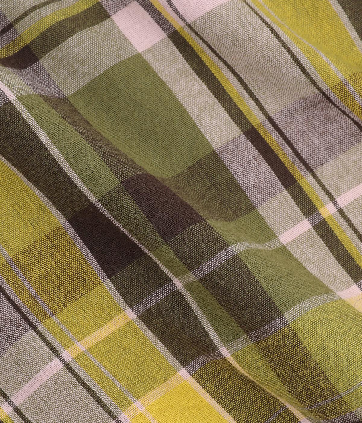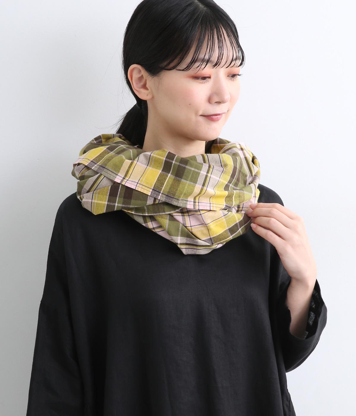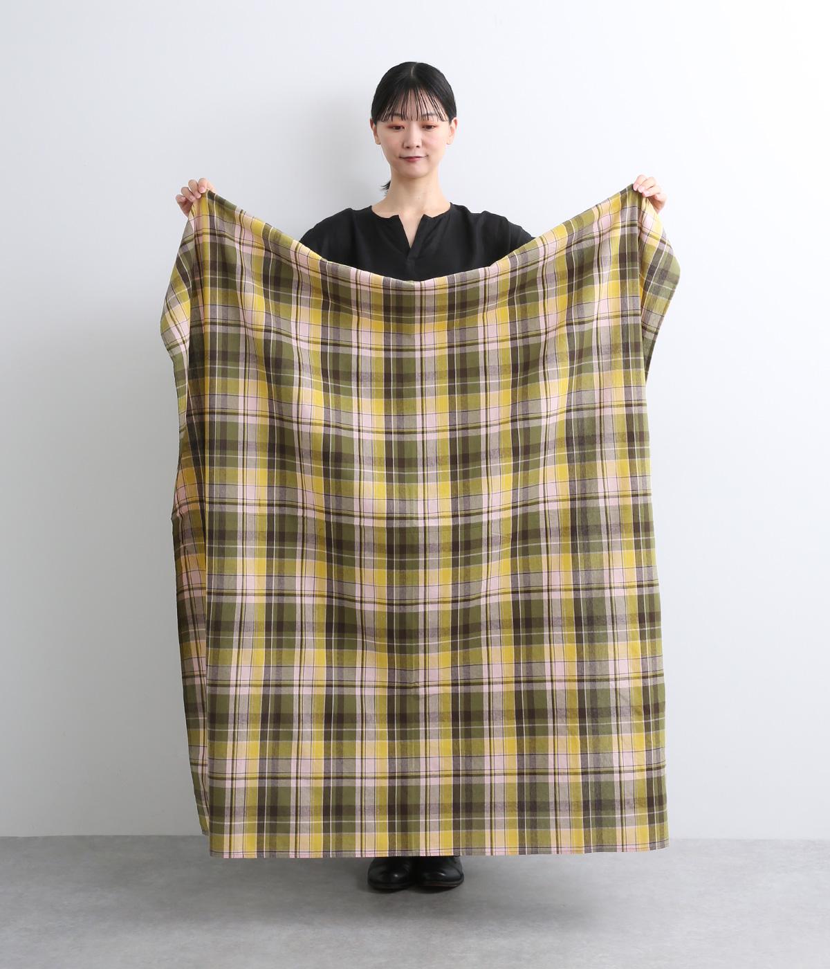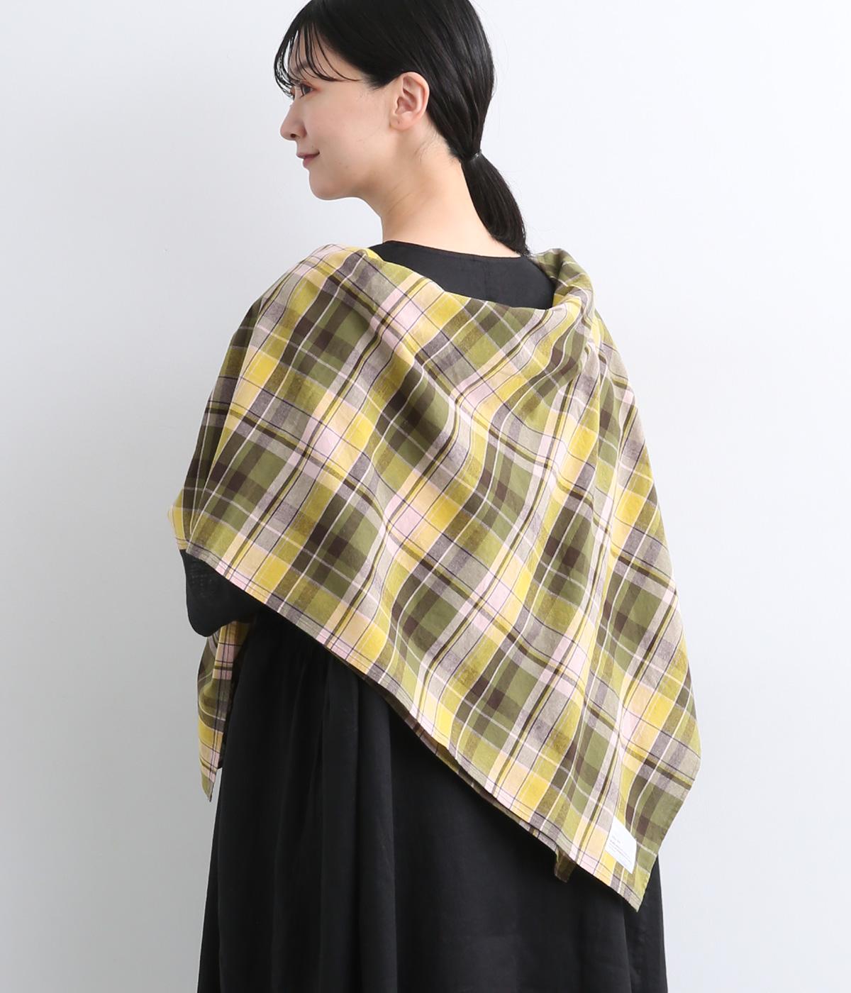 首元に巻いたり肩にかけて羽織ったり、さまざまな用途でたのしめる、正方形の大判ストール。着こなしのポイントになる鮮やかなチェック柄とナチュラルな風合いがバランスよく、デイリースタイルに取り入れやすい仕上がりです。