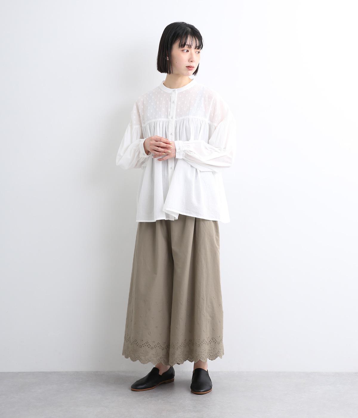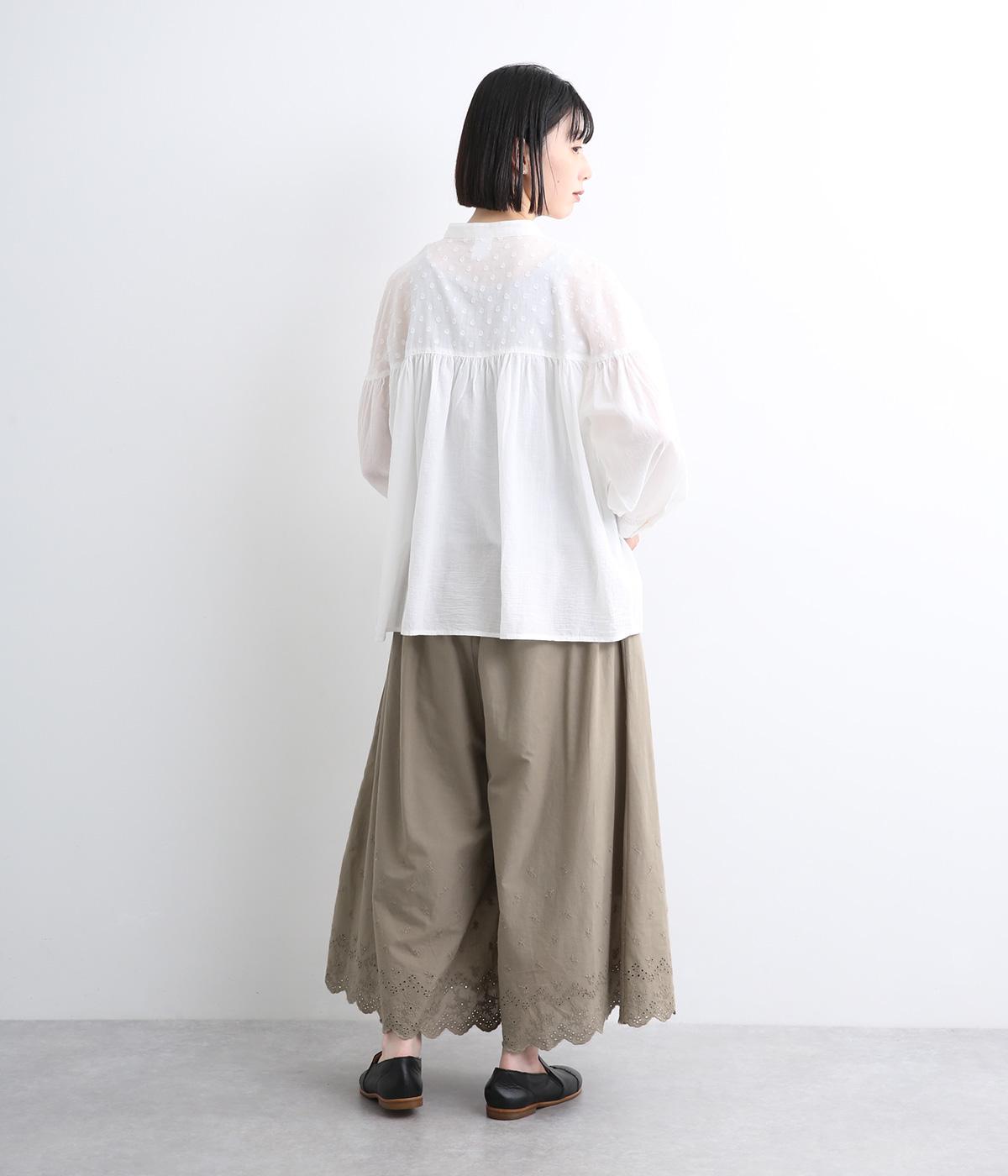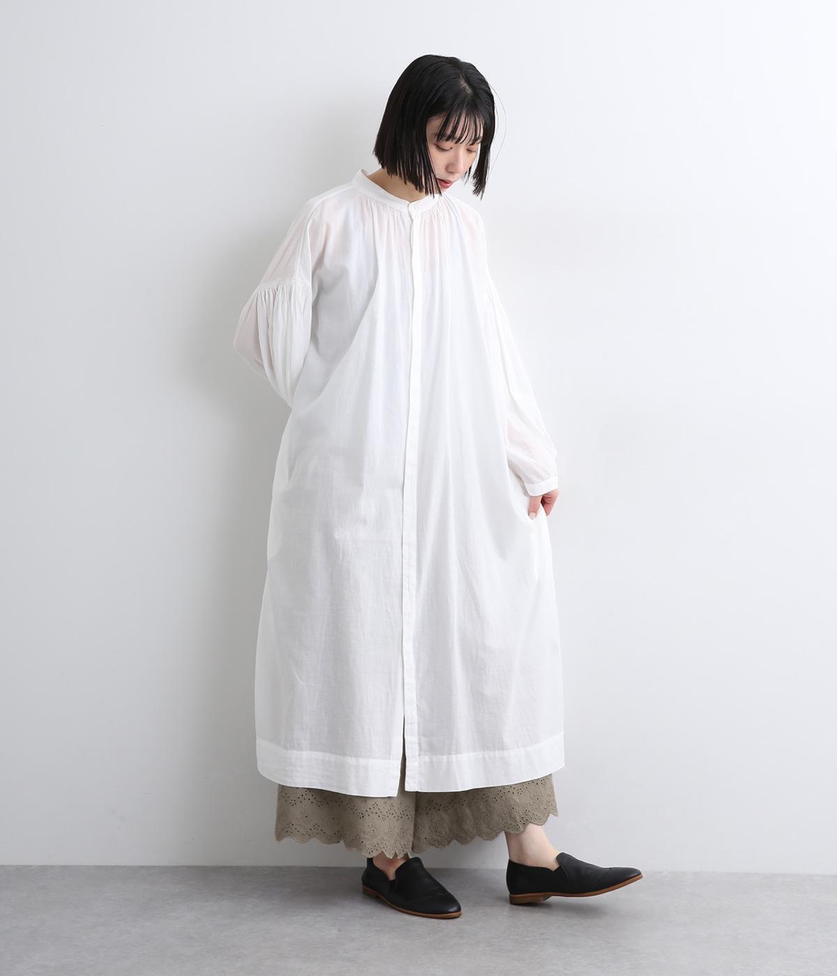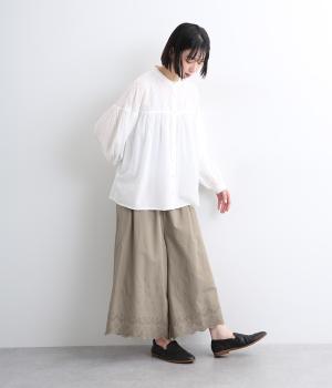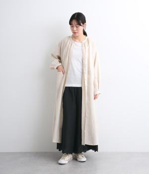 さらりと軽やかなタッチが心地よい、コットン生地を使用しています。透け感をおさえるため裏地をあてつつも、全体的に軽やかな仕上がりであたたかな季節も快適です。