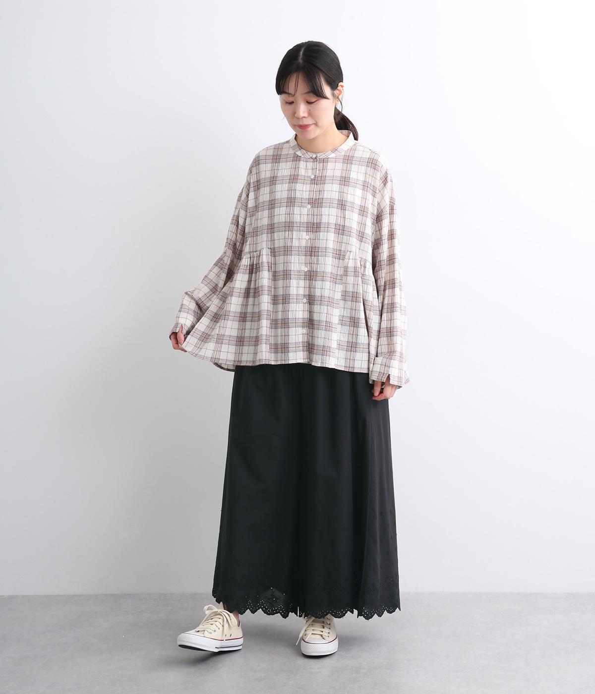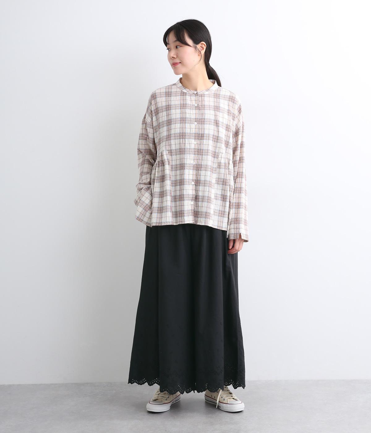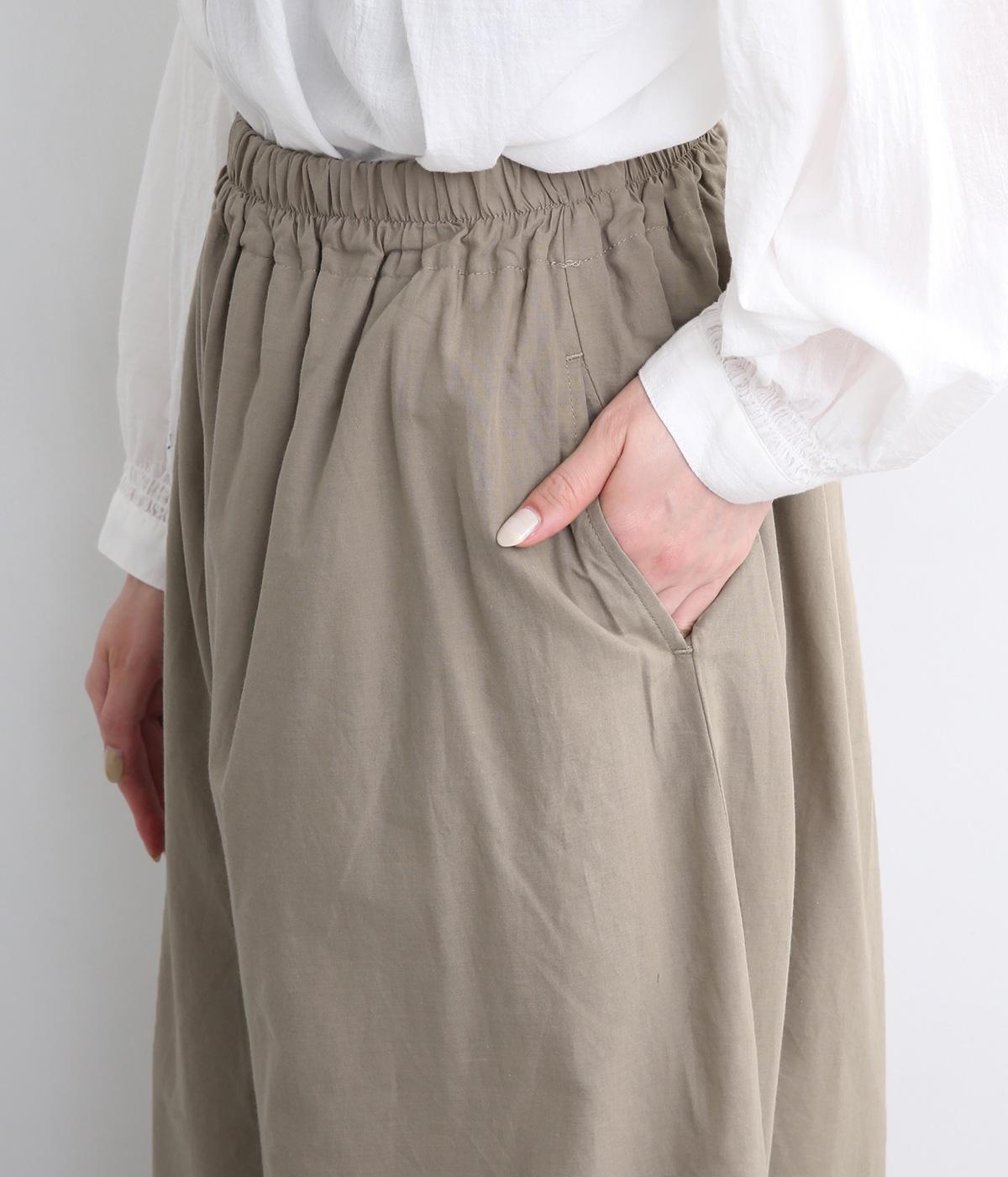 さらりと軽やかなタッチが心地よい、コットン生地を使用しています。透け感をおさえるため裏地をあてつつも、全体的に軽やかな仕上がりであたたかな季節も快適です。