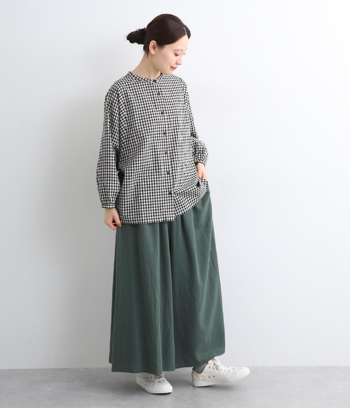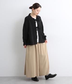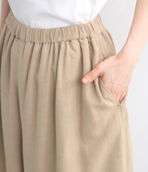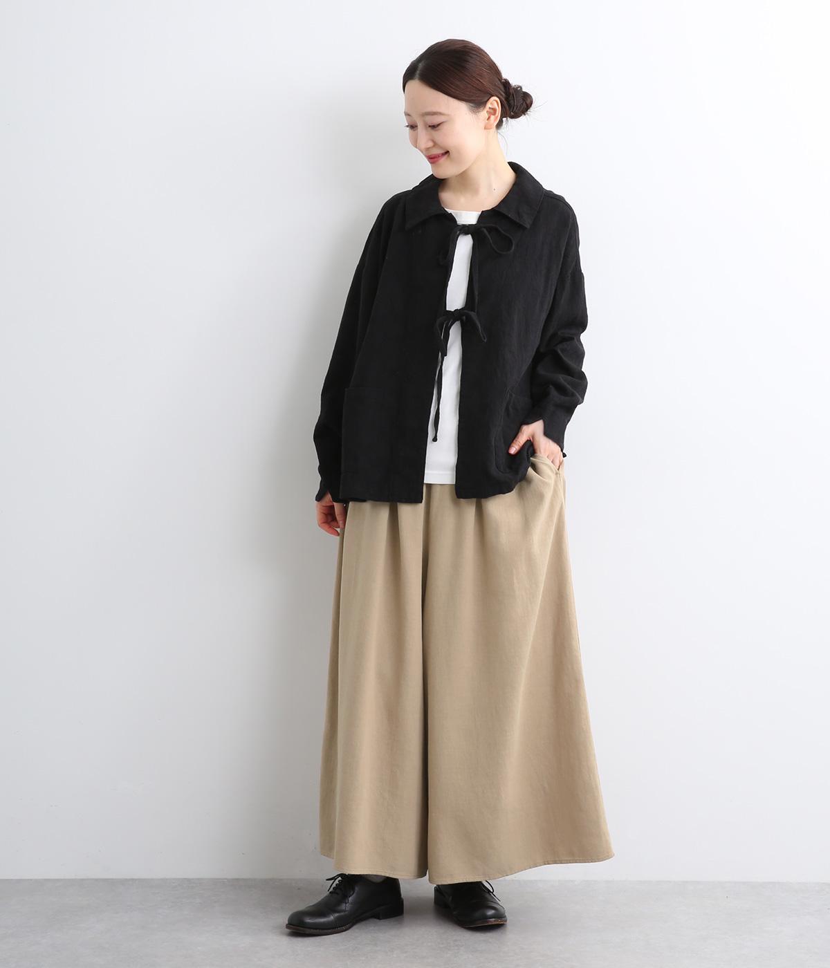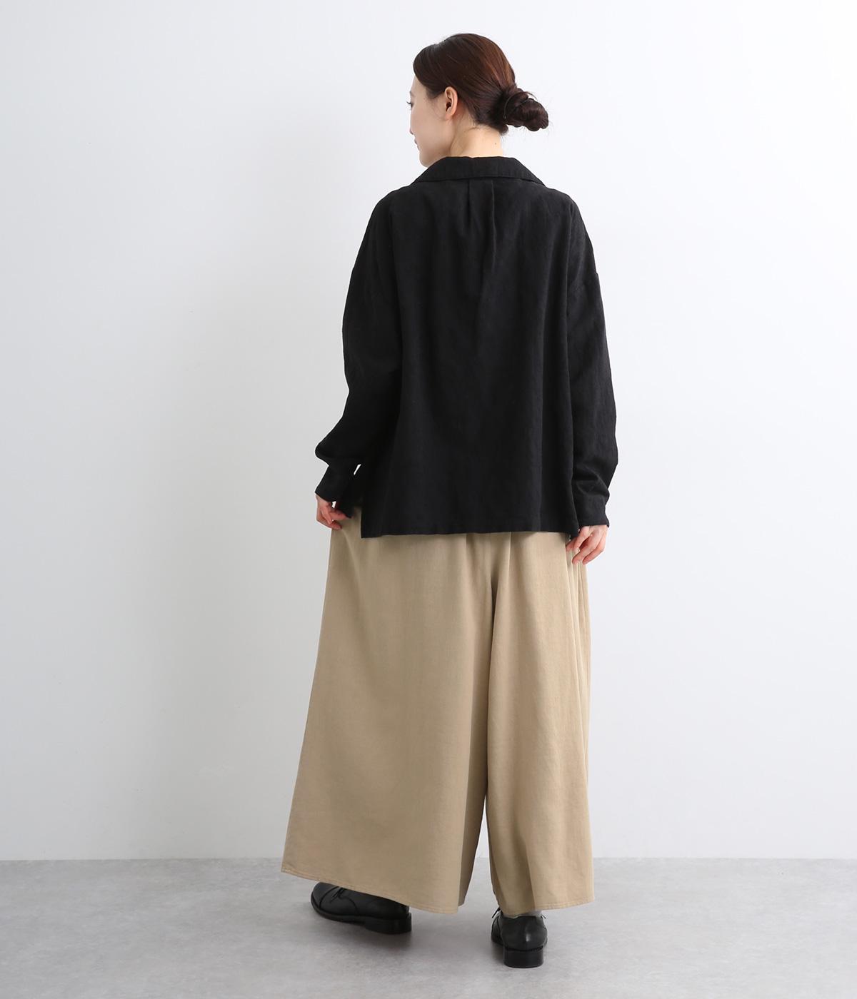 柔らかくあたたかみのあるラミーリネンコットン生地です。ほどよいハリとコシがあり、しなやかな落ち感が魅力。ナチュラルな風合いでロングシーズン着まわせる素材感です。