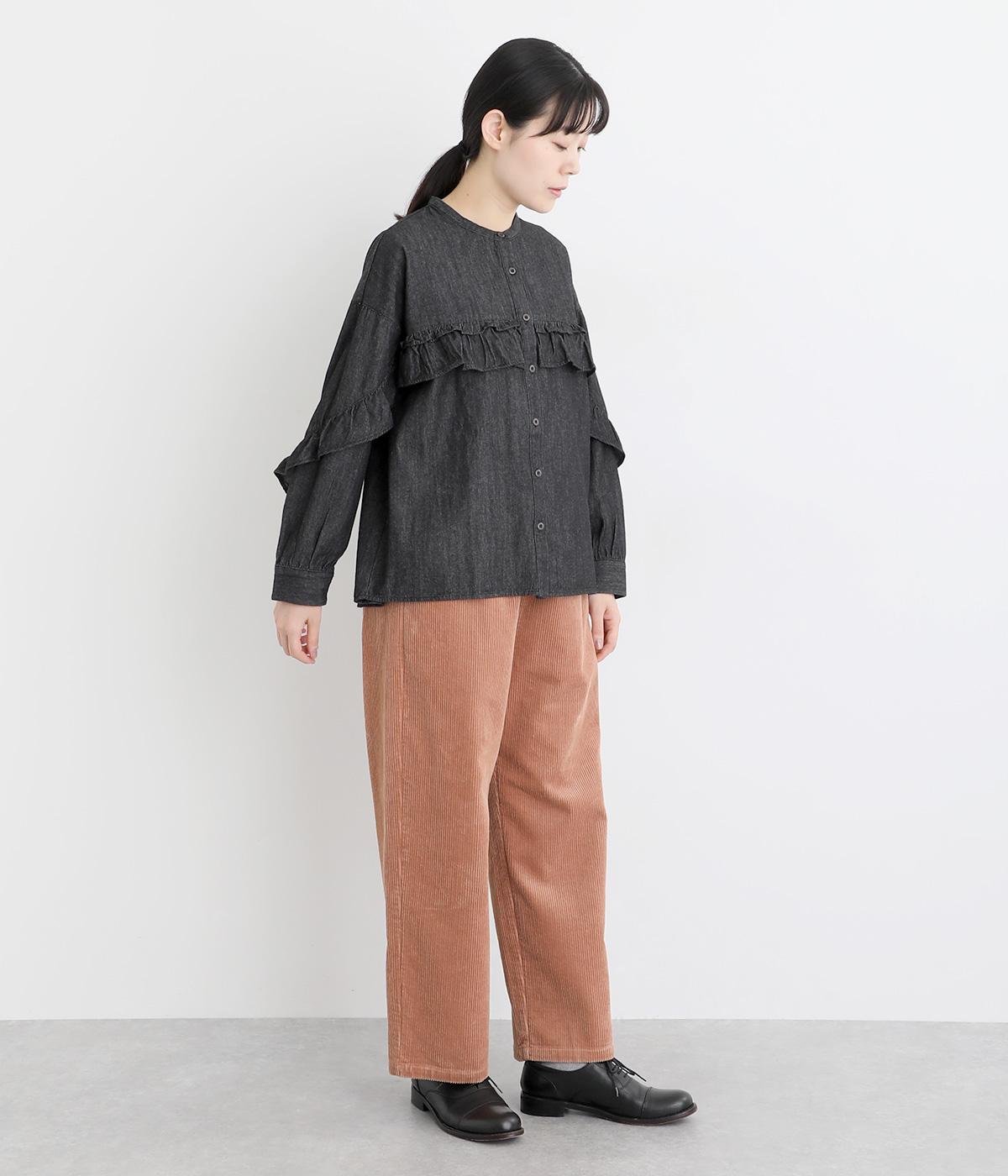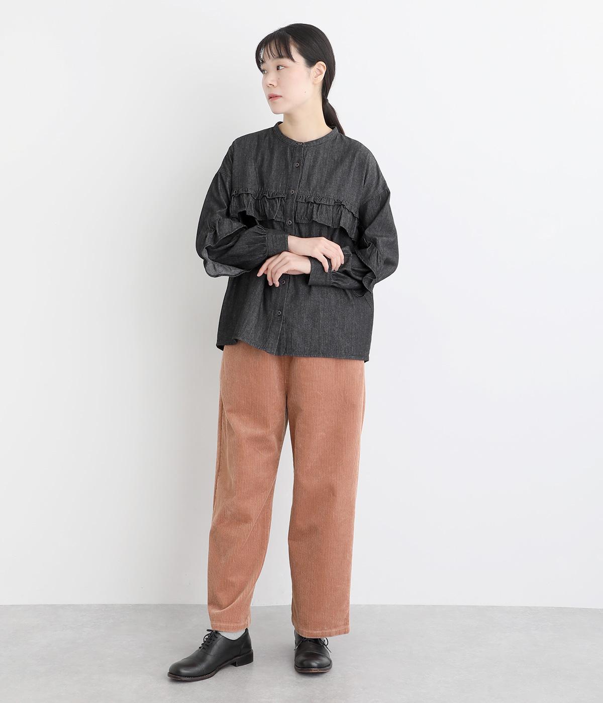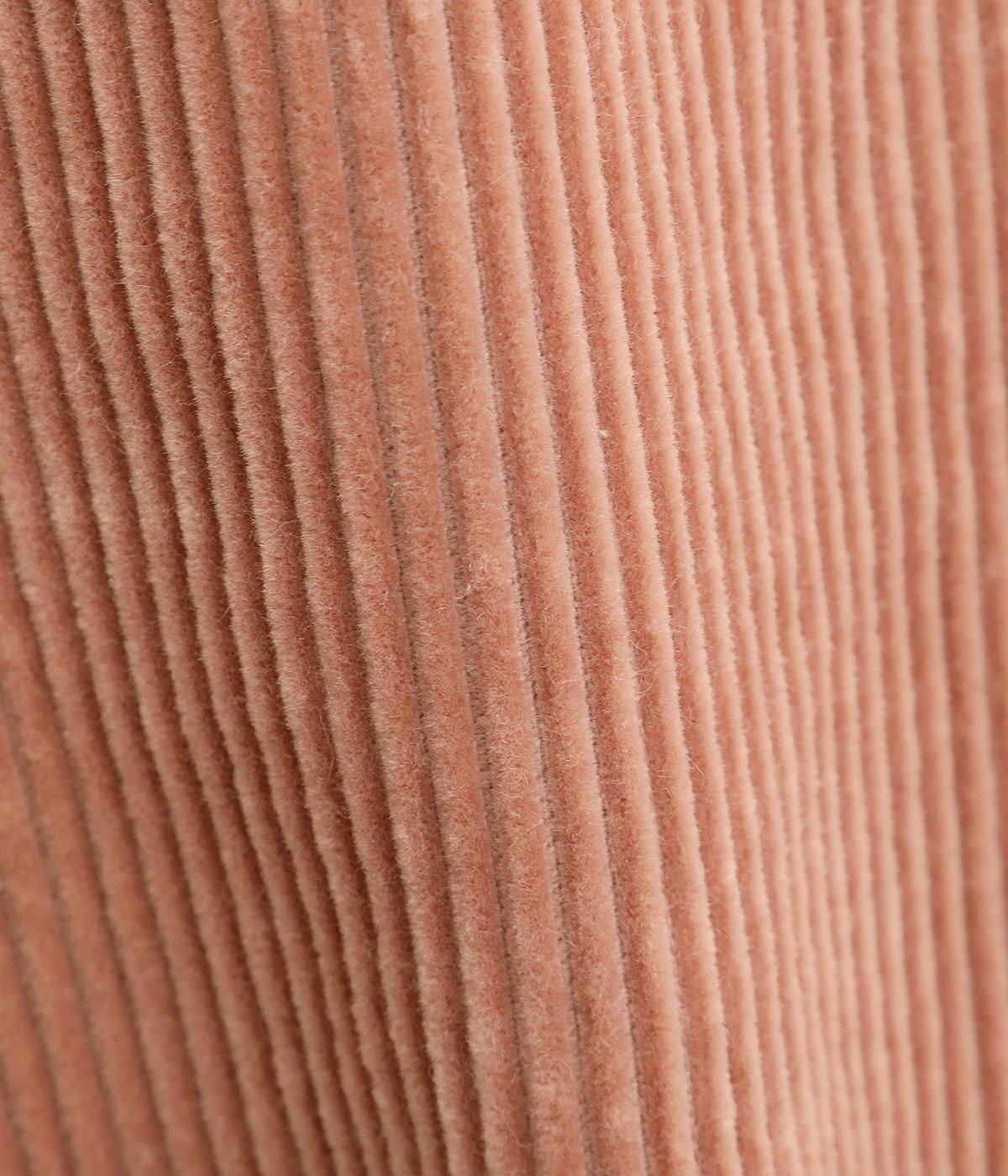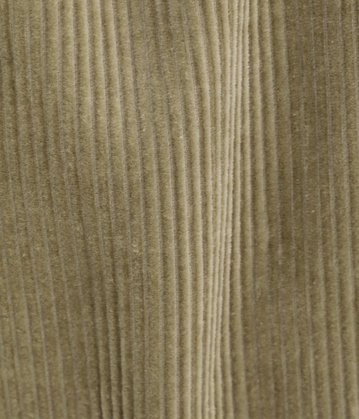 太畝が特徴的でカジュアルテイストなコットンのコーデュロイ生地をセレクトしました。しっかりとした中厚手生地でシルエットをきれいに描きます。ほのかな光沢とあたたかみのある表情で季節感のある素材です。