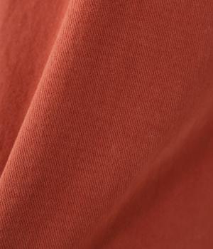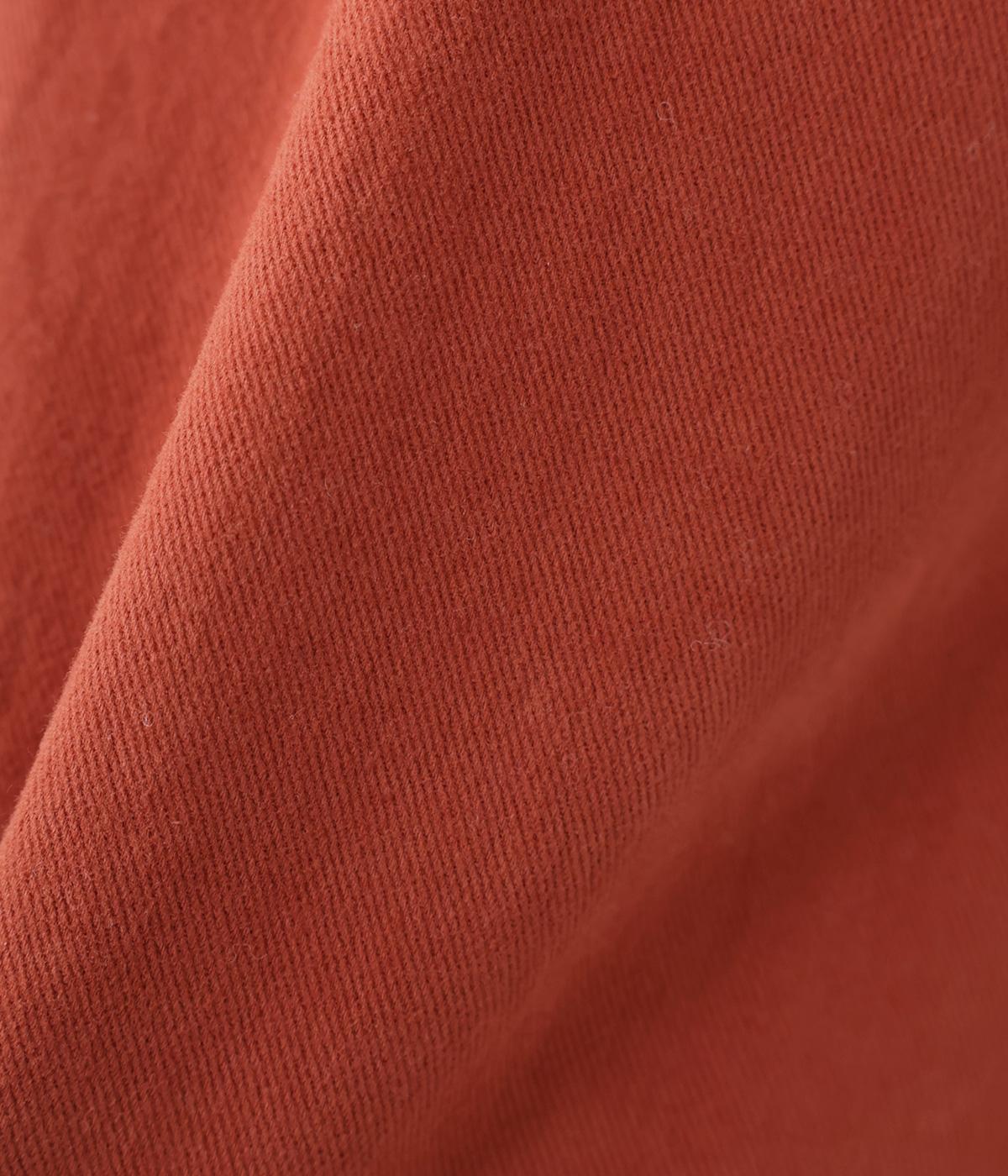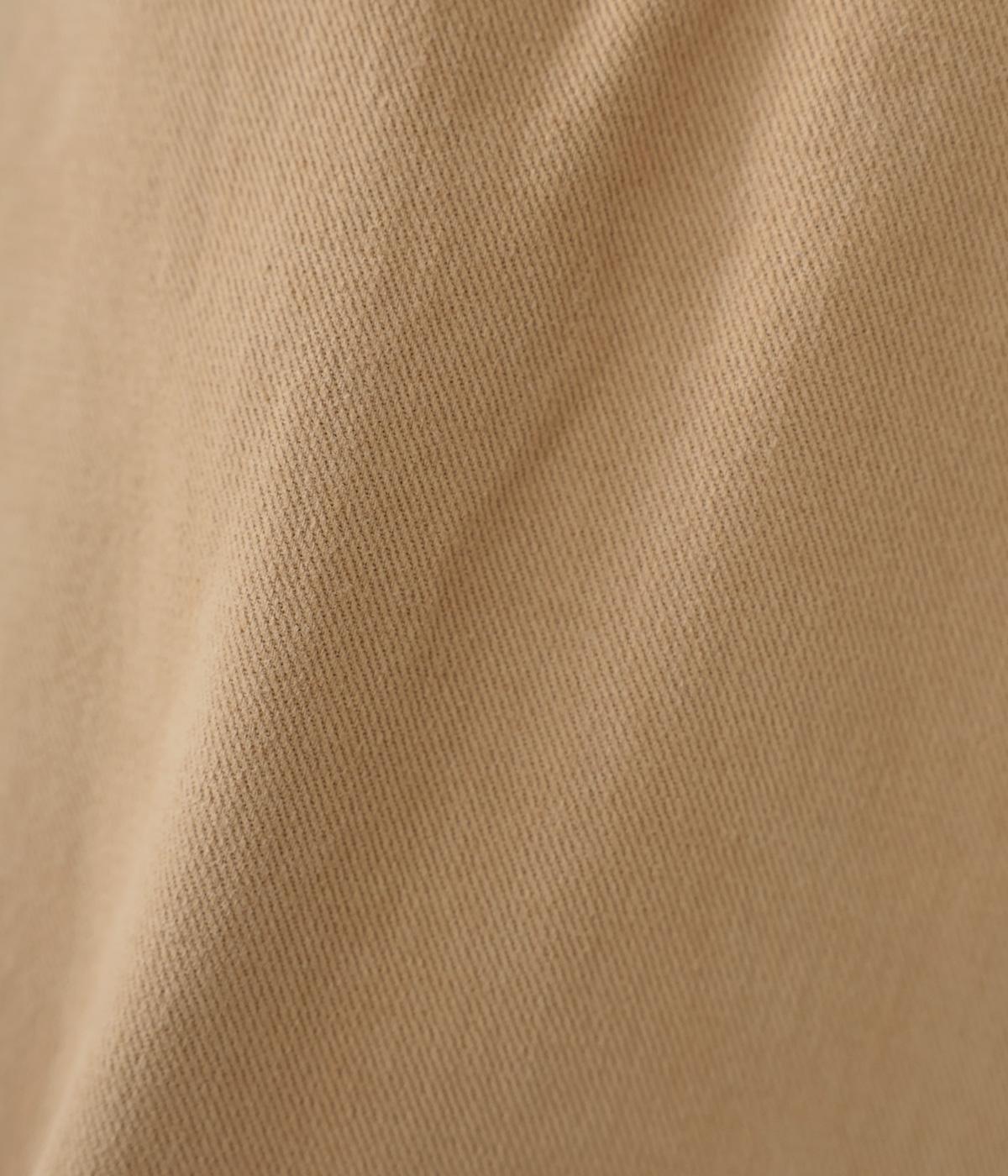 丈夫でシワも気になりにくくしっかりとしたコットンツイル生地です。光沢をおさえたセミマットな質感に、ほんのり起毛したあたたかみのある印象に仕上がっています。