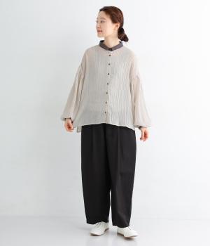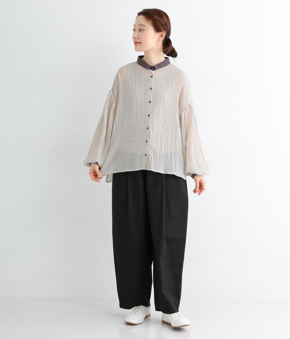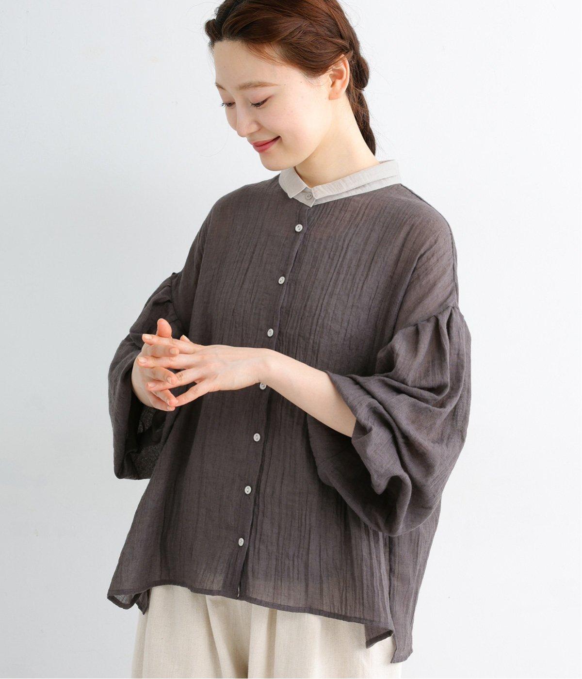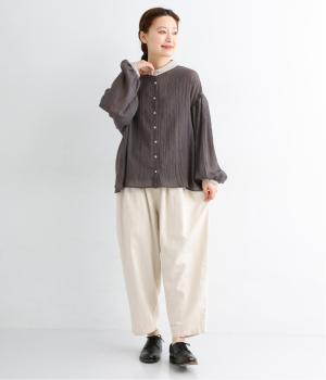 適度なシアー感のある、やわらかくて軽いガーゼ素材を採用。肌に触れるたびに癒されるような心地よい生地です。自然なシワのある表情が、コーディネートに奥行きをプラスします。