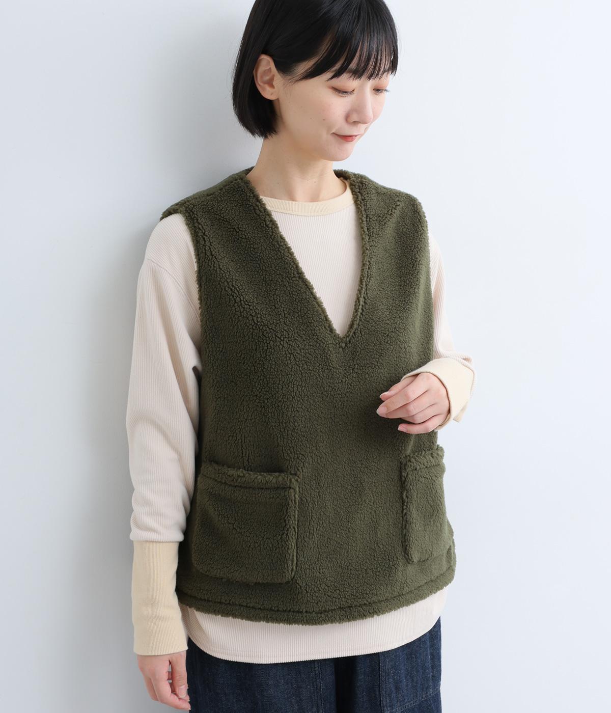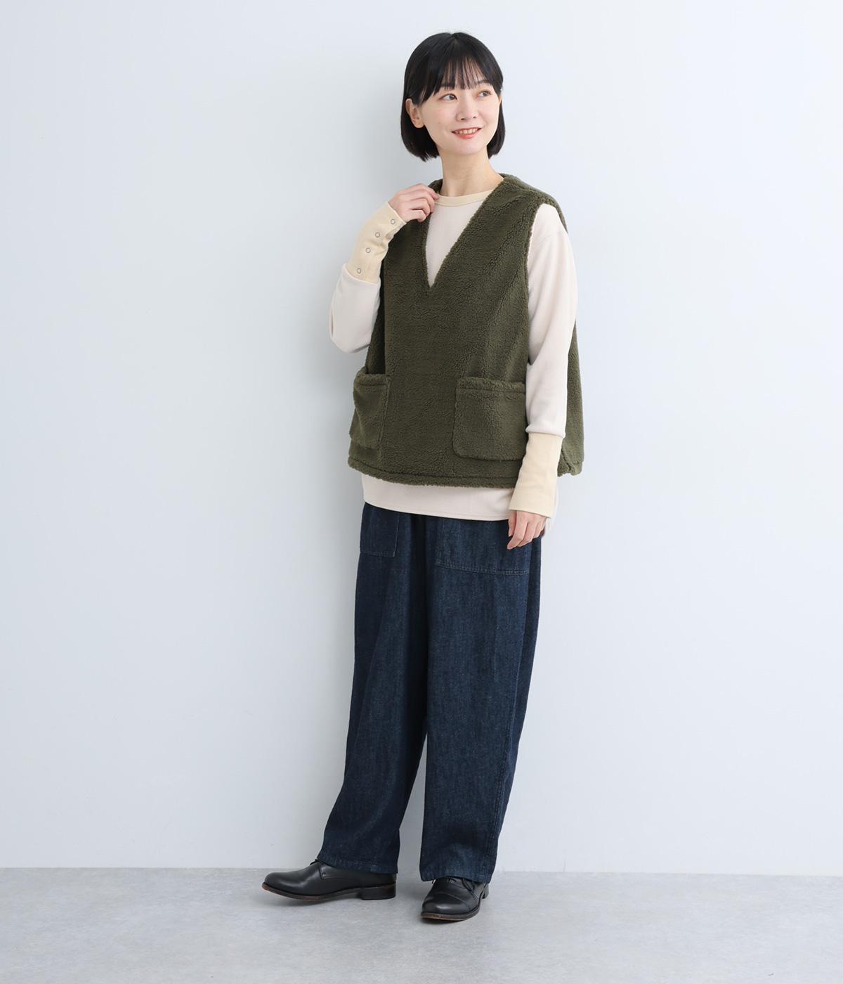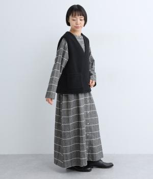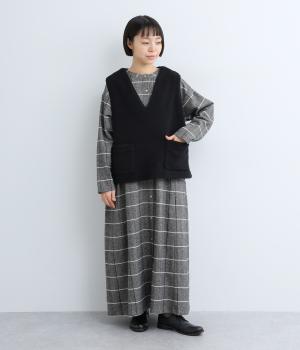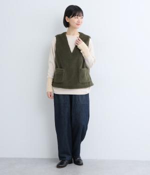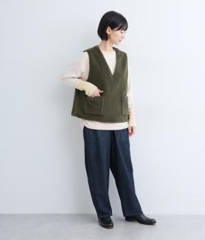 シンプルなシルエットと、大きく開いたVネックが大人っぽい雰囲気。袖幅はゆとりのあるサイズで、大きめのインナーでも重ね着しやすいデザインです。毎日の暮らしに一枚あると嬉しい、着まわしに便利なアイテムです。