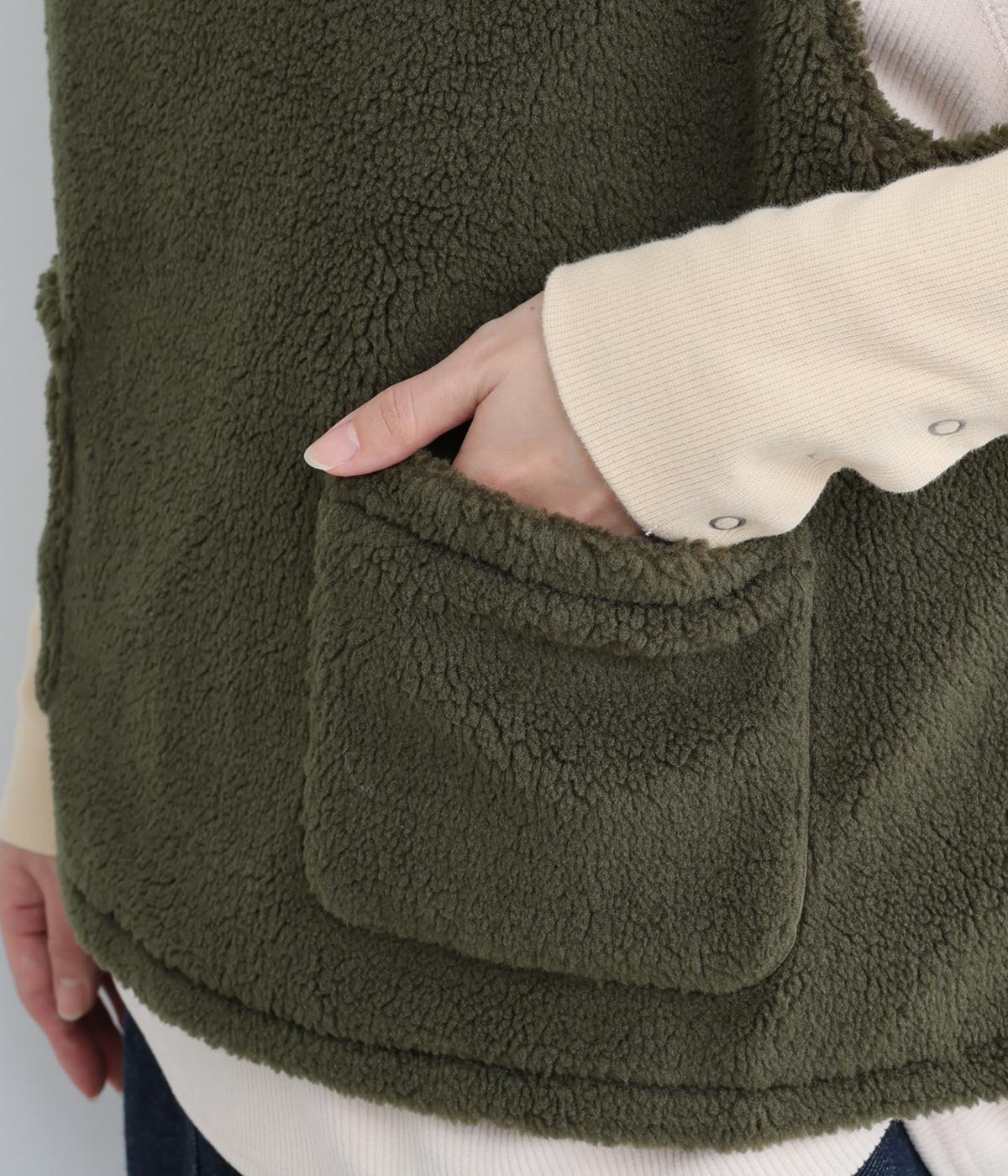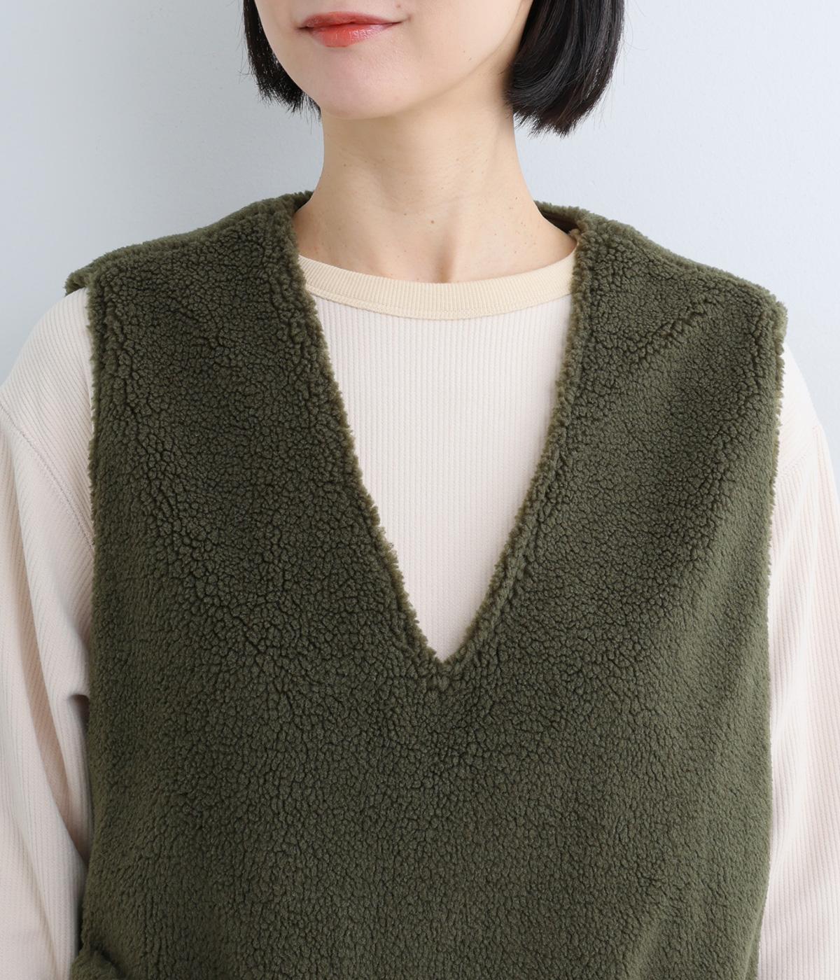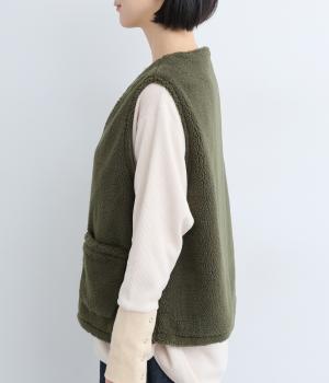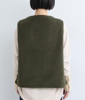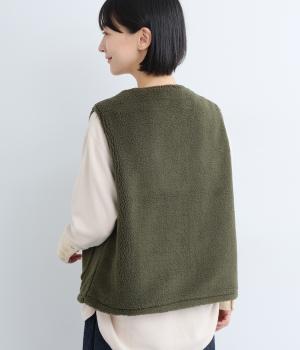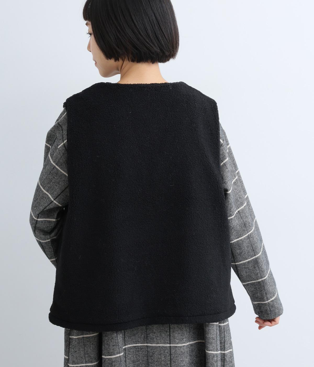 ボアのふんわり感とおだやかな光沢が◎。裏地はコットン素材で肌あたりもなめらか。シンプルで落ち着いた質感のボアでスイートにもキレイめカジュアルにも着こなせる万能な素材感です。