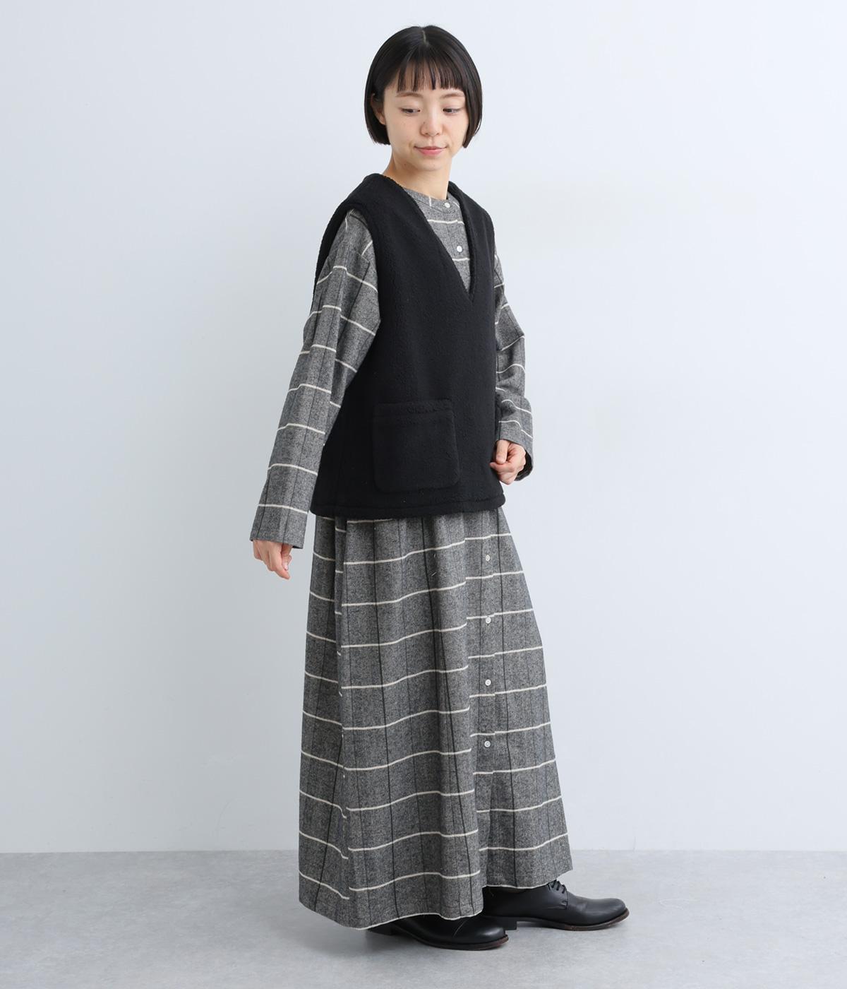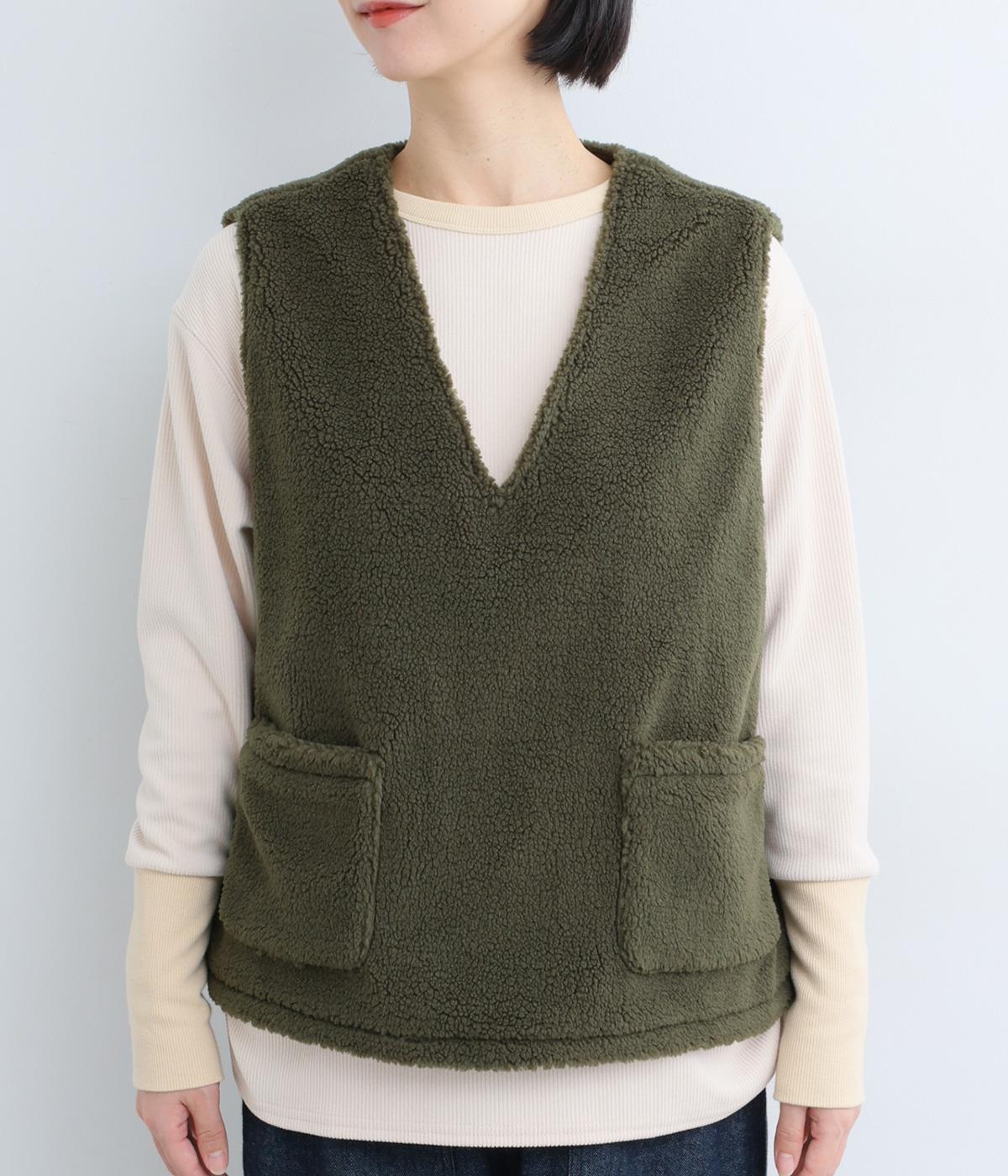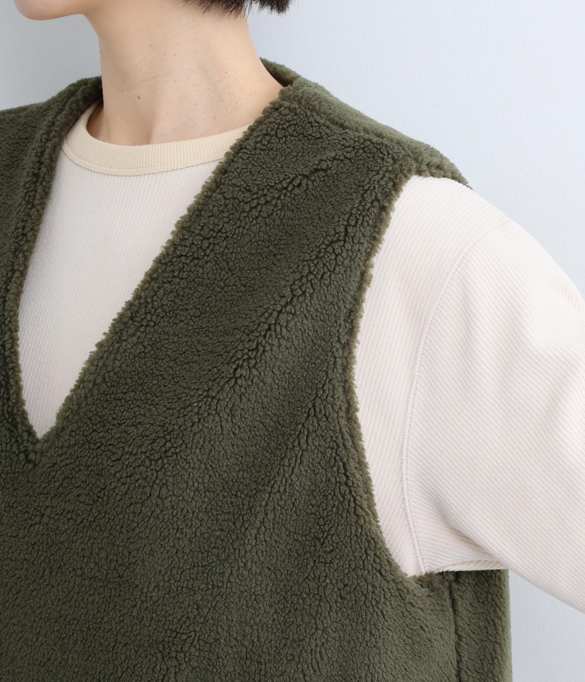 ボアのふんわり感とおだやかな光沢が◎。裏地はコットン素材で肌あたりもなめらか。シンプルで落ち着いた質感のボアでスイートにもキレイめカジュアルにも着こなせる万能な素材感です。