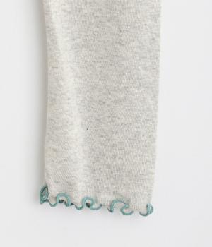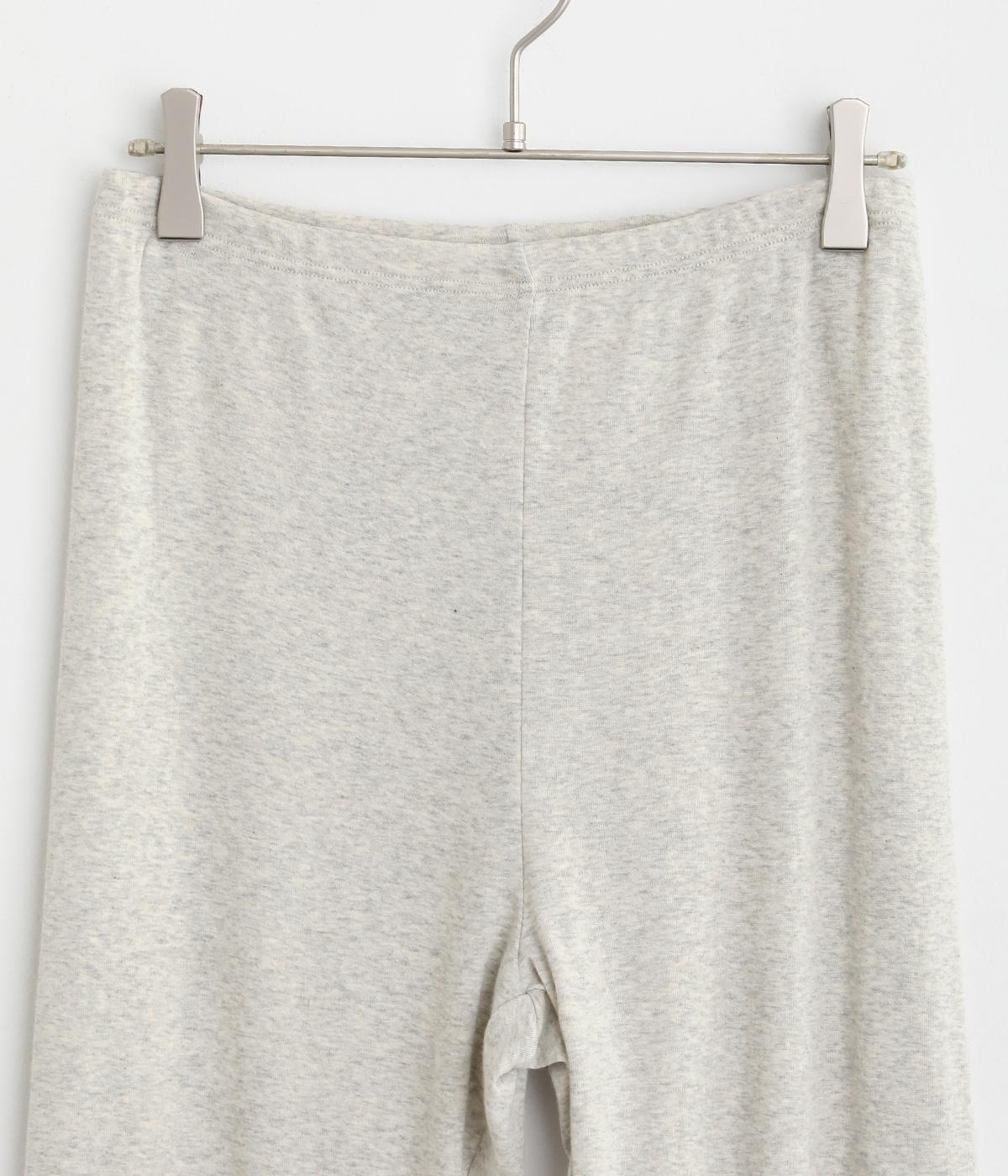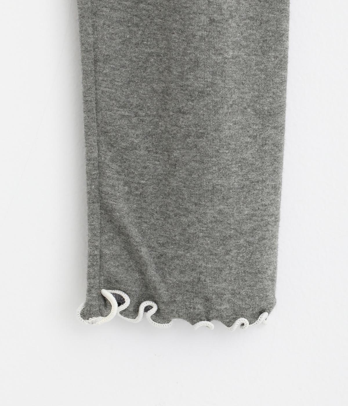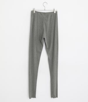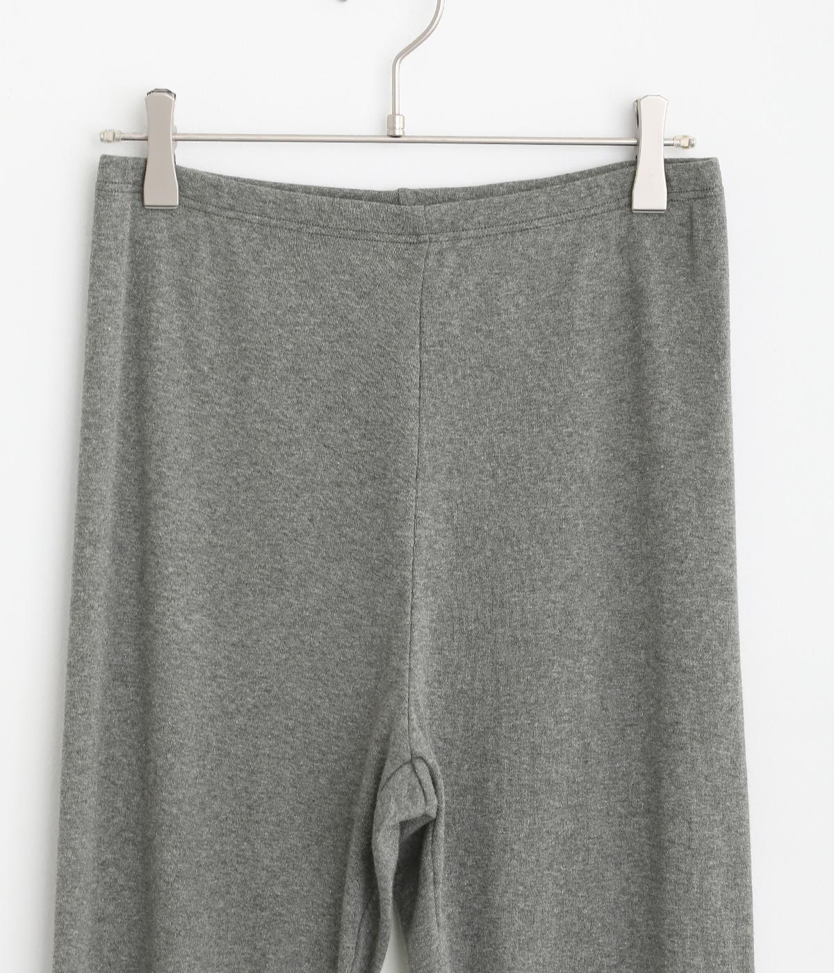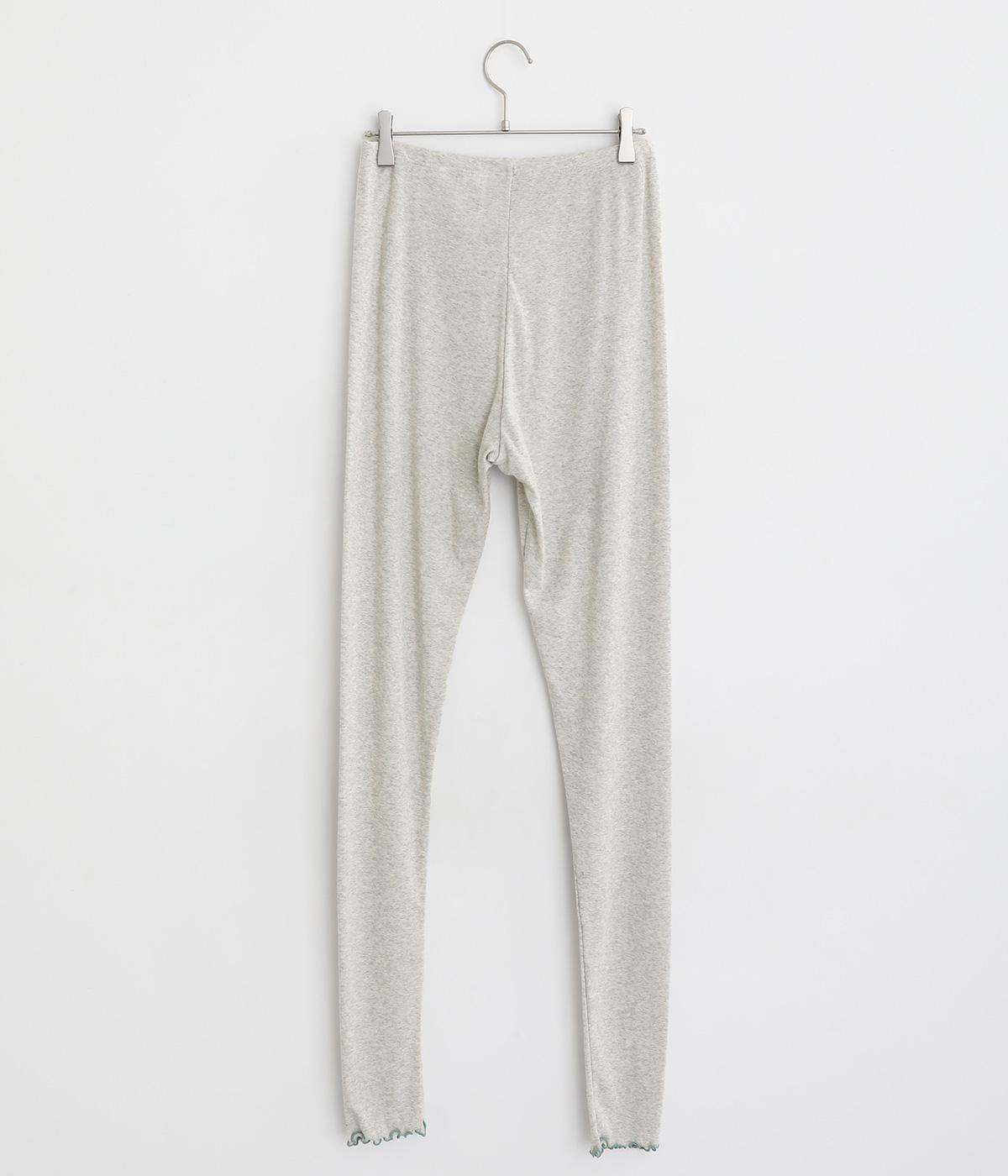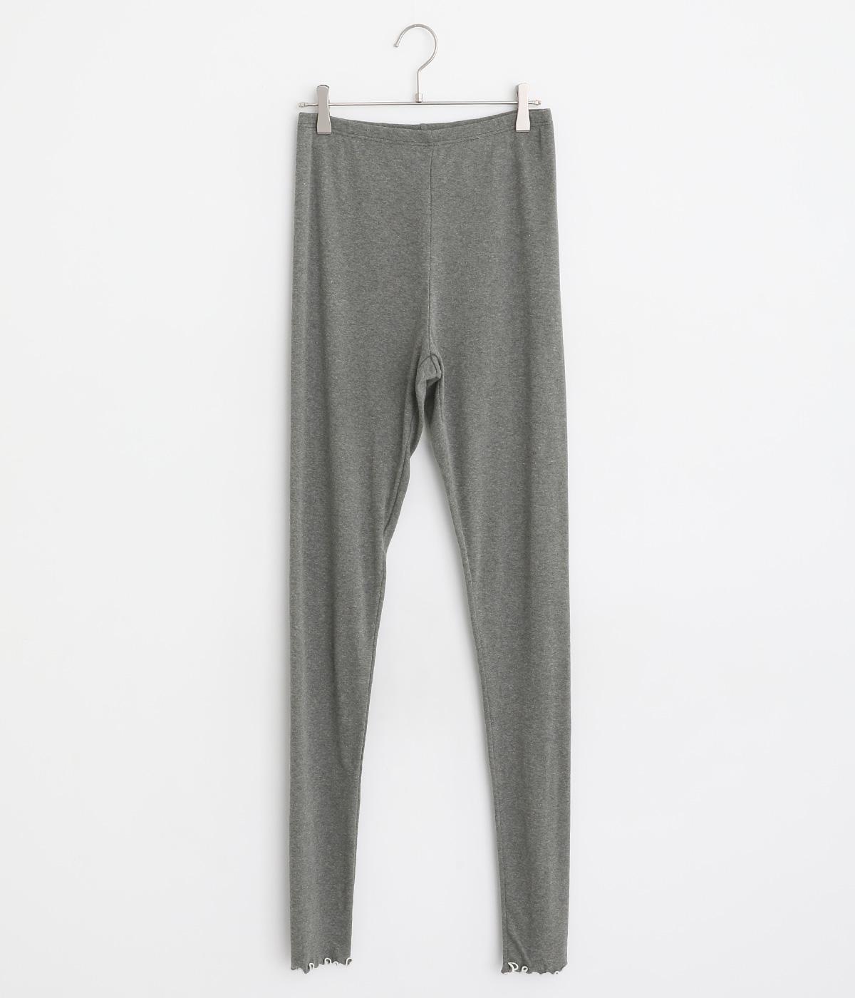 裾の配色メローがデザインポイントの日本製レギンスです。パンツの裾からすこし見える丈感にこだわり、レイヤードスタイルに重宝します。体にやさしくフィットするのでボトムに響きにくいのも◎。