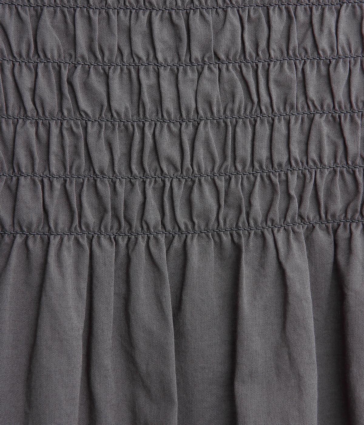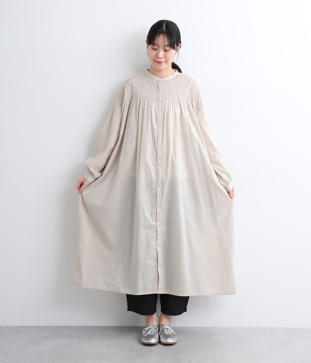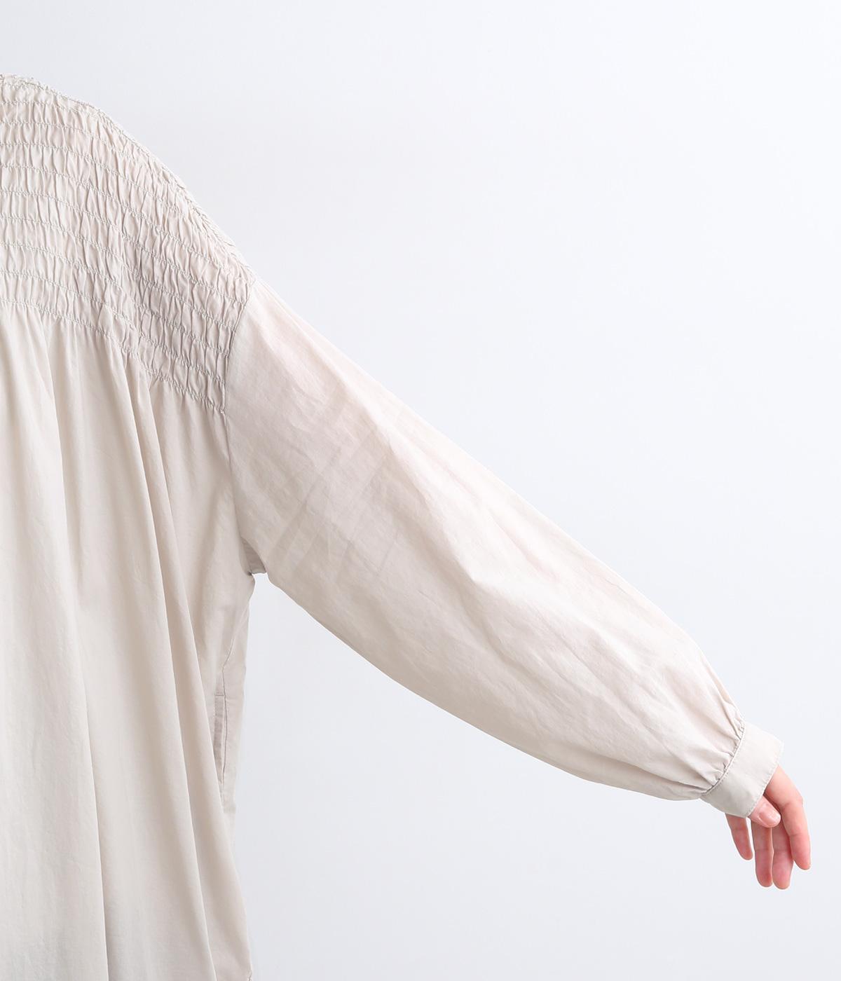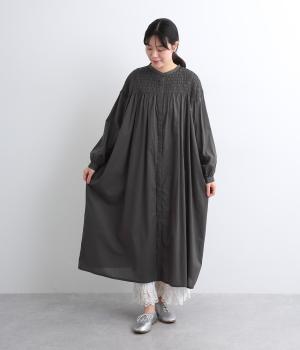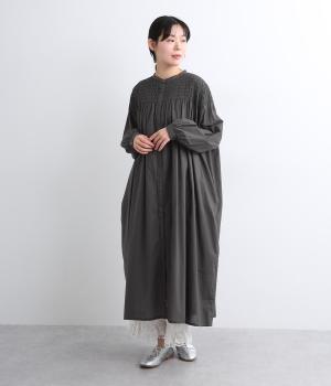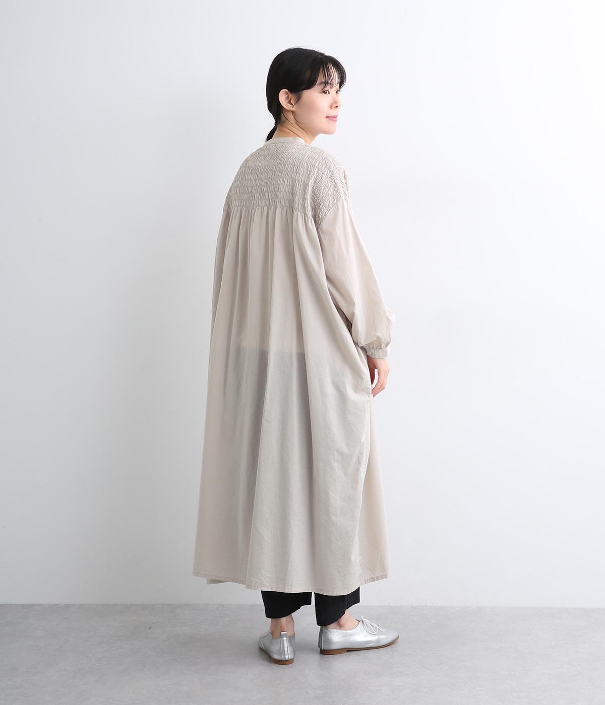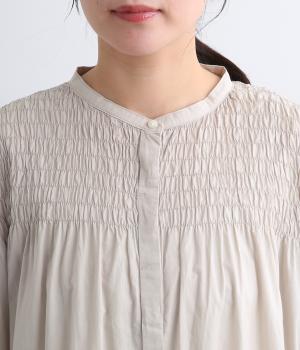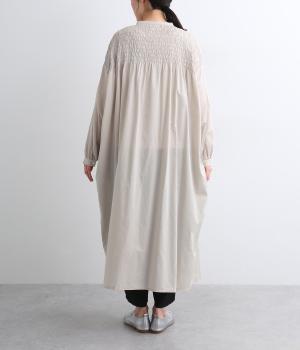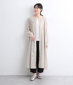 肩まわりにシャーリングをほどこし、ふんわりとしたシルエットに仕上げました。カフスでメリハリをつけた袖も◎。すっきりとした比翼仕立てで、軽やかさを活かした羽織りの着こなしもすてき。両サイドポケットつきでデイリー使いにも最適です。