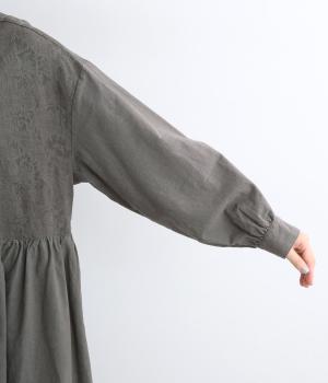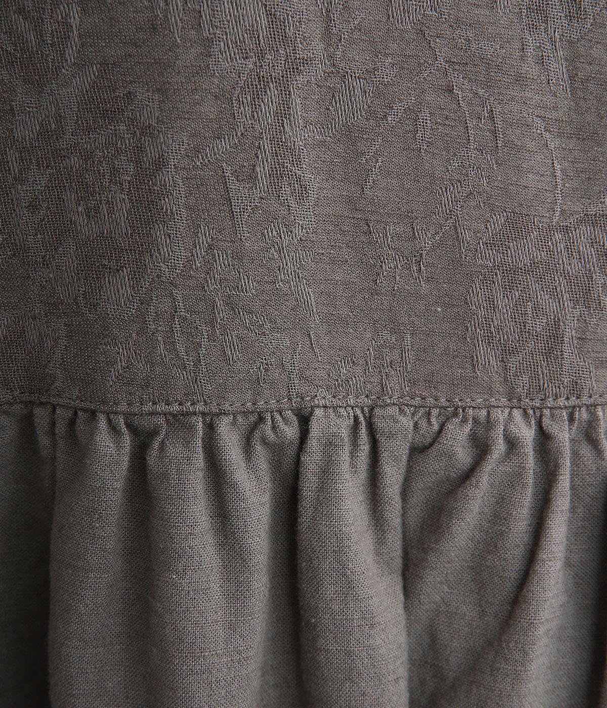 ほどよいハリのある花柄ジャカード生地です。自然な風合いでやわらかく肌になじみます。立体的な質感が上品な印象で、奥行きのある表情が魅力です。