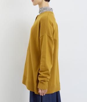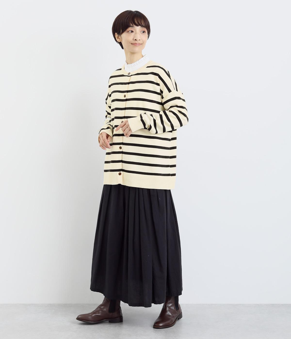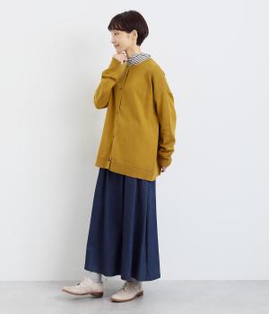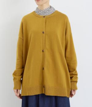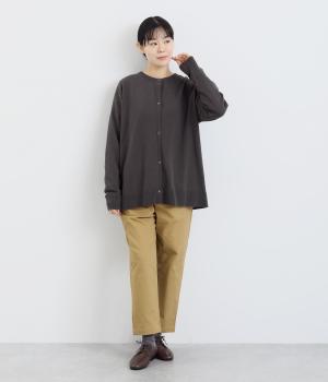 シンプルなシルエットと、ほどよいオーバーサイズのカーディガンが大人カジュアルを演出します。やさしい印象で着まわししやすく、さまざまなスタイルにも合わせやすい定番アイテムです。ドロップショルダーで動きやすさも抜群。